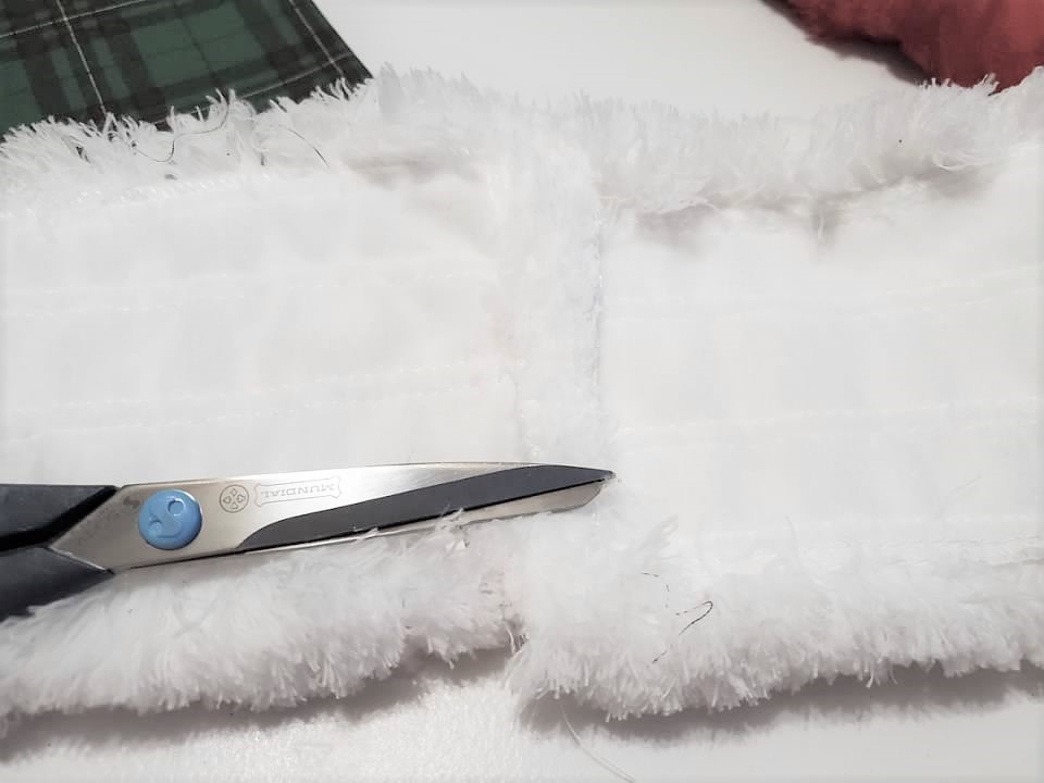 Now taking 2 of the Dollar Tree dust pads, sewing them together at one end to create one long pad.  Trimming any extra off near the seam.
