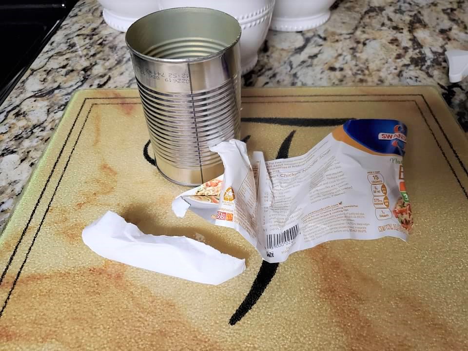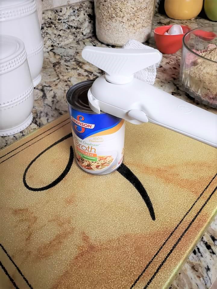 OK now to the challenging item at hand, the can of broth.  I knew I would use the broth for cooking so when I made a chicken potpie for dinner I used the broth.  By the way, our dinner was delicious. 🙂