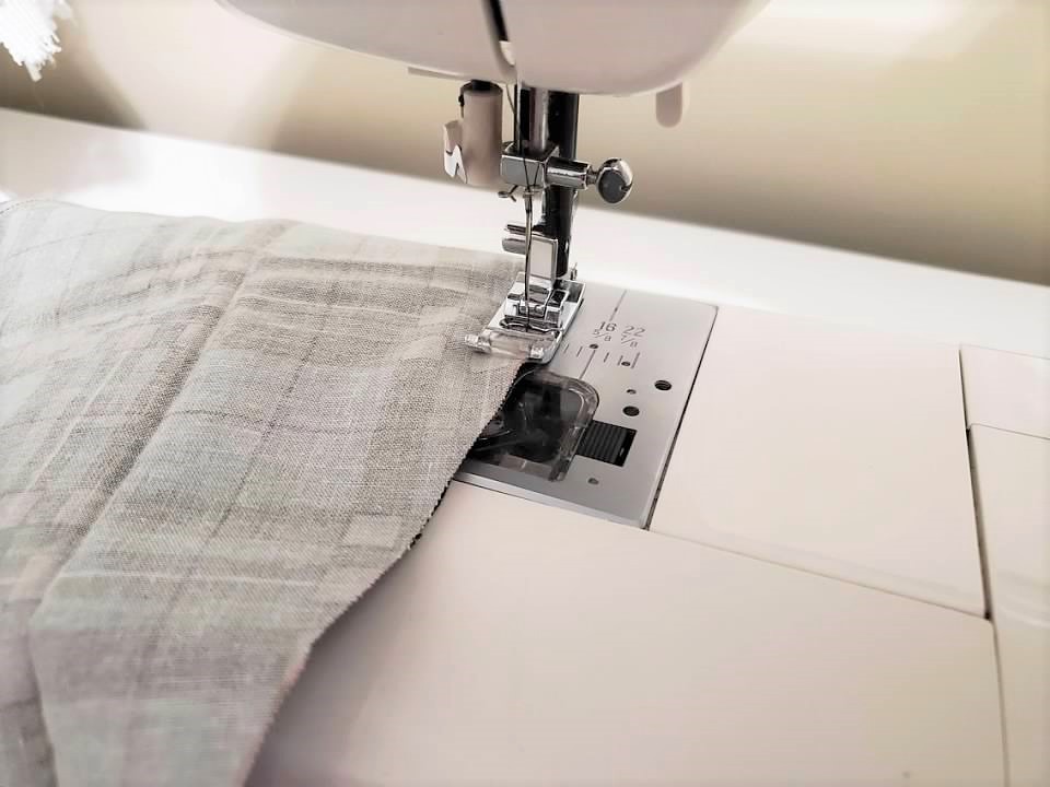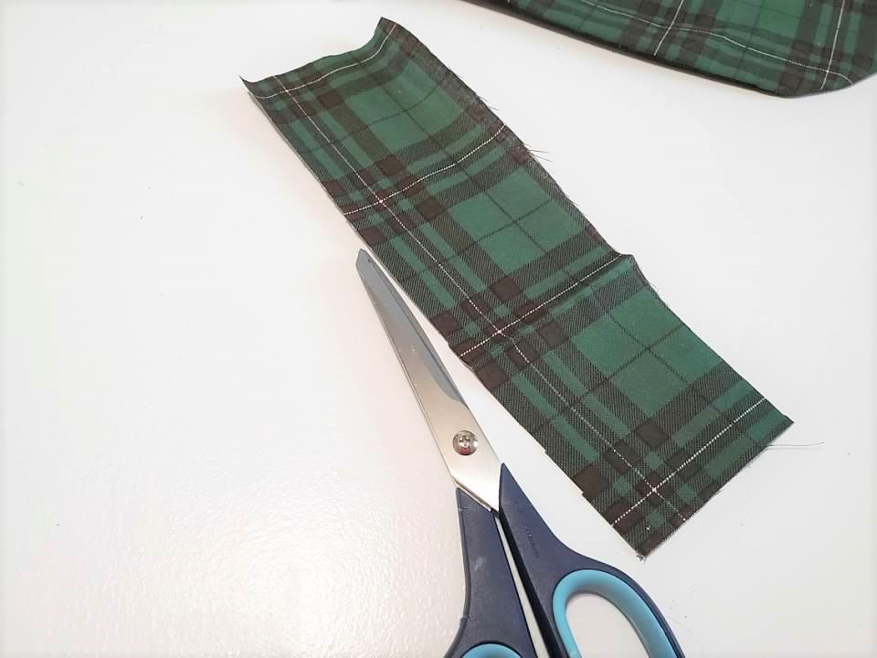 Taking a strip of fabric to make a hanger for the stocking and then I folded it up and stitched down one side to create the hanger.