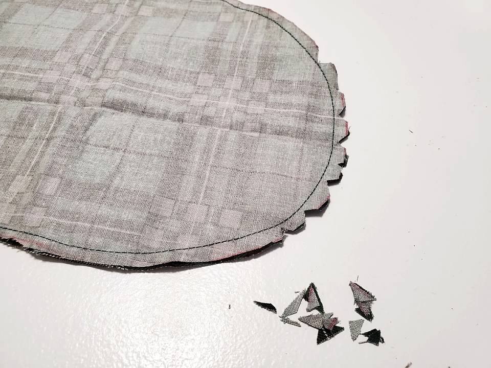 I cut the pattern out and stitched a simple stitch around the edge, leaving a gap at the top.  Before turning the stocking outside in I cut notches in all the curve areas, this helps keep the seams flat and smooth.