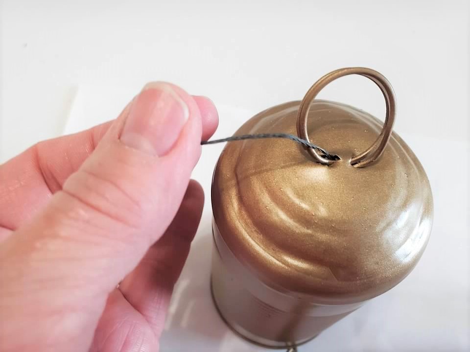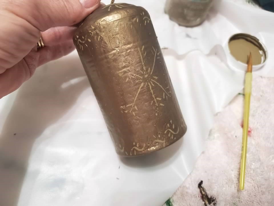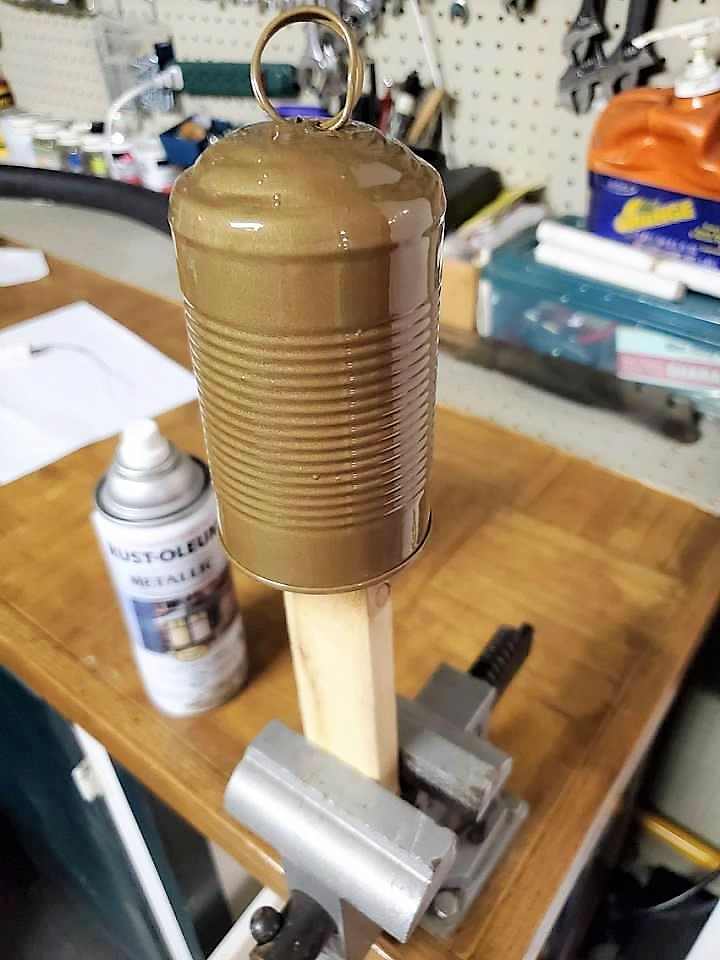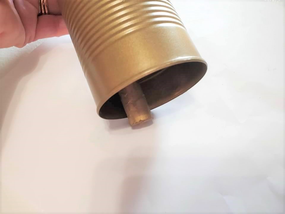 I spray painted the can and the dowel rod with the antique gold spray paint.
