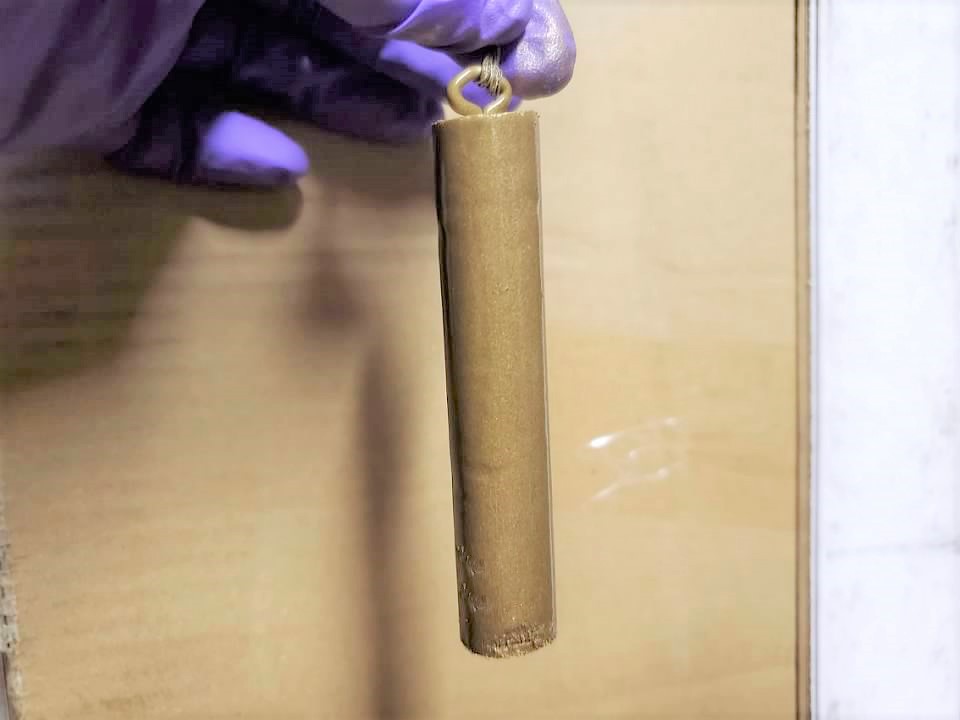 It worked.  Now to gather all the other things I needed for the bell.  I took a piece of a dowel rod, a picture hook with wire, one split lock washer and antique gold spray paint.
