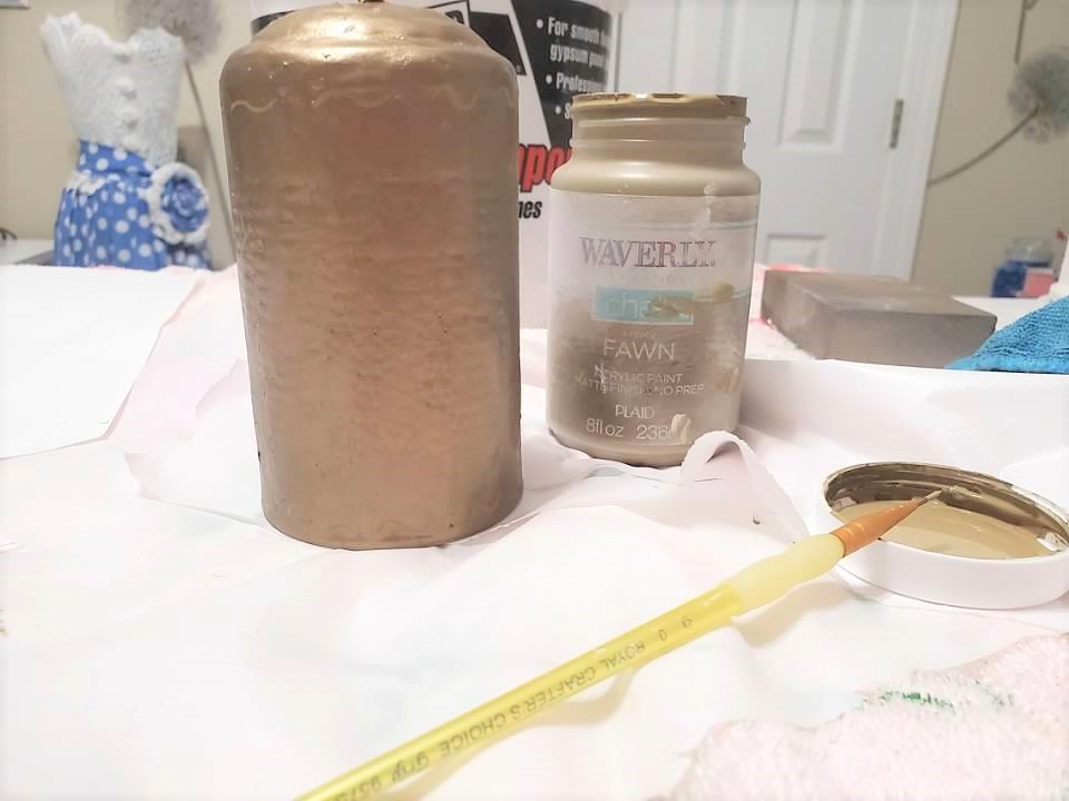 The lines aren’t totally covered, but I am happier with the look.  Like the inspirational bell, I added some details with Waverly chalk paint in the color Fawn.