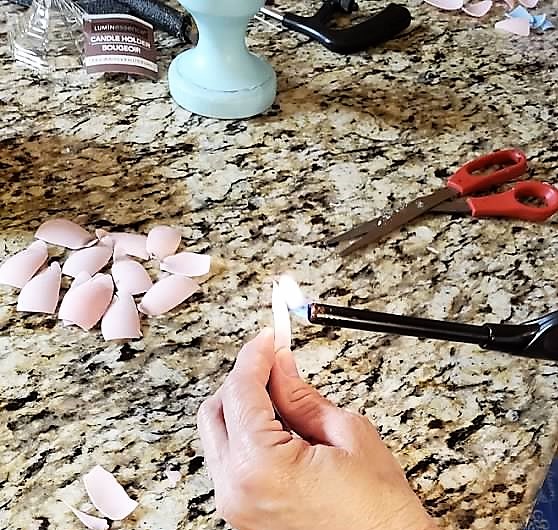 • I created the look of an artichoke leaf by using a lighter to curl the ends.  Be careful◊ I placed the lighter ONLY 6 seconds to the tip then pushed the tip back to make it curl.