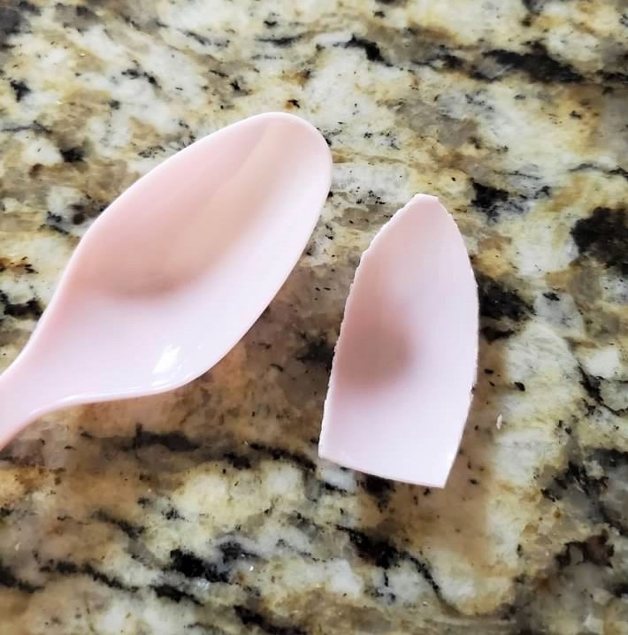 • Cut the spoon’s bowl off the handle.  It best to cut the spoon with the handle to the right and the bowl to the left and keep the bowl in an upright position, for some reason this helps to prevent the bowl from cracking. I am righthanded so reverse this if you are a lefthanded person.
