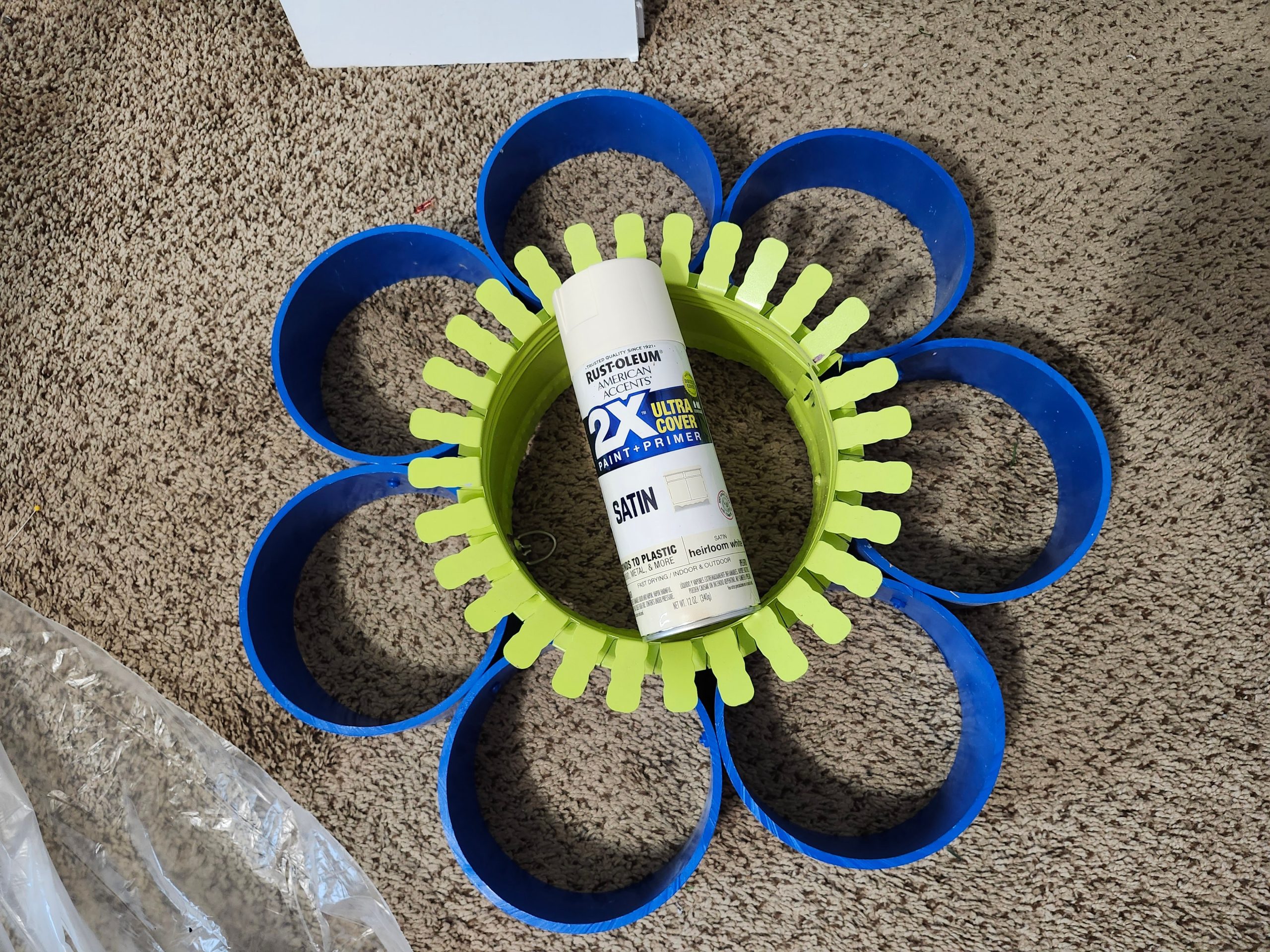 Moving onto the wall decor, painting my wall flower organizer with Rust-oleum ivory spray paint.