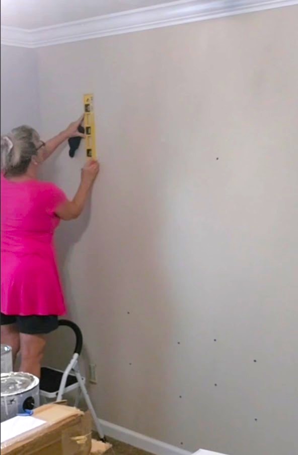 To start wallpaper, I needed to get a level line to start the first row. Having a level line for a guide is a major key when hanging wallpaper.