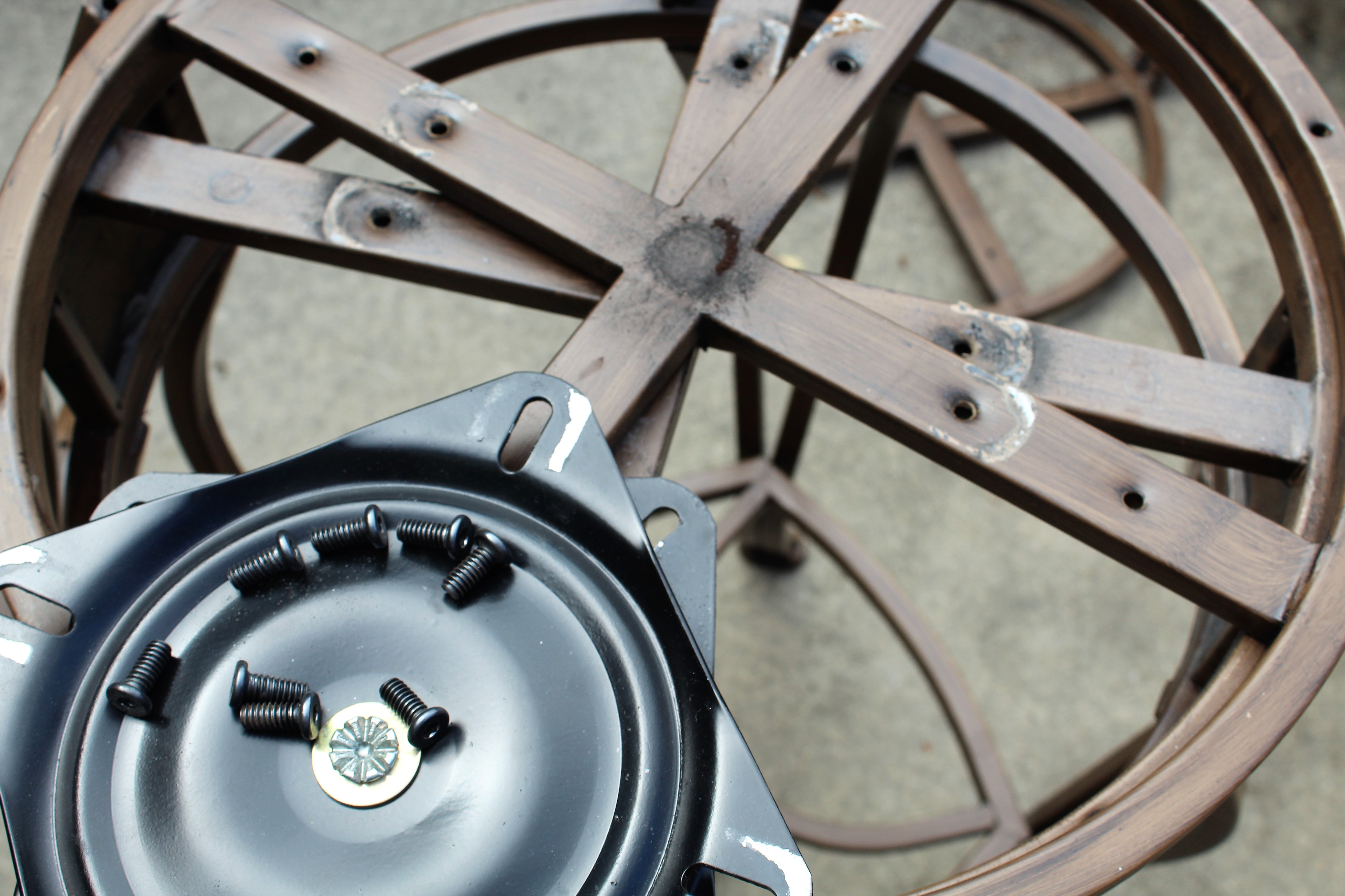 I took my stools apart so I can easily paint them. I removed the seats, the swivel part and the top of the seat.