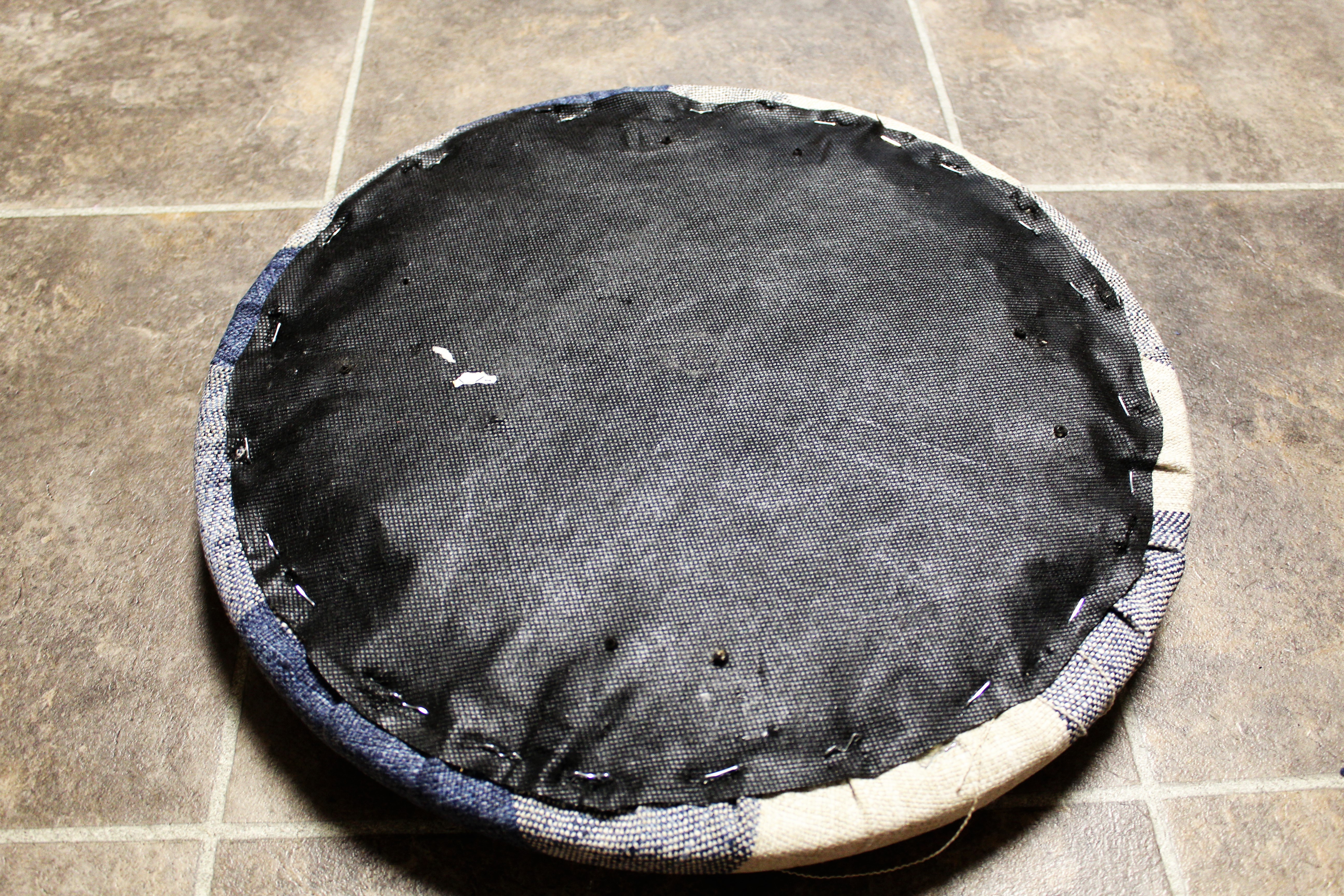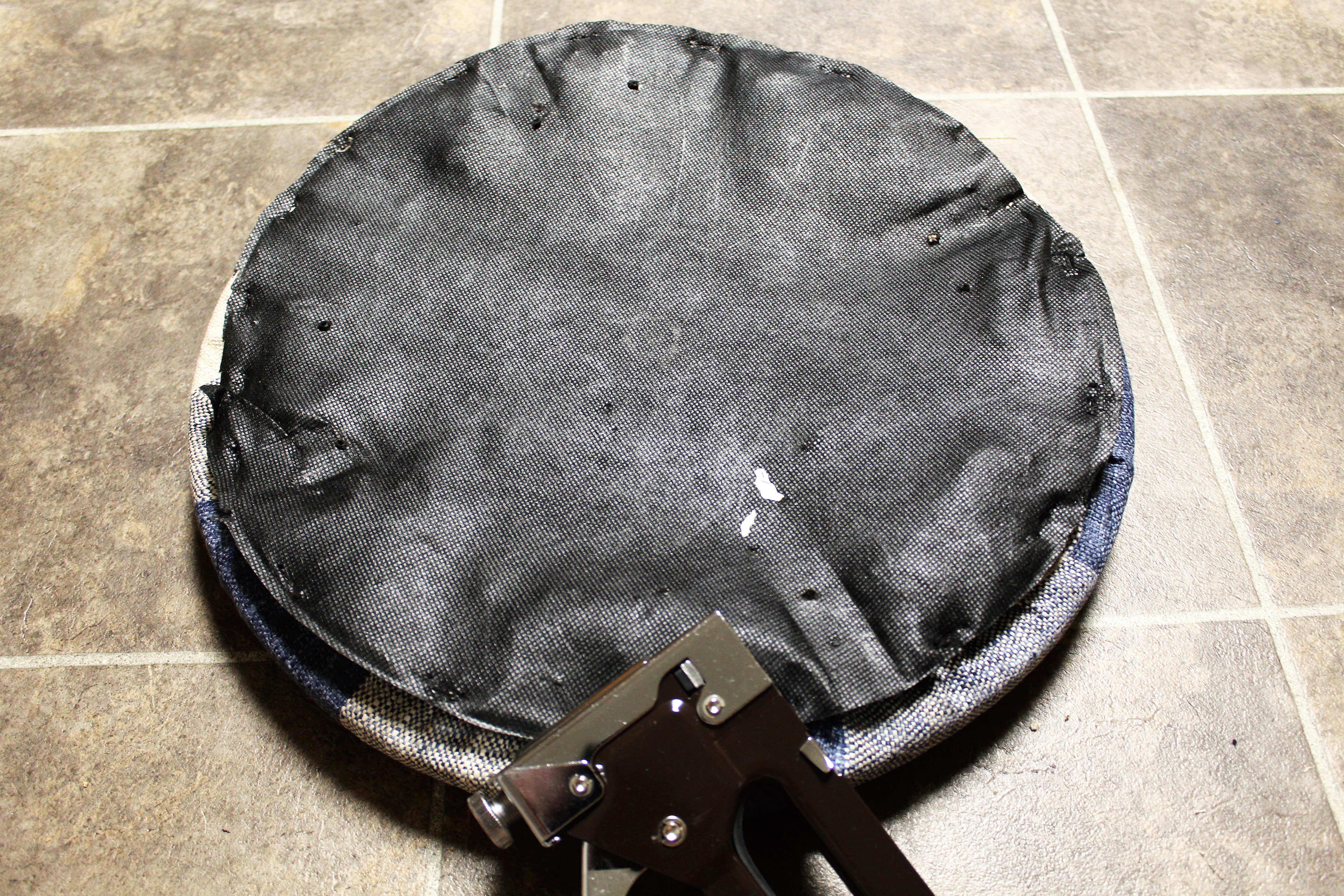 When stapling I made sure I didn’t pull too tight, pulling it too tight can cause indents where the staples are. I turned it around to make sure its smooth and taut. I flipped it back over and continued to staple.