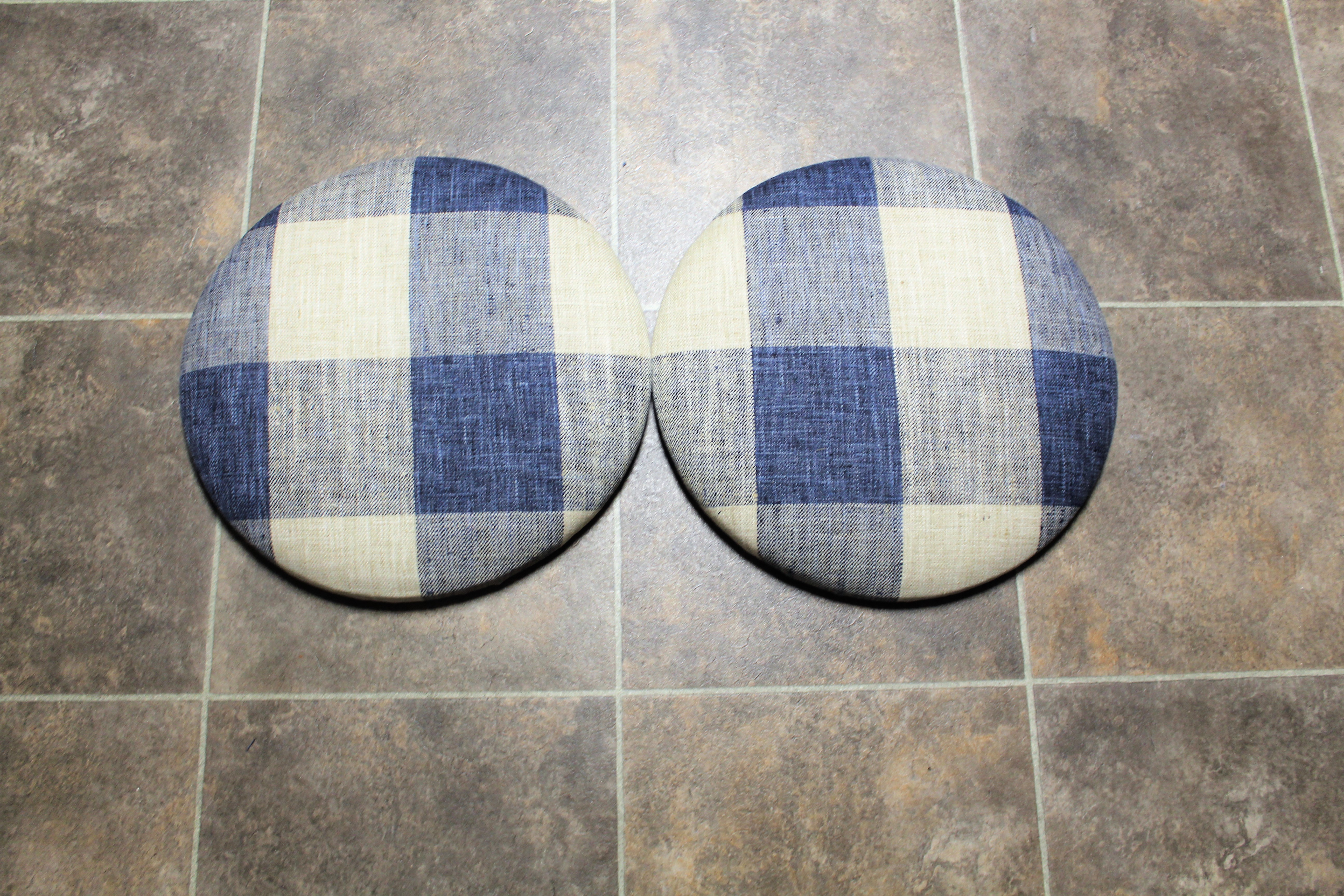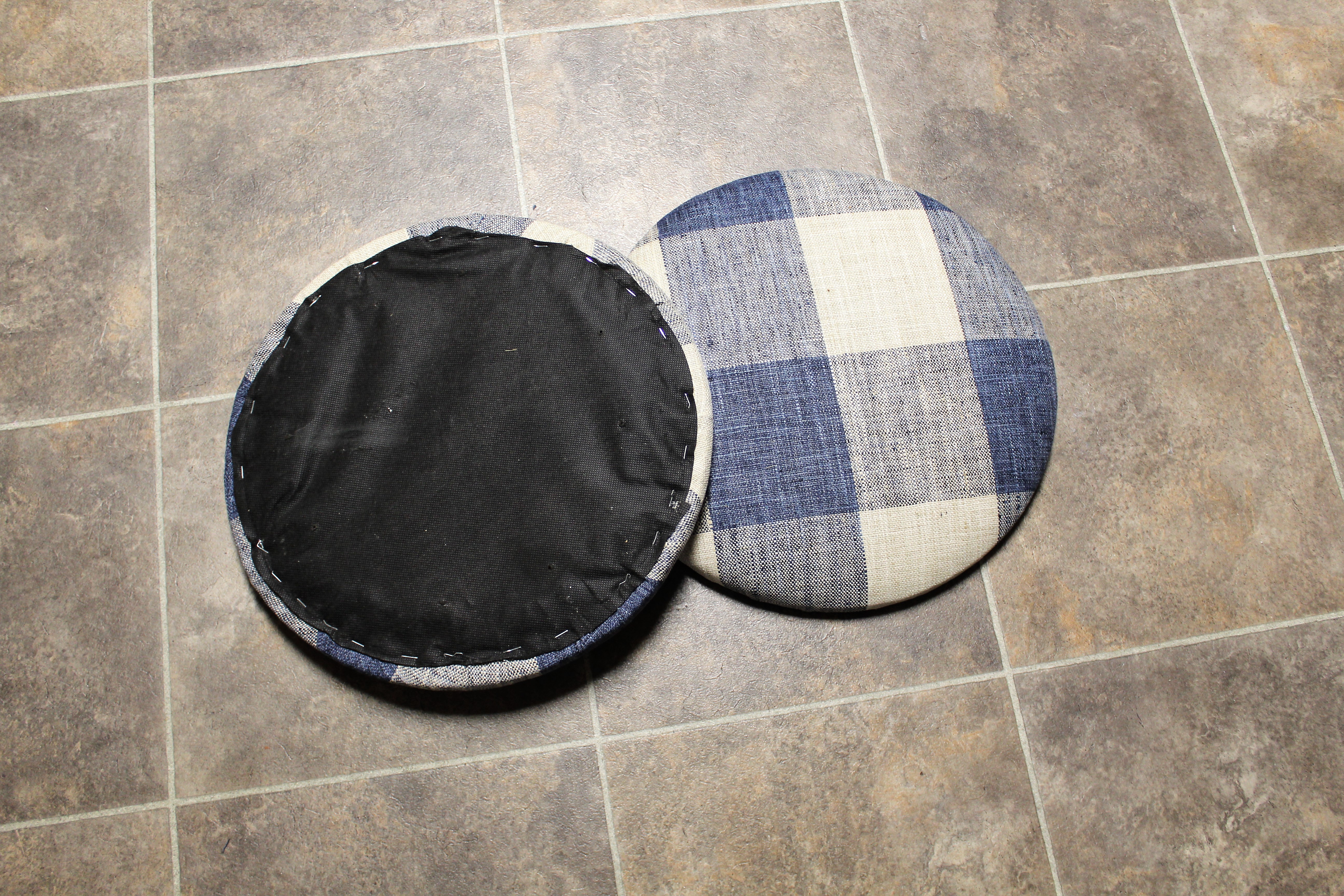 I placed the stools together and added the new re-upholstery cushions.