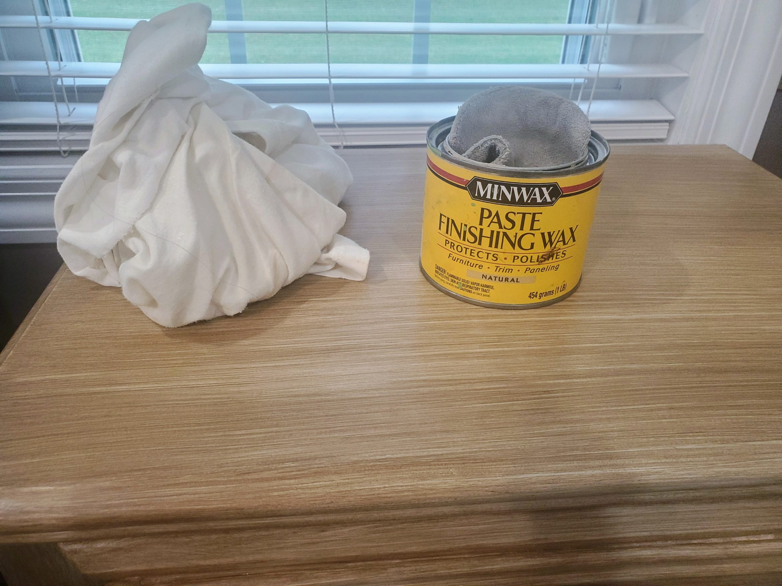 I like to clean all the furniture while nothing is sitting on it. While waiting for the room to be finished I have to make the bed, so the old bedding is still on our bed. 🙂