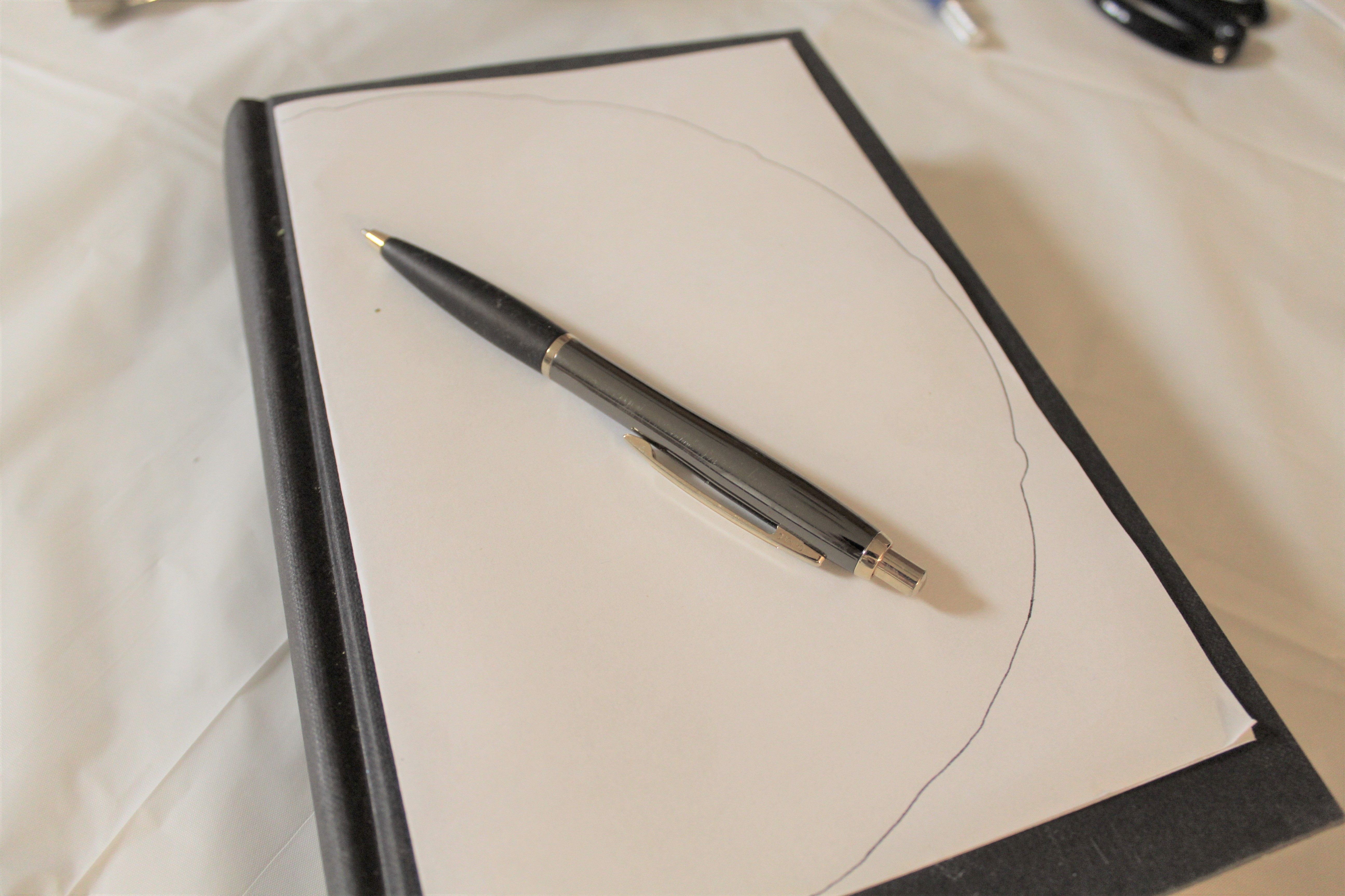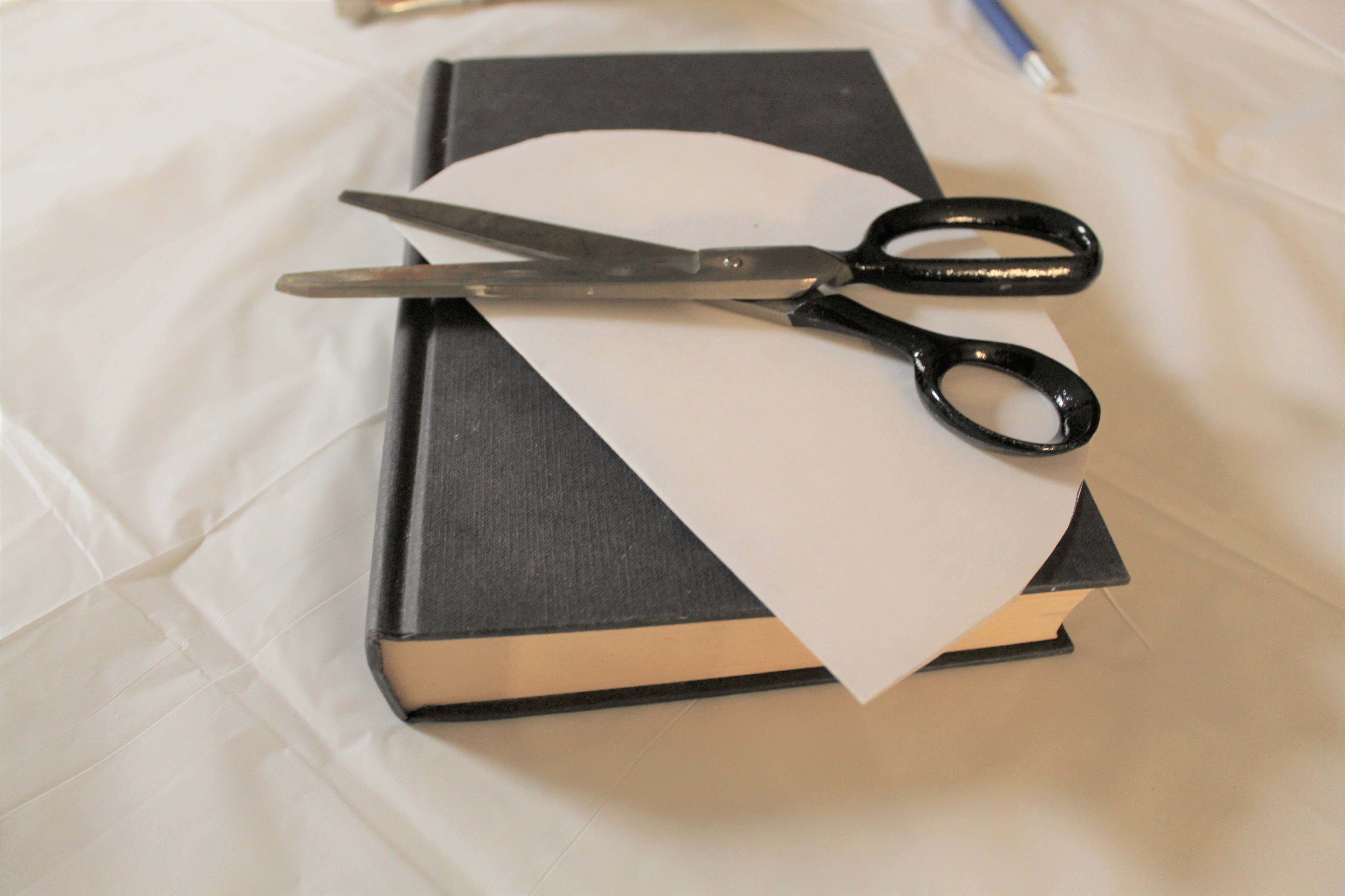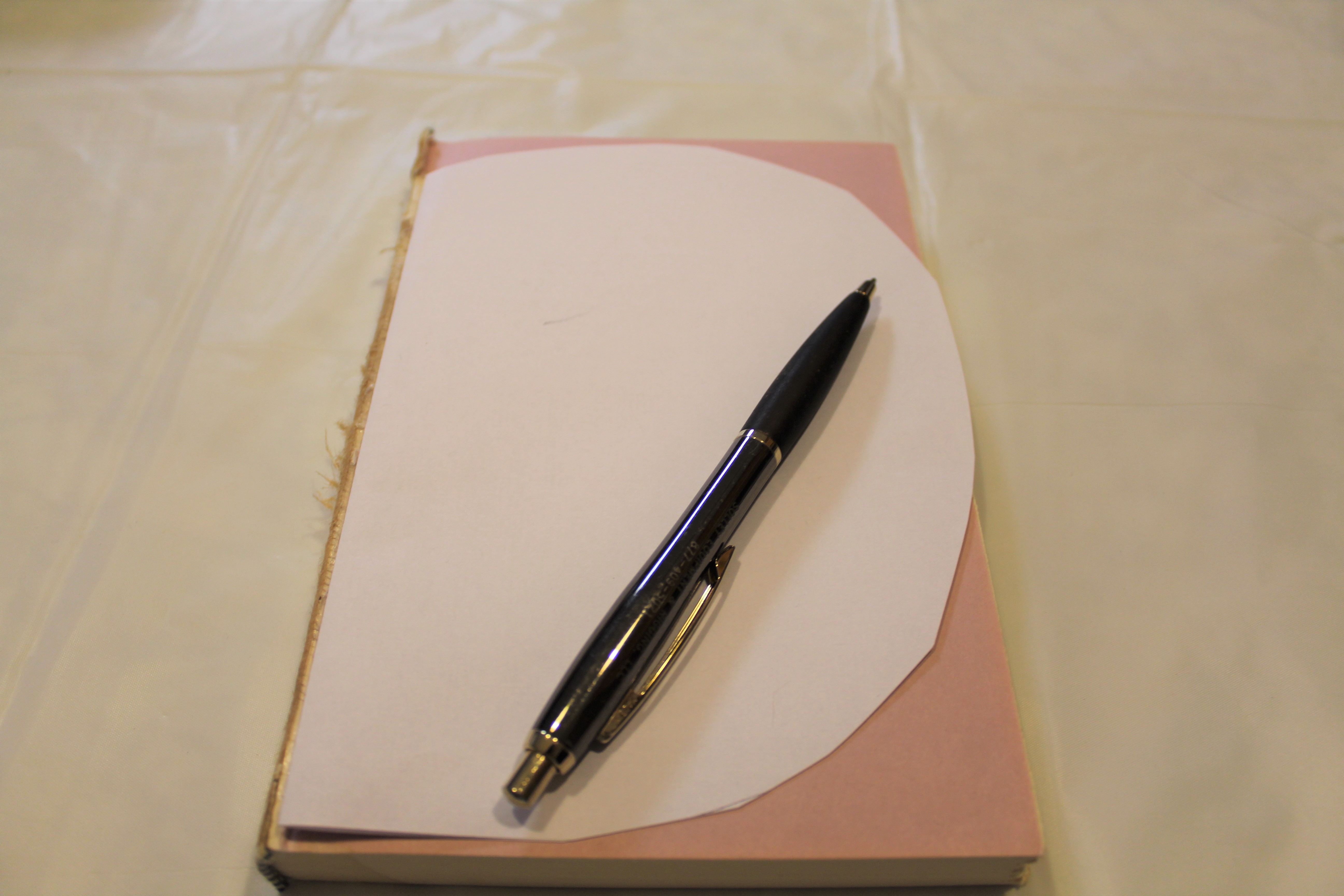 I made a little pumpkin pattern to trace onto my book.  I free-handed half a circle and cut it out.