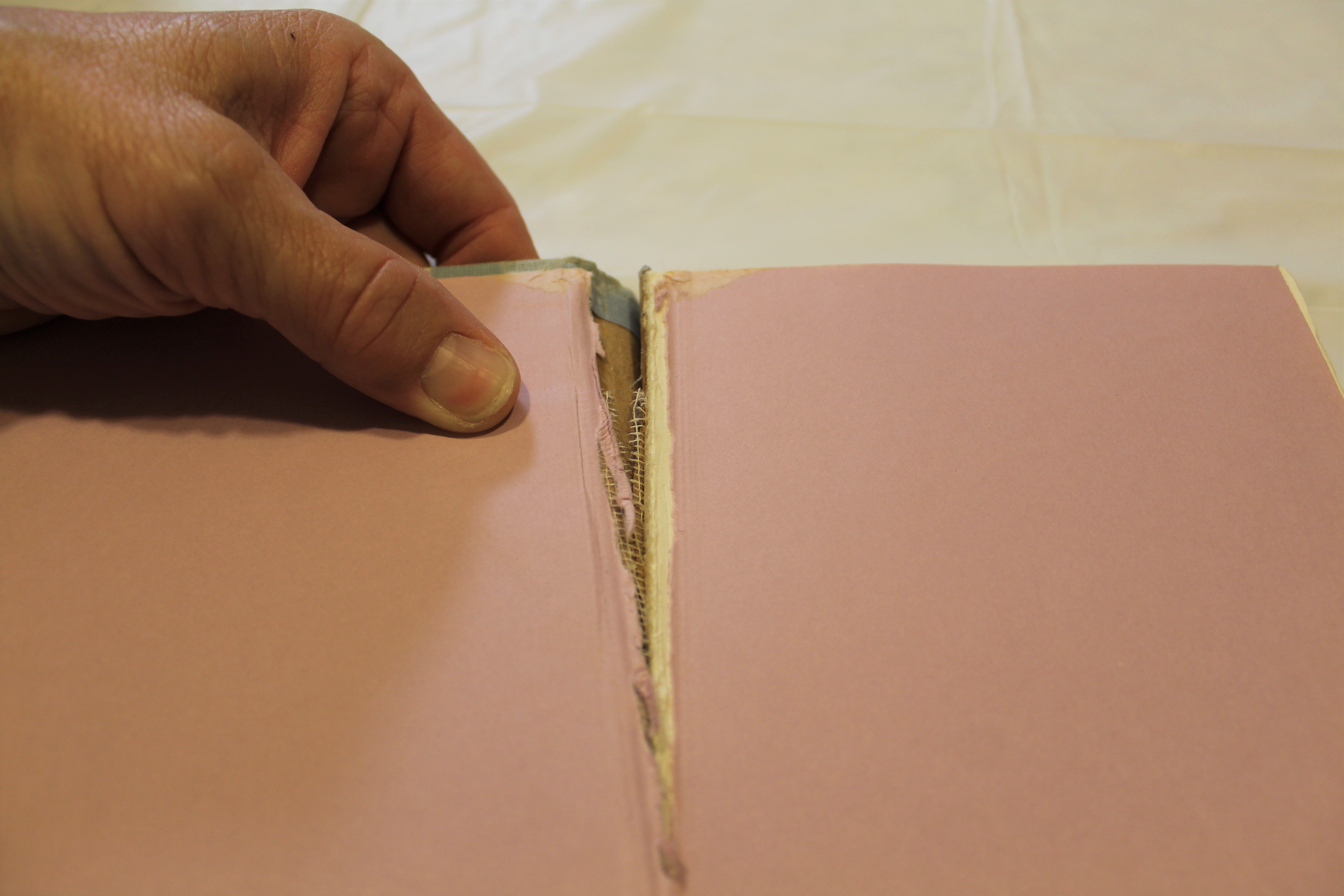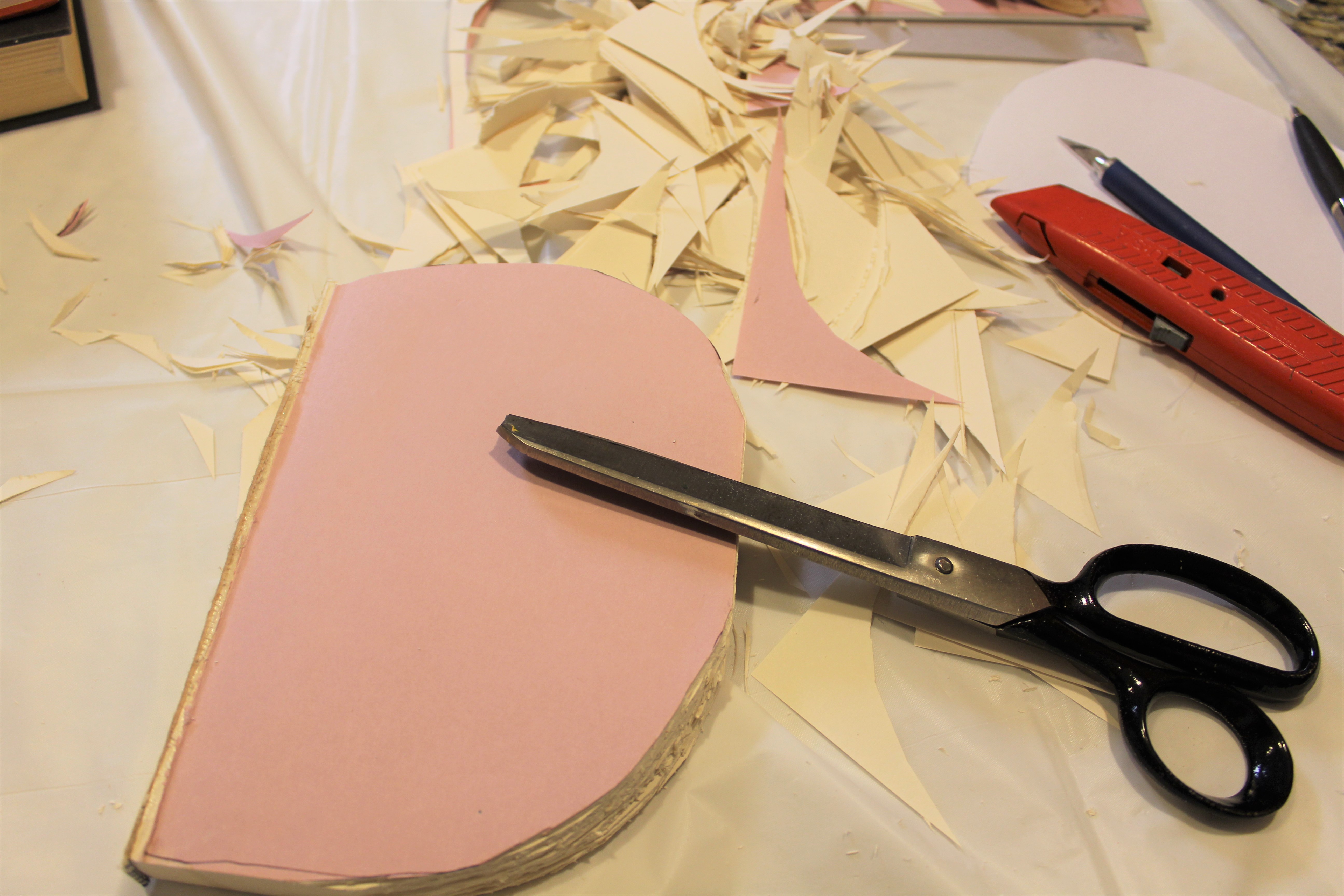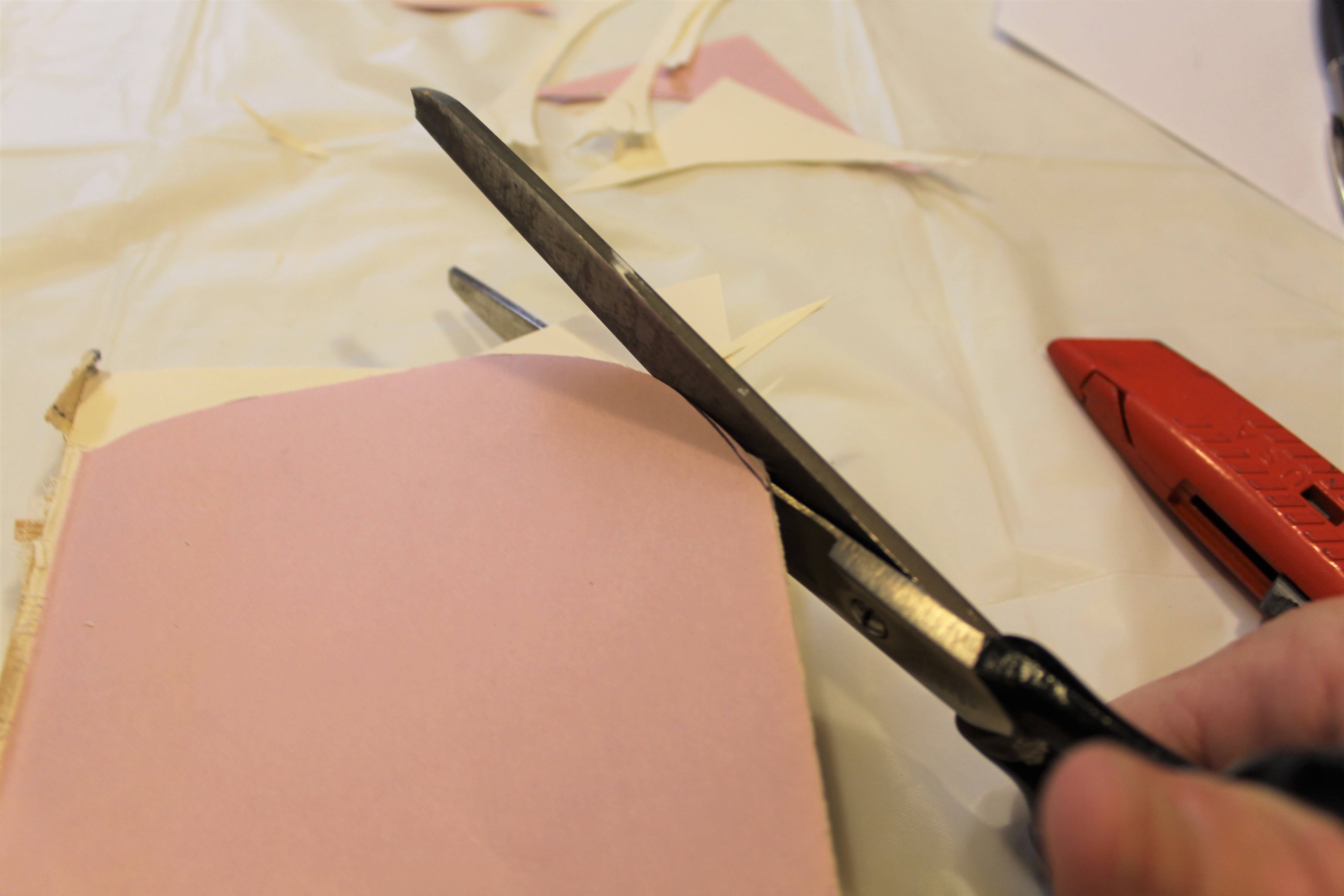 Taking my book and my craft knife cutting the cover off the binder.  If you use soft back books you can just rip off the cover.