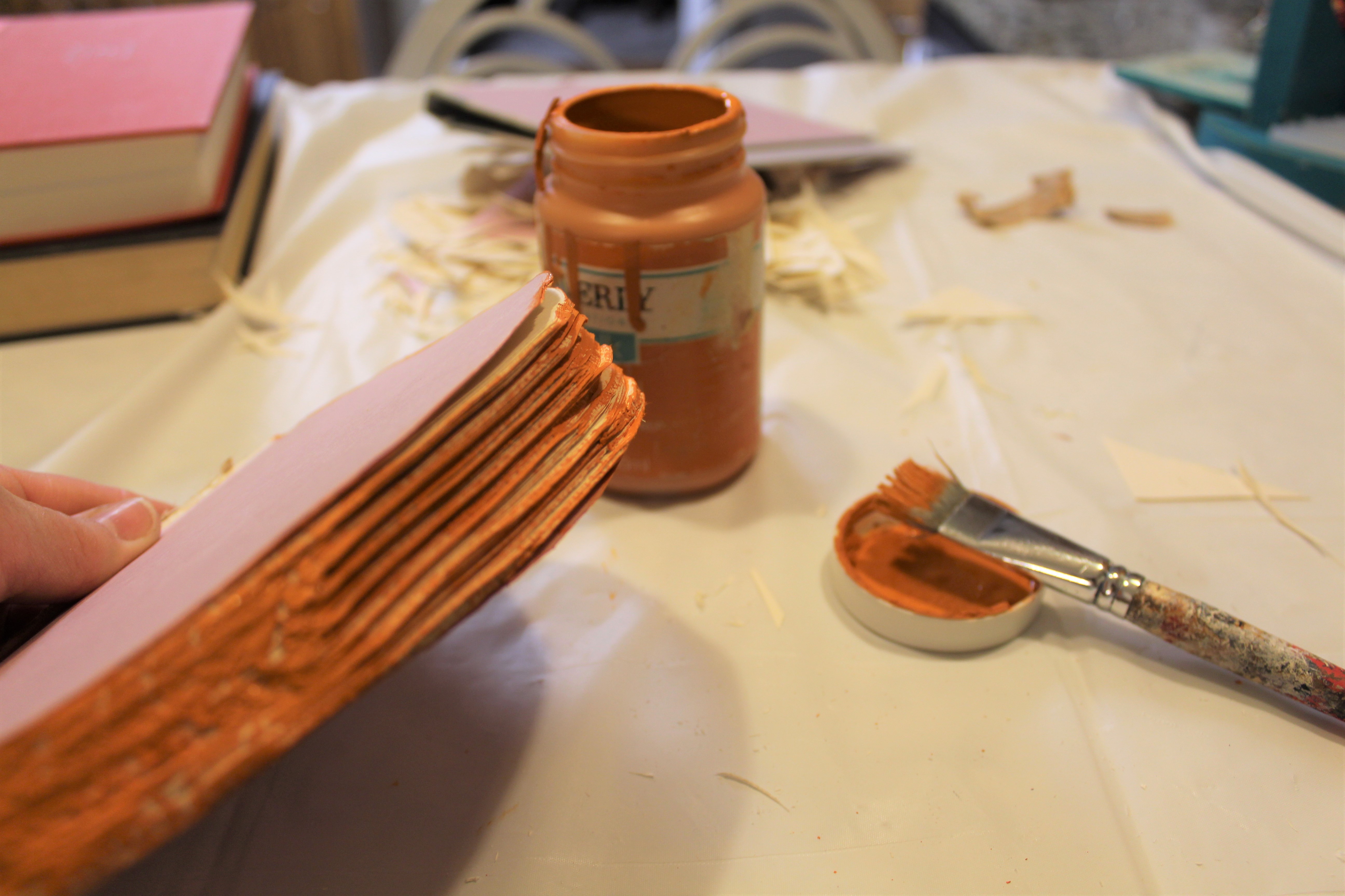 Taking my Waverly Pumpkin craft paint I painted the edges of the pages.