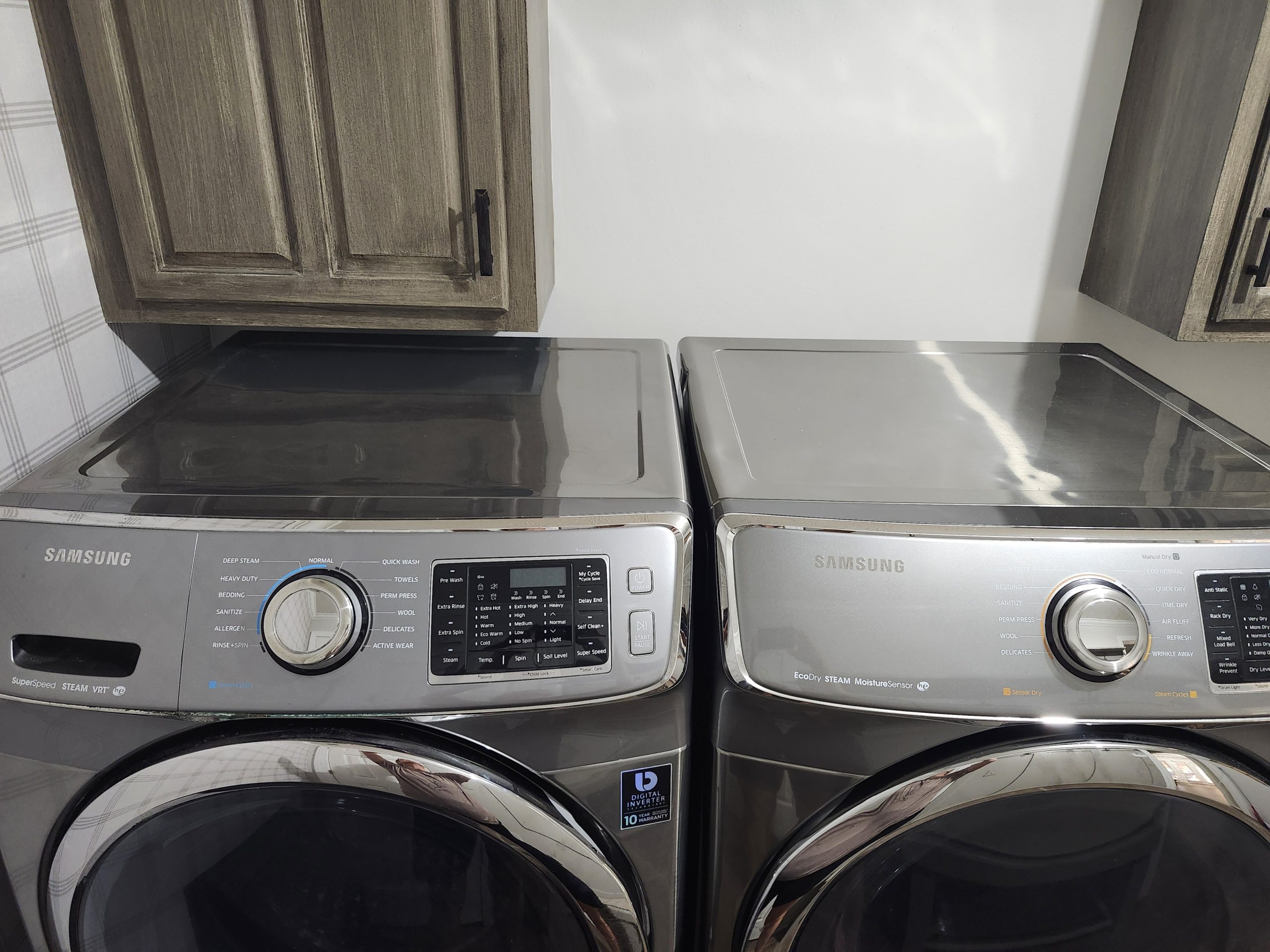 The set doesn’t sit perfectly together and has about an 8-inch gap in the back of the machines, which allows clothing to fall behind the machines. Not a fun process trying to get them out from behind them either.