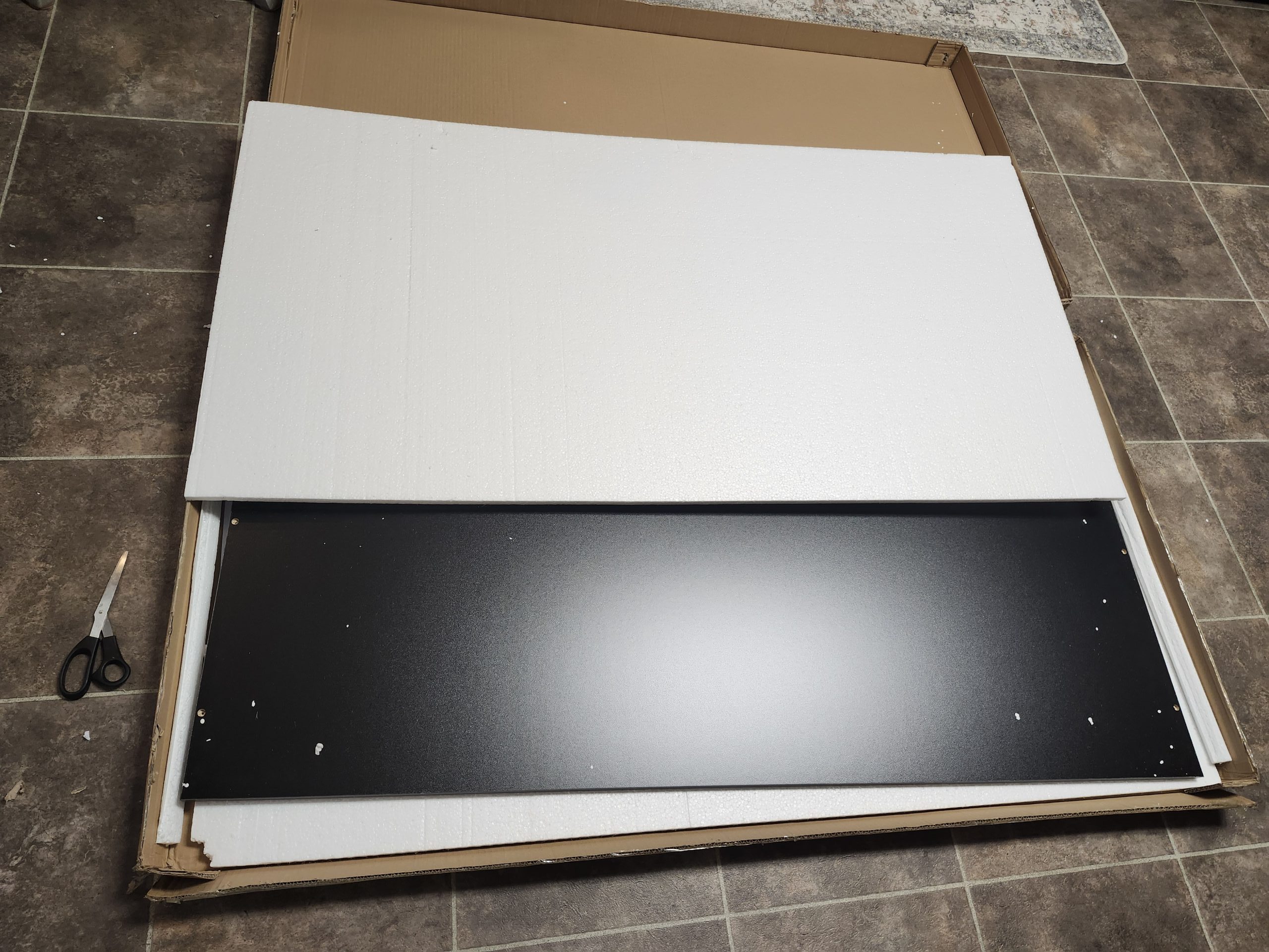 Before I placed the protective pads on the bottom, I placed the countertop on top of the machines.