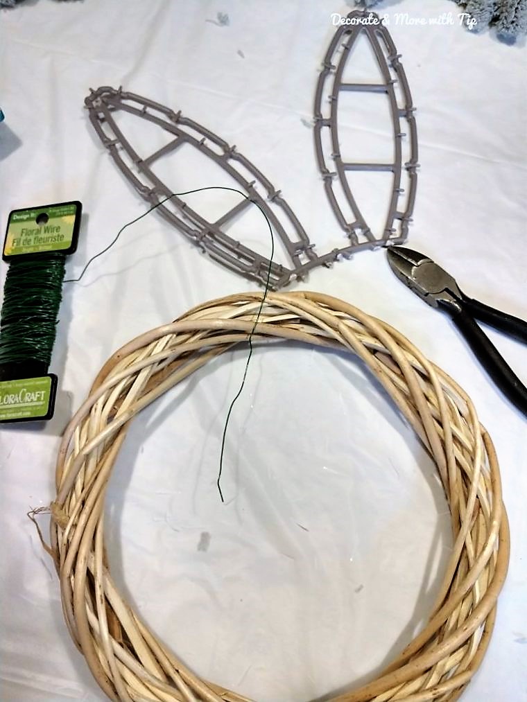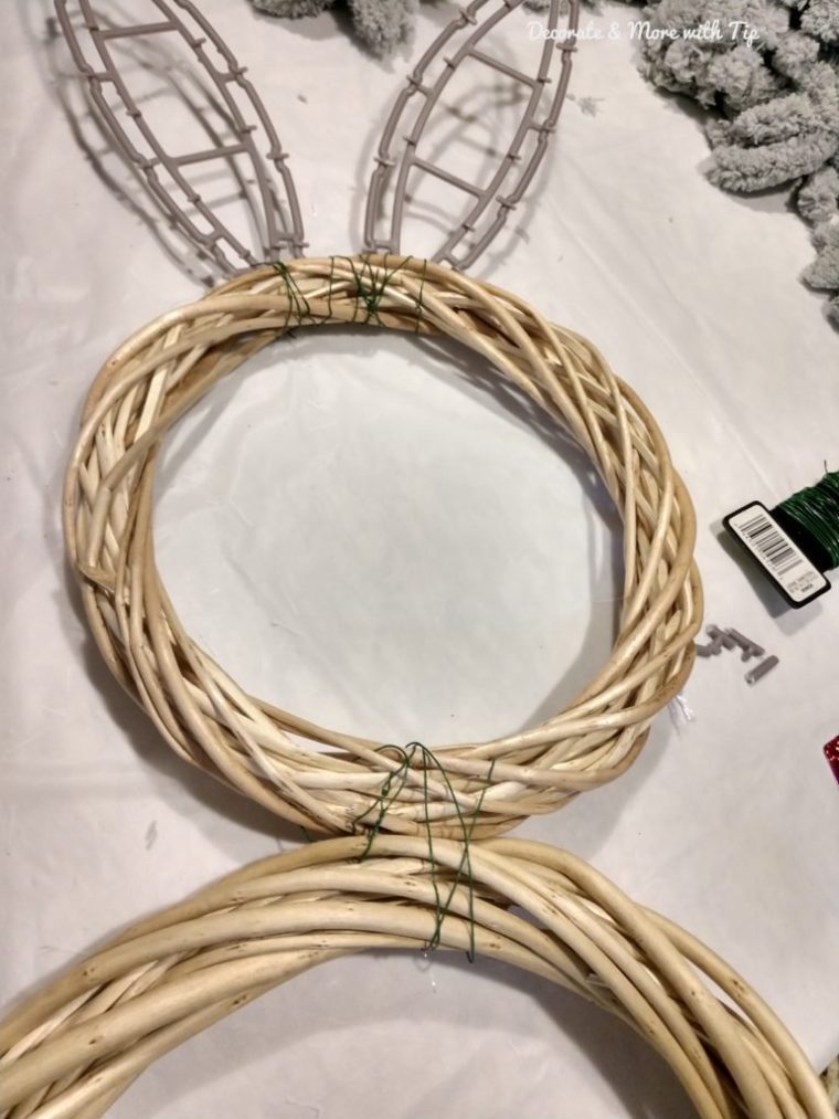 Now take the two wreaths and the ears and attach them together with floral wire.