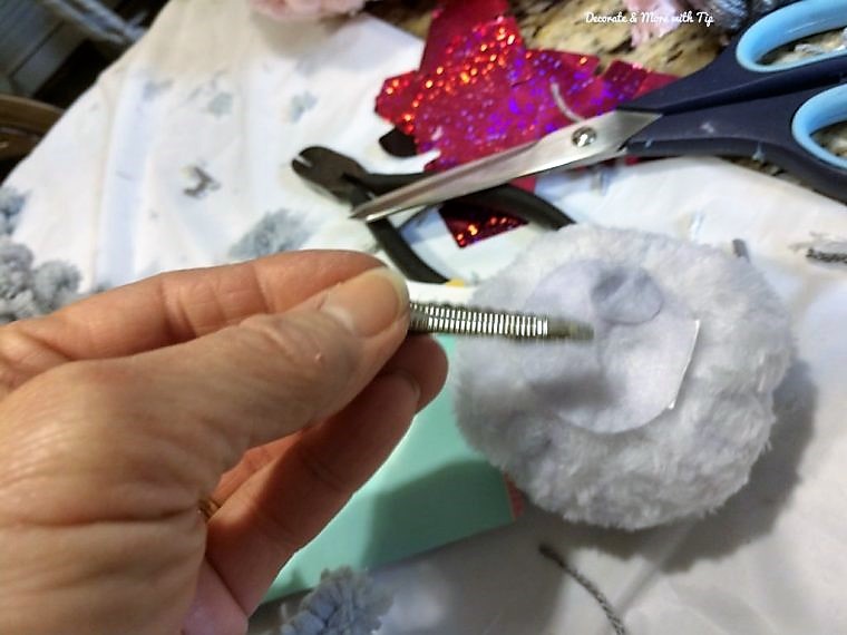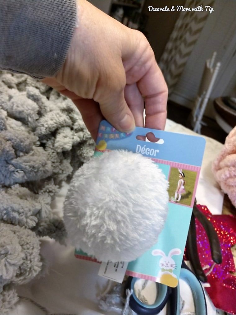 Taking the pre-made bunny tail and remove the clip and hot glue it to your bunny wreath where you want the tail to be.