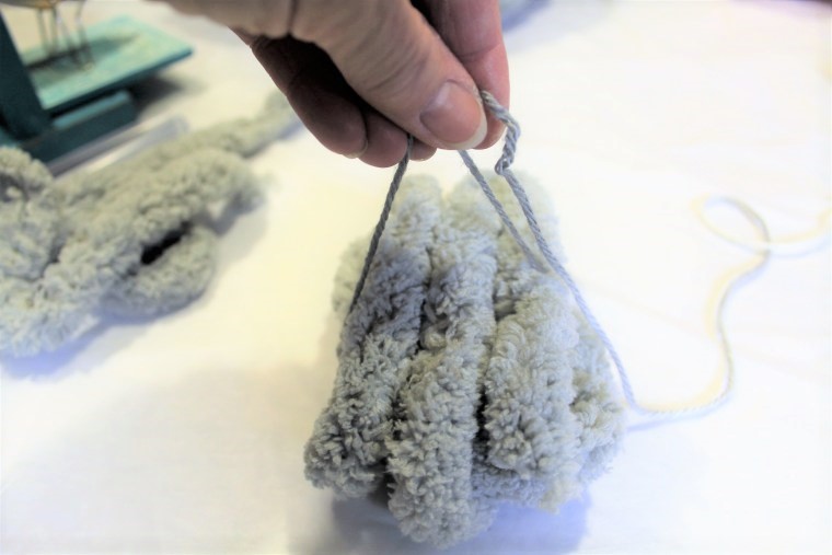 • Taking a 6 inch piece of the chenille yarn and making a shape.