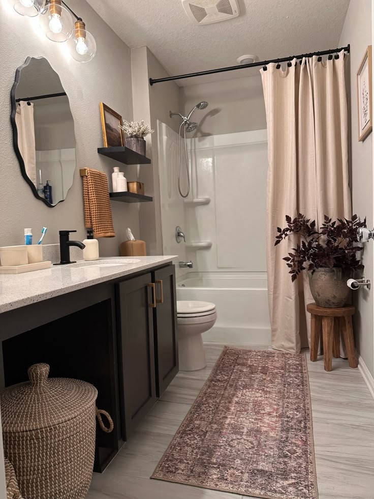 I want the feeling of a warm, relaxing bathroom with moody tones, more texture and a little touch of rustic. That’s the vibe I am going for in our bathroom. I am really excited to be starting this project.