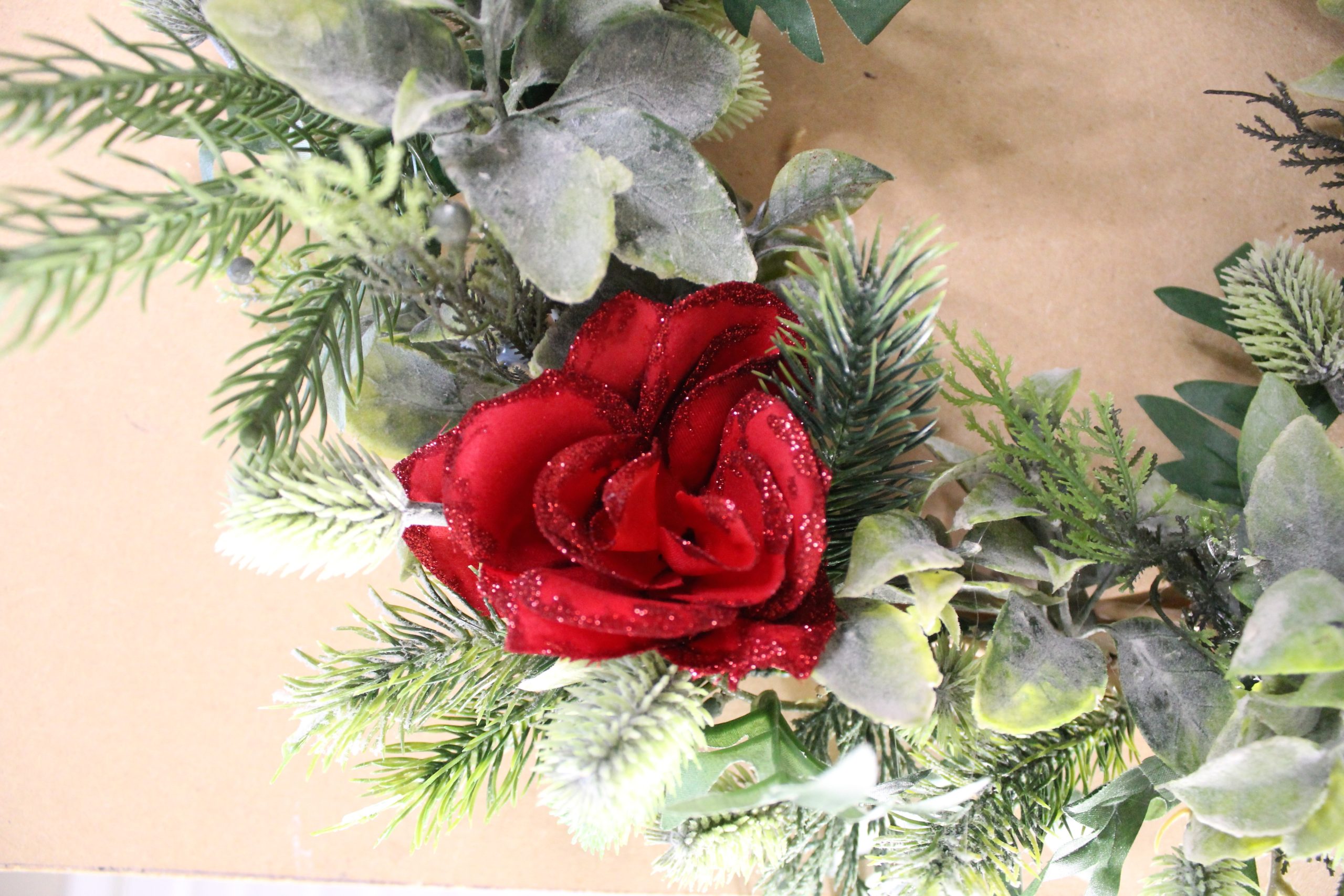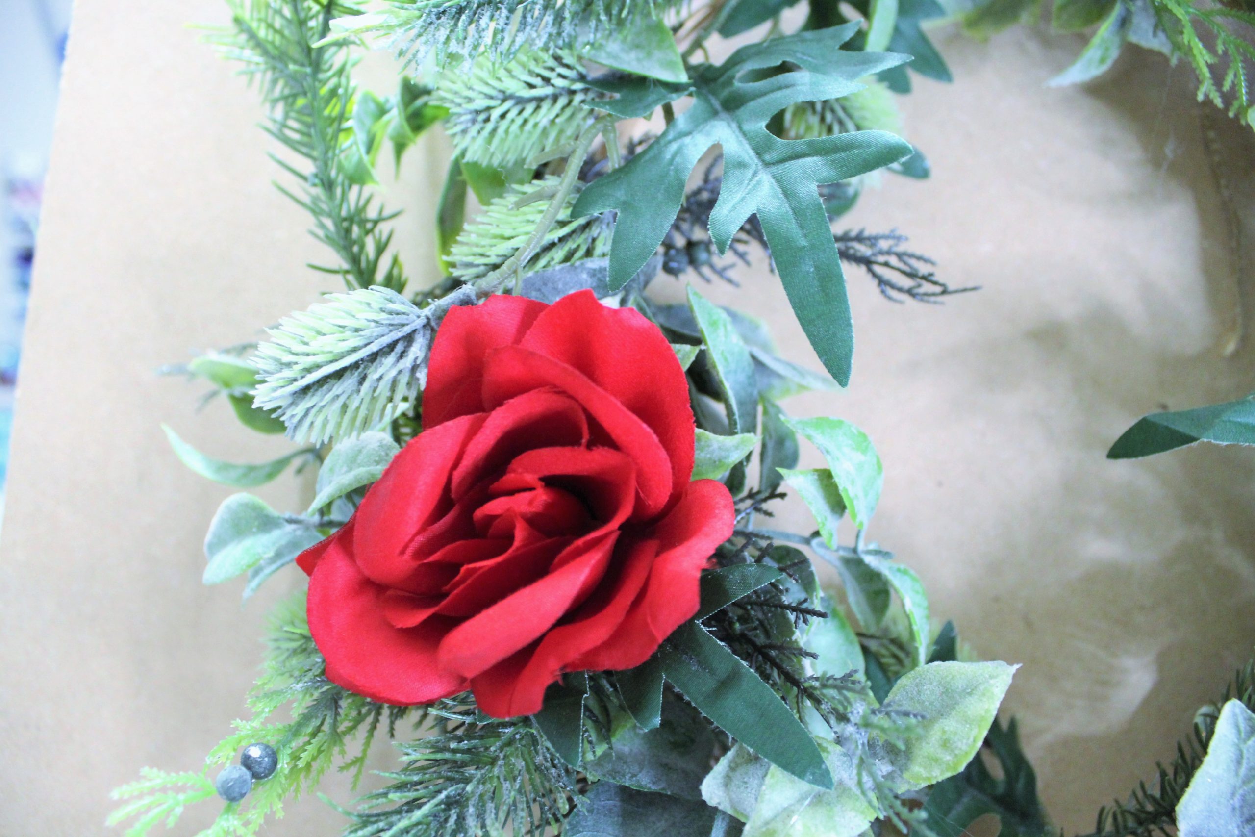 I added all 5 roses back to the wreath. The roses look richer with the glitter, don’t you agree?