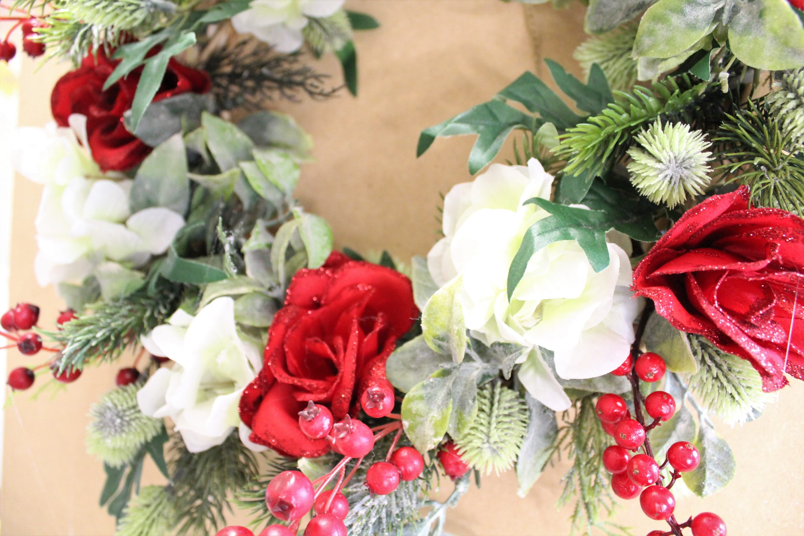 I just love the wreath I created for the creative craft hop. Roses and hydrangeas together made a great combination for my Christmas wreath. I can’t wait for you to see how it all came together.