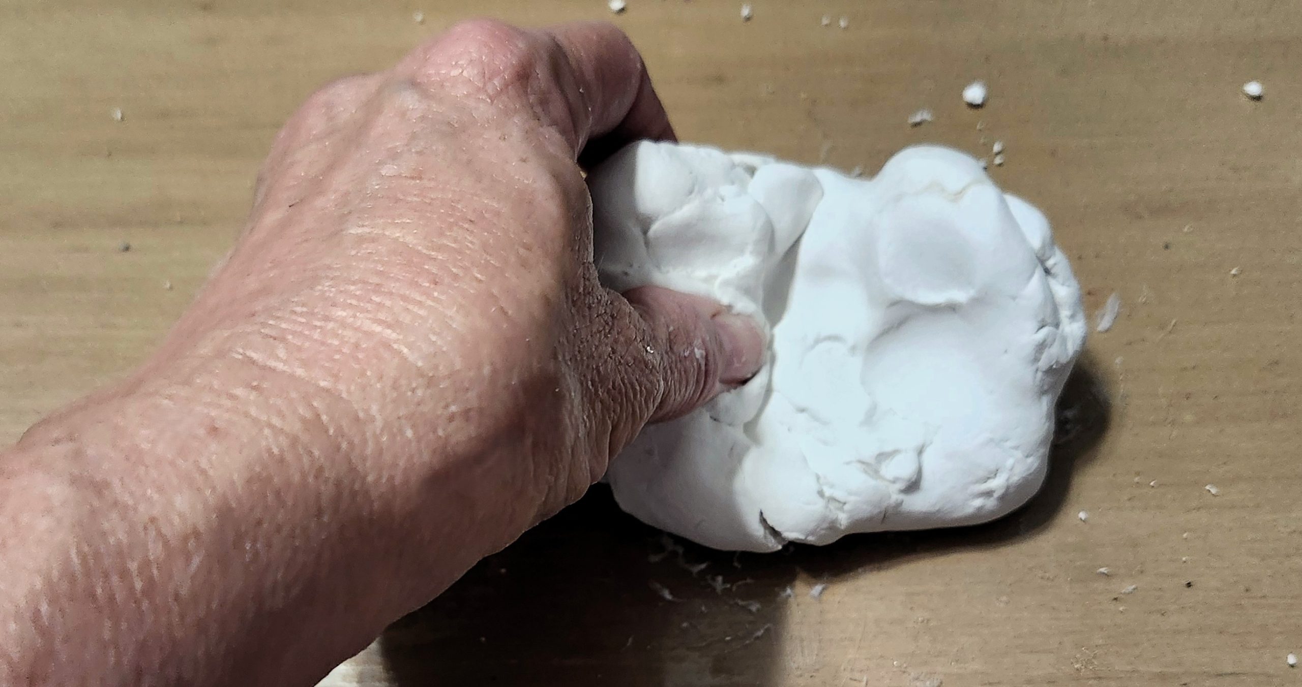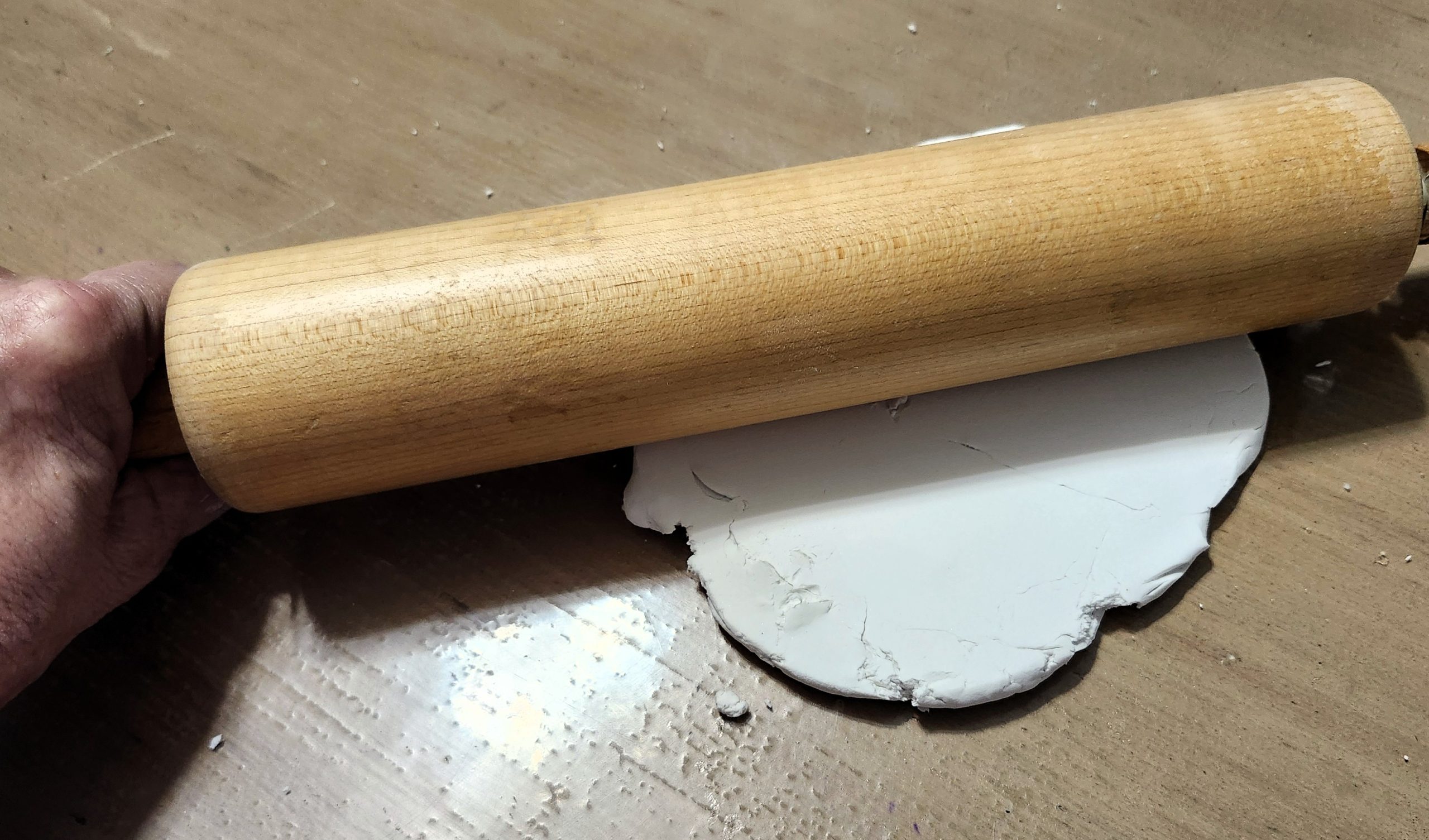 Step Two:  With the rolling pin, roll out the clay until it is flat,