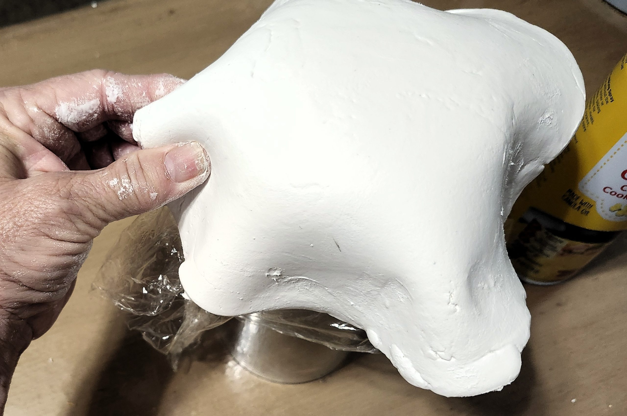 Step Five:  Place your clay over the container and shape into a ruffle pattern.