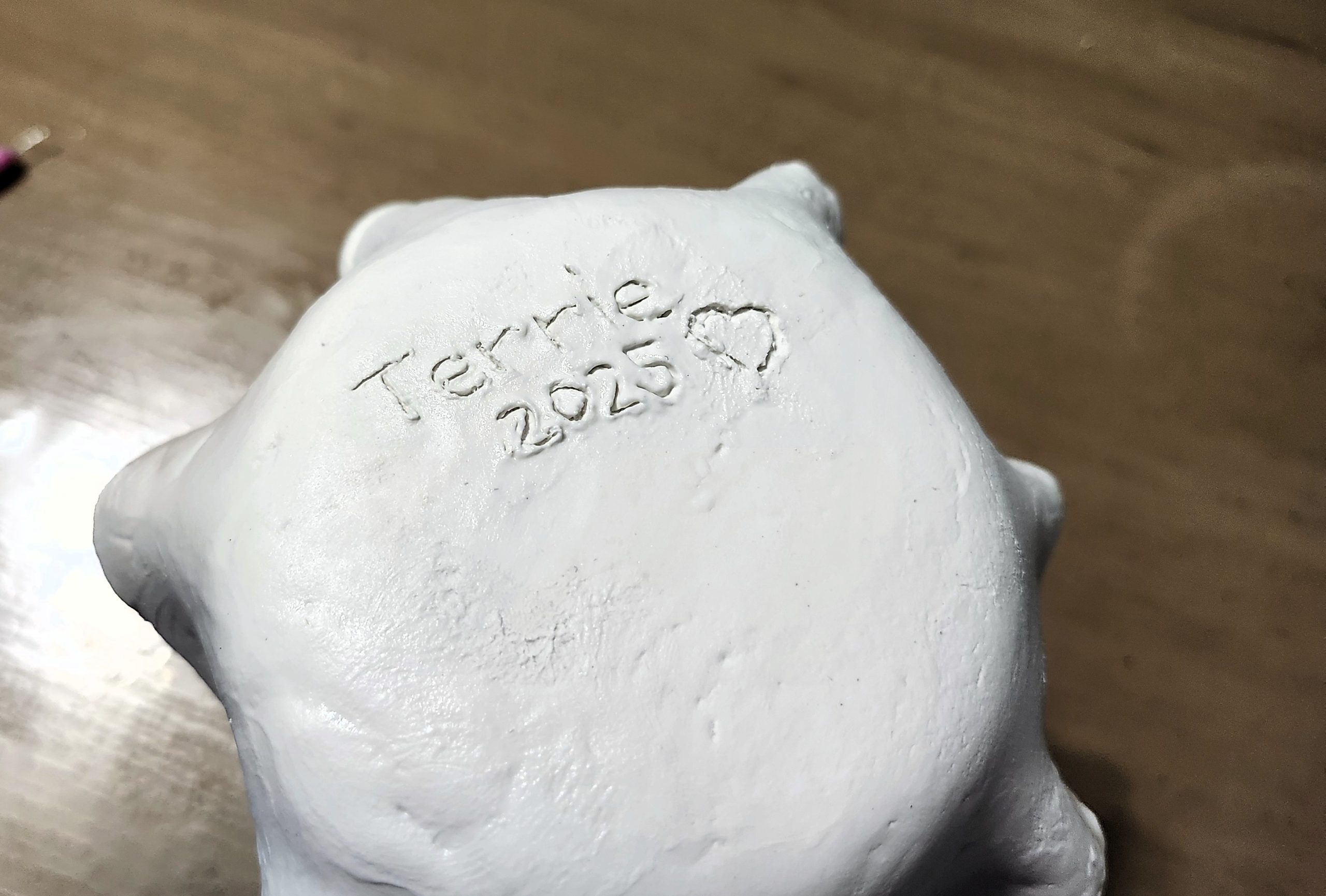 Just for fun, I craved my name and year to the bottom of my bowl.