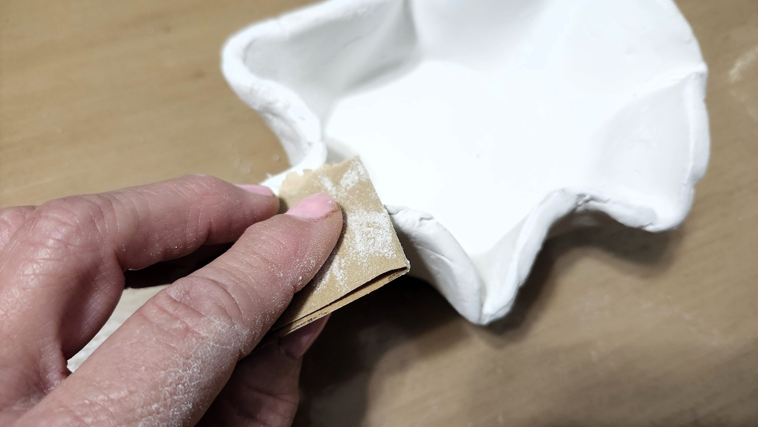 I used 120 grit sandpaper and sanded the rough spots and edges of my bowl.
