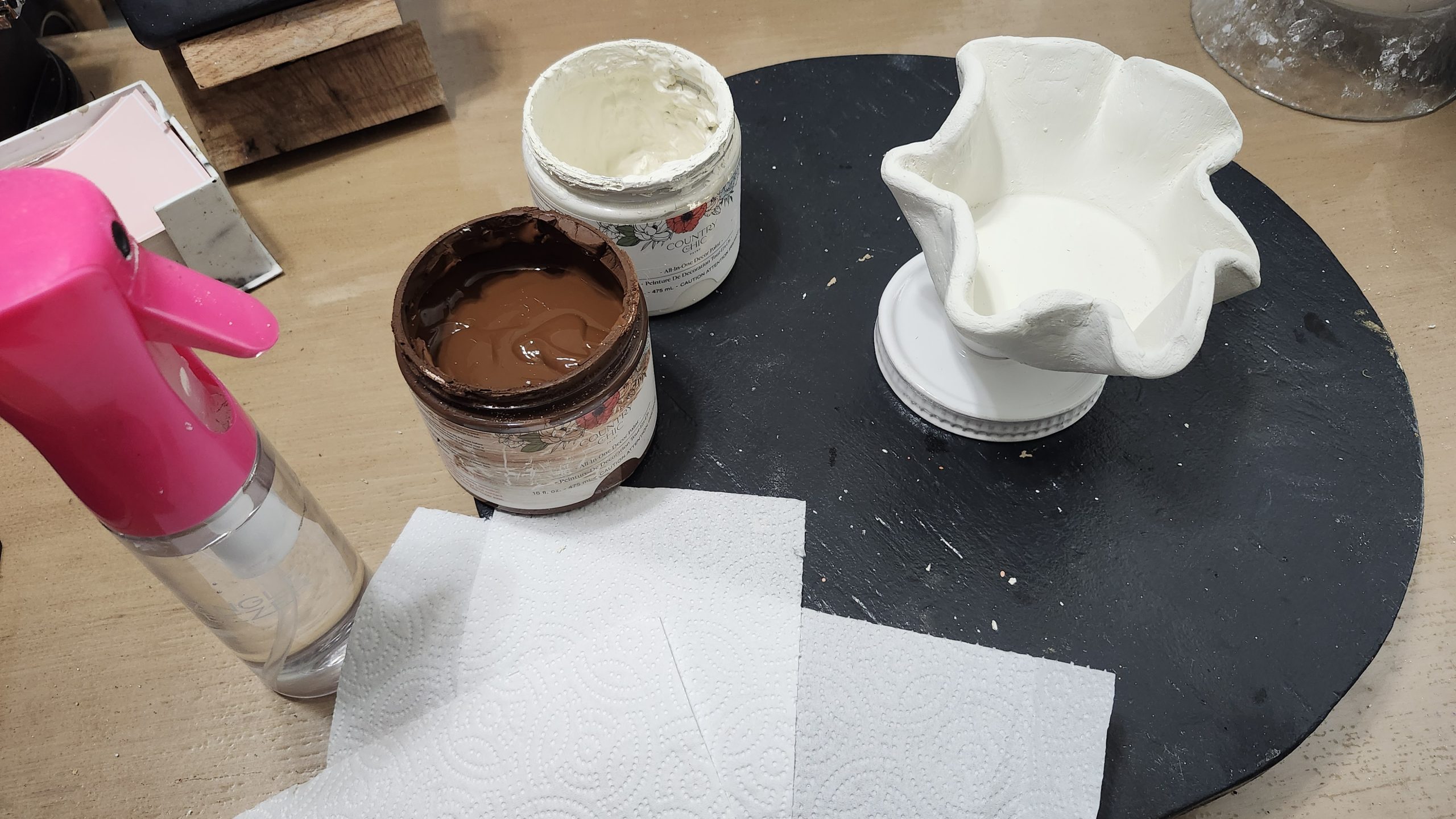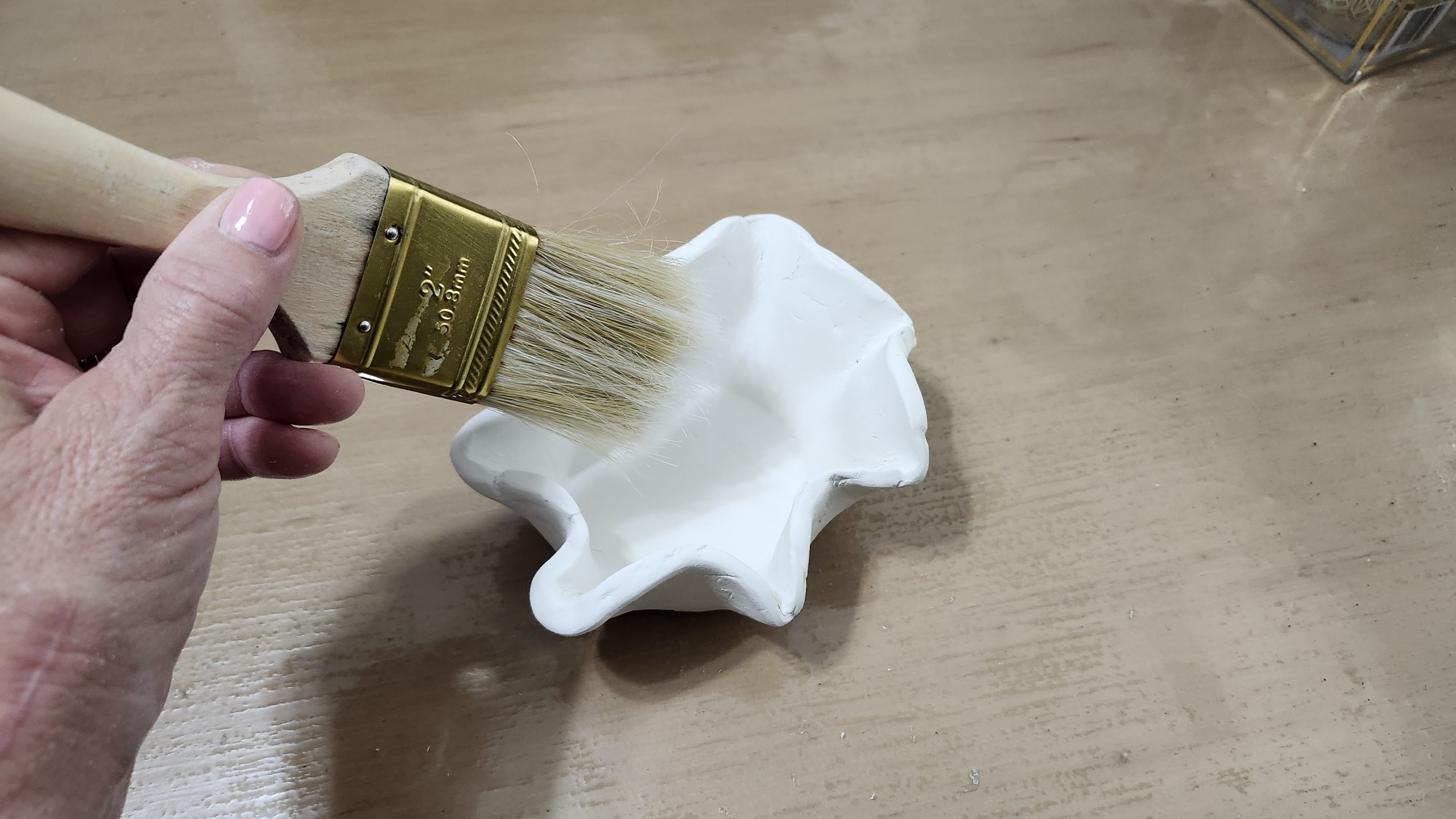 To paint my bowl, I first painted it all over with antique white chalk paint.