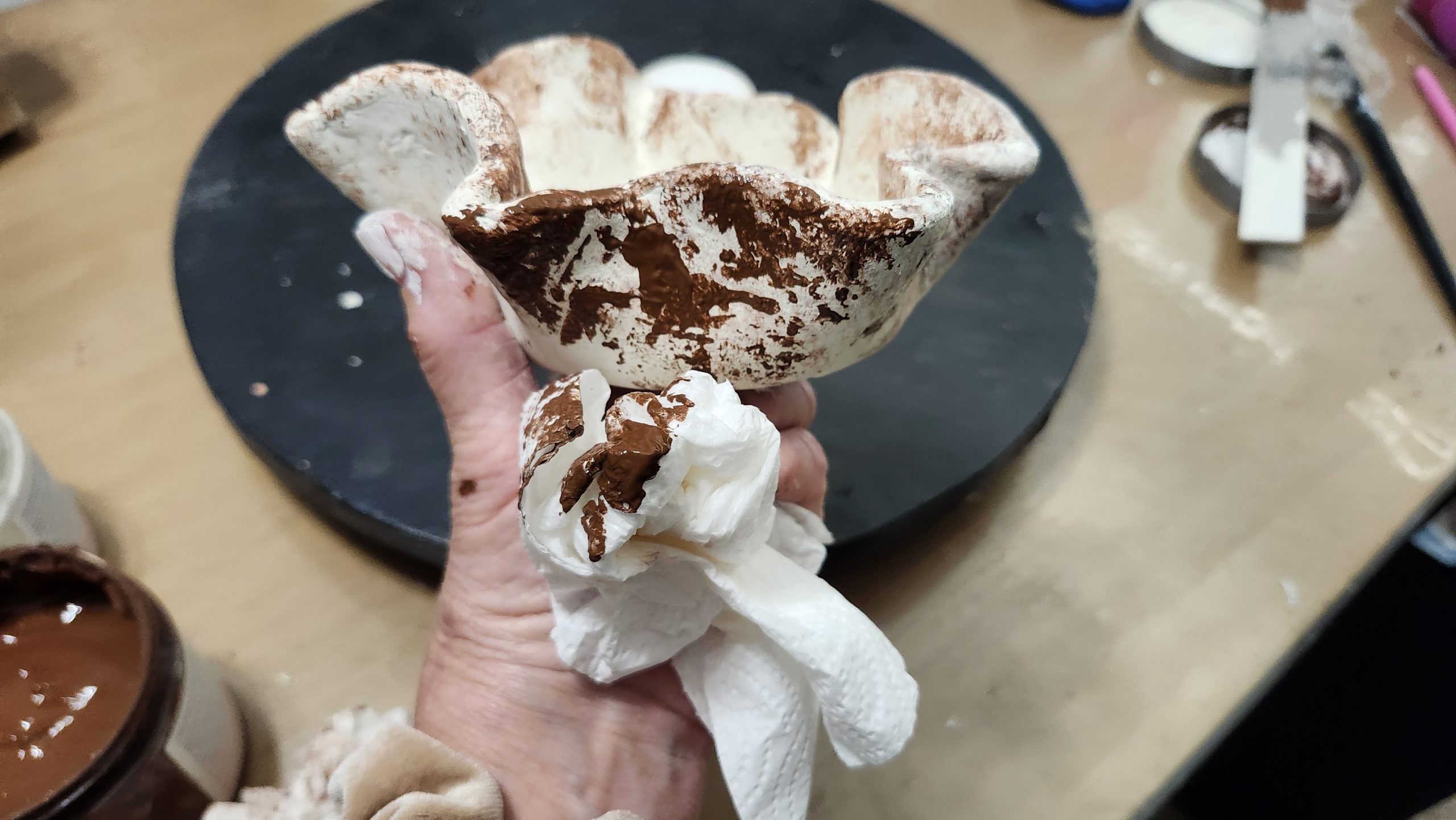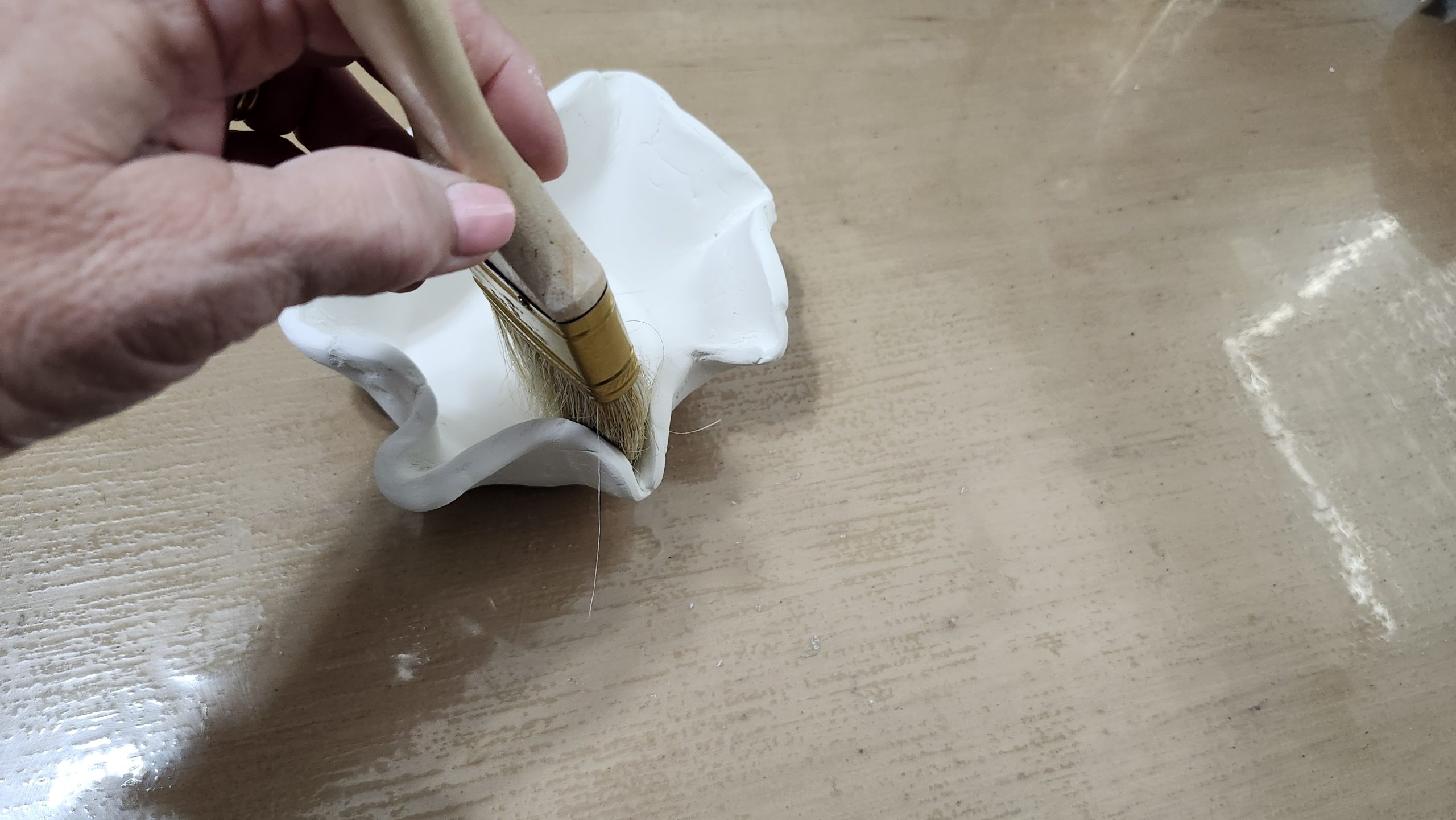 Again, I took more water on my finger and smoothed the edges and inner part of my bowl.