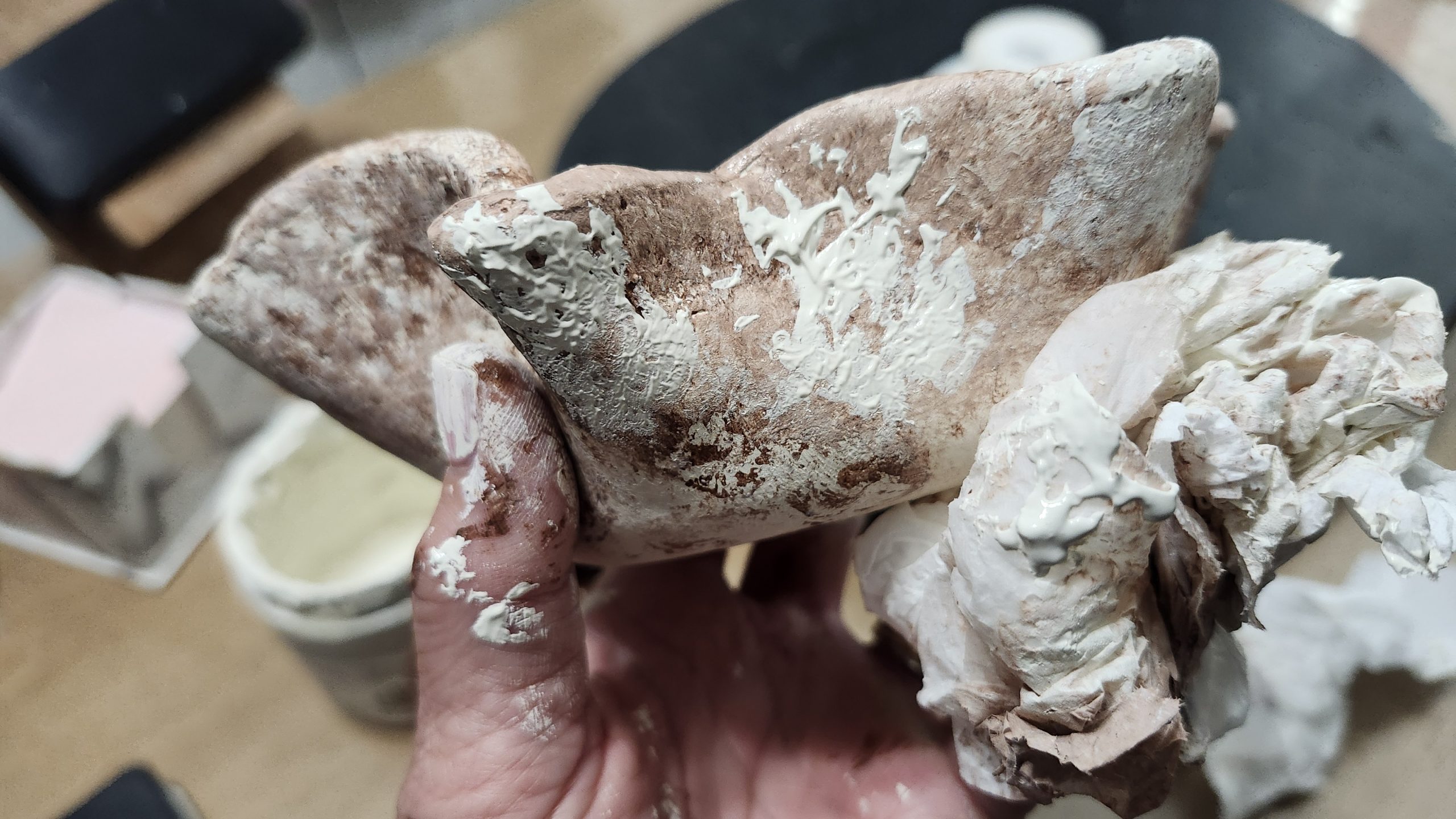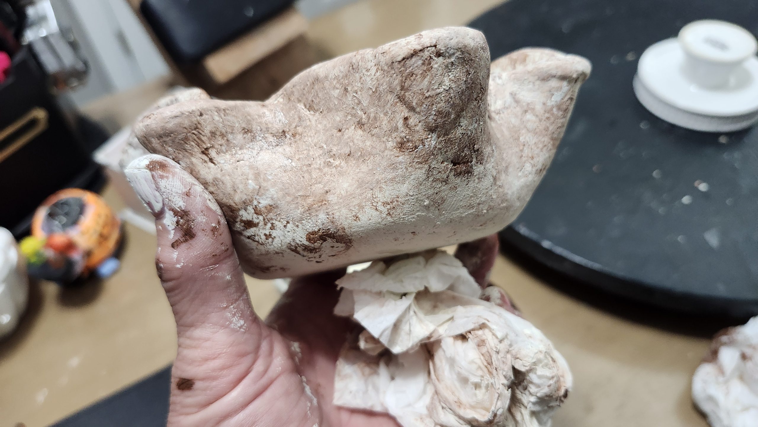 Using a wet paper towel, I dabbed brown and antique white paint until I got the look I wanted.