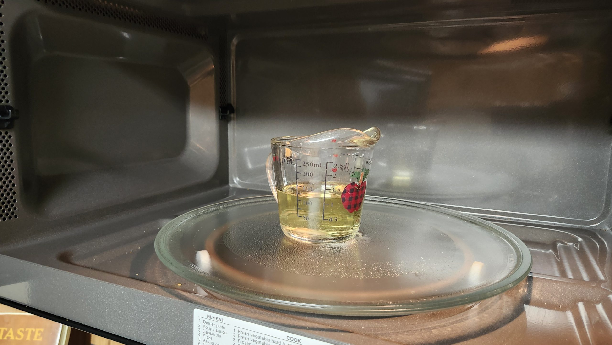 Microwave the wax for 2 minutes, depending on the type of candle wax and microwave power you might have to add or subtract the minutes.
