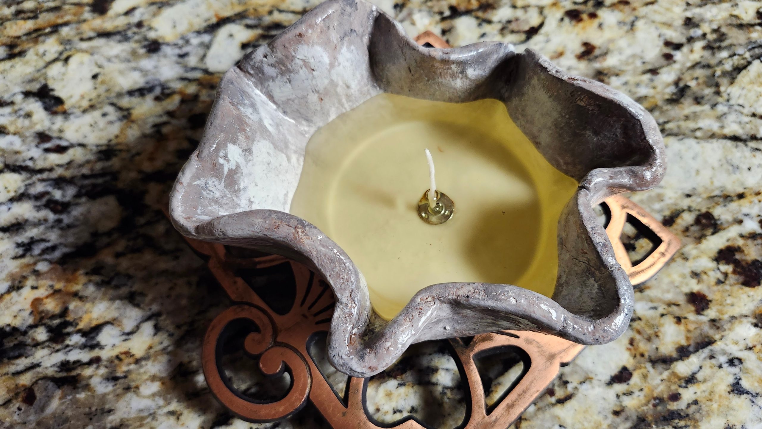 Learn how to make a wavy clay candle bowl with air-dry clay and a candle. Melting down a candle is easy to do; the wavy bowl and the candlelight will create the perfect decor piece for your home.