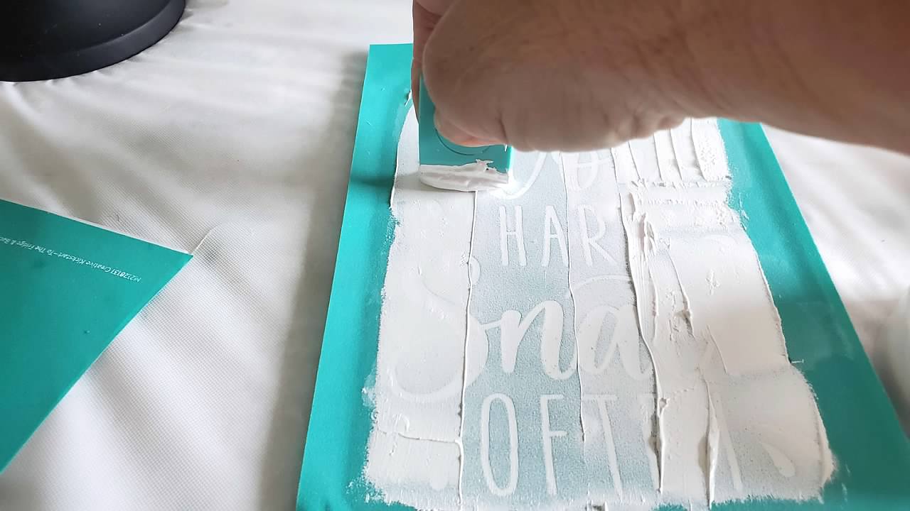Add a small amount of paste on your squeegee. Chalk Couture has two sizes of squeegees. A mini and a small. I am using a mini squeegee.