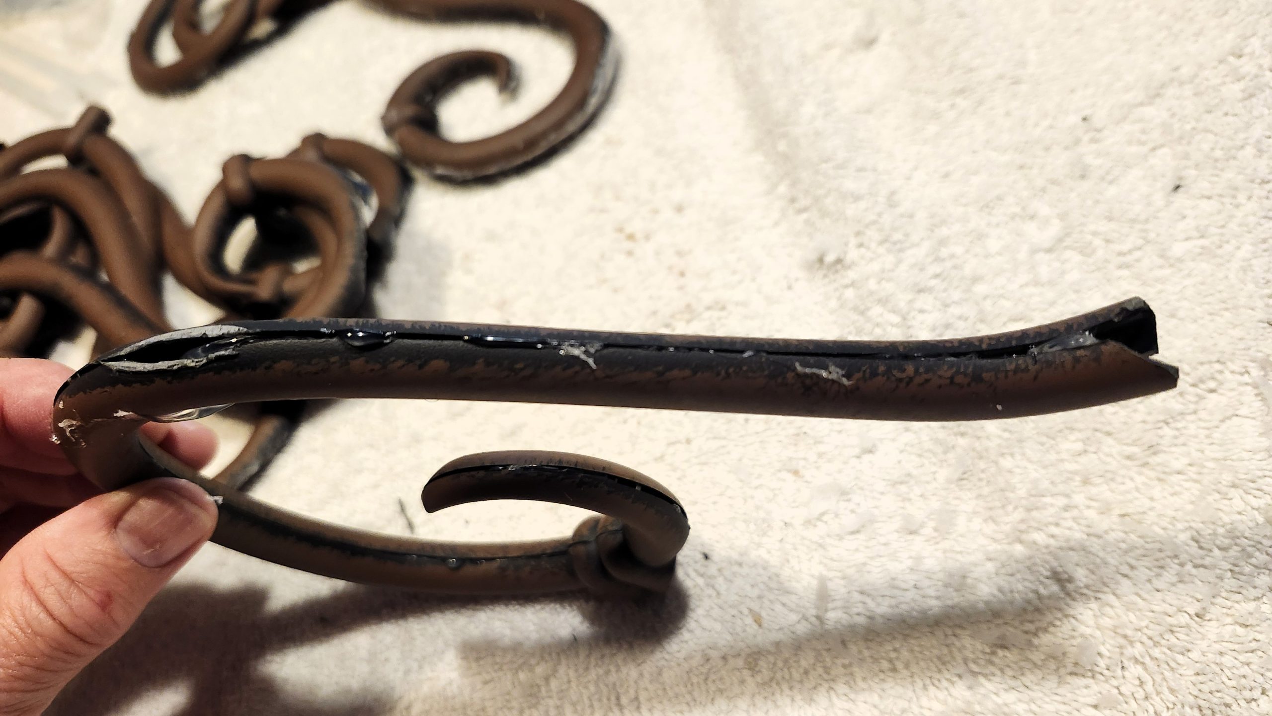 I wrapped twine around a few times to each middle and top scroll to keep it in place.  Plus it looks like the detailing that’s on the scrolls.