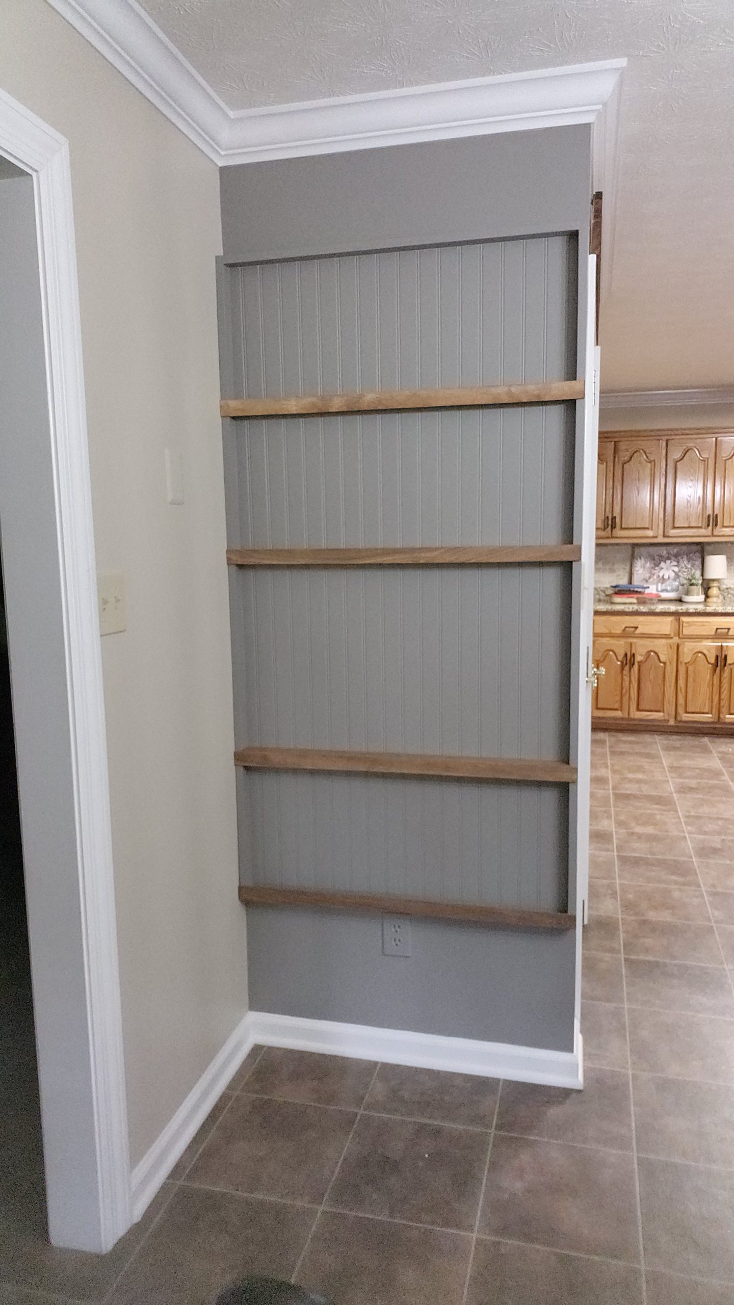 I want my shelf unit no higher than the doorway trim and with the outlet below, I will raise the bottom just above the outlet.  I will use the complete width of the wall.  My measurements will be 36 inches wide and 67 inches tall.