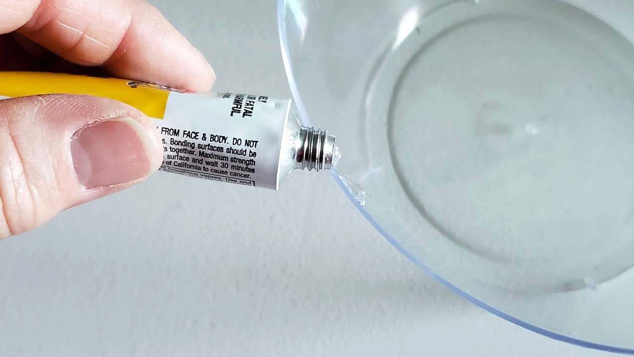 The supplies I am using for the smaller version will be items I purchased at Dollar Tree, 3 clear plastic serving bowls and a tube of Fix-All glue.