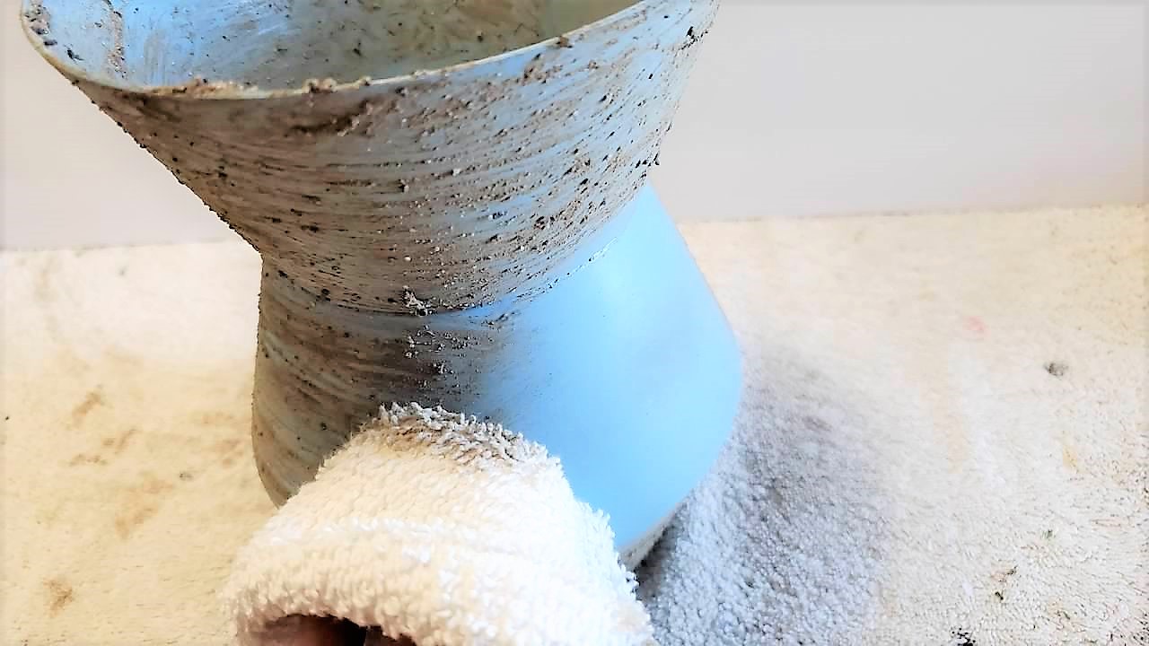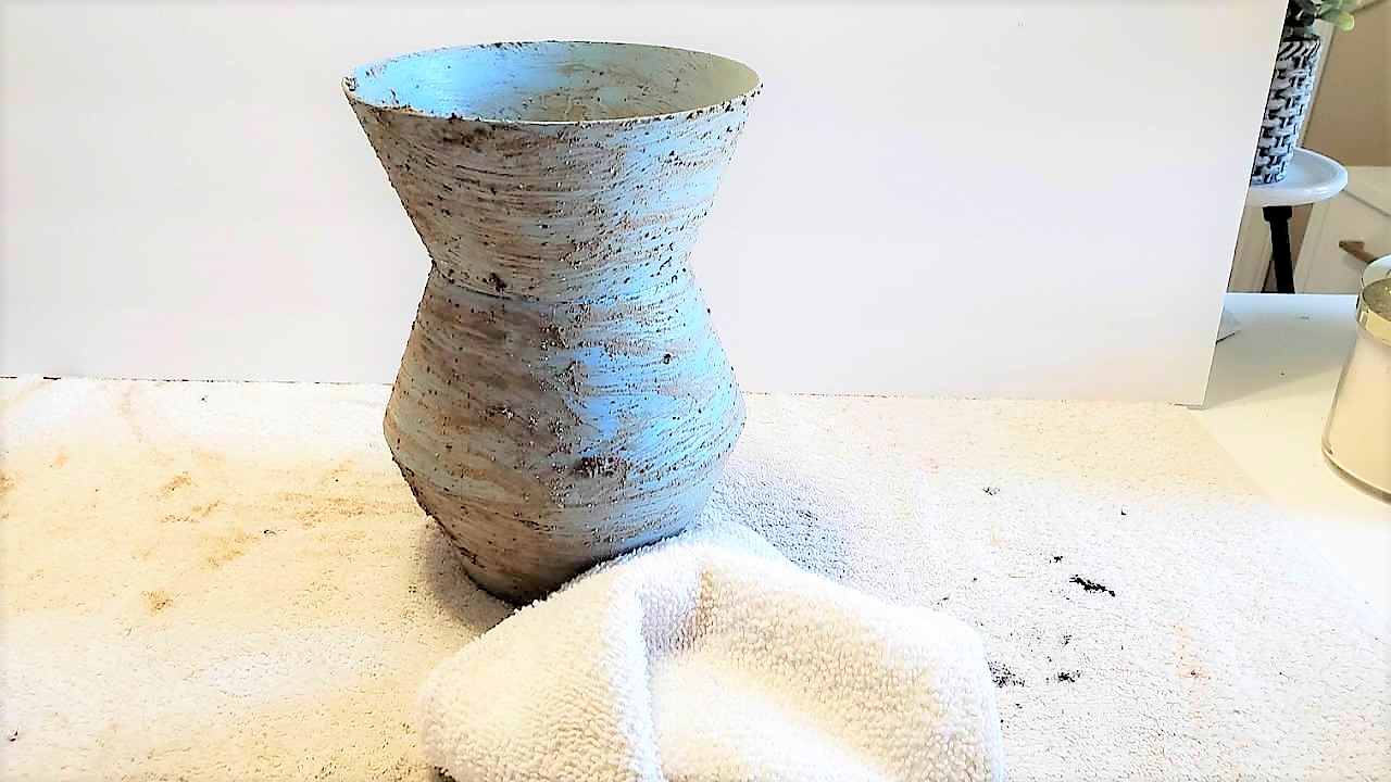 I wiped all the excess dried mud off the vase with a clean dry towel, I continued to wipe the vase until no dirt came off the vase.