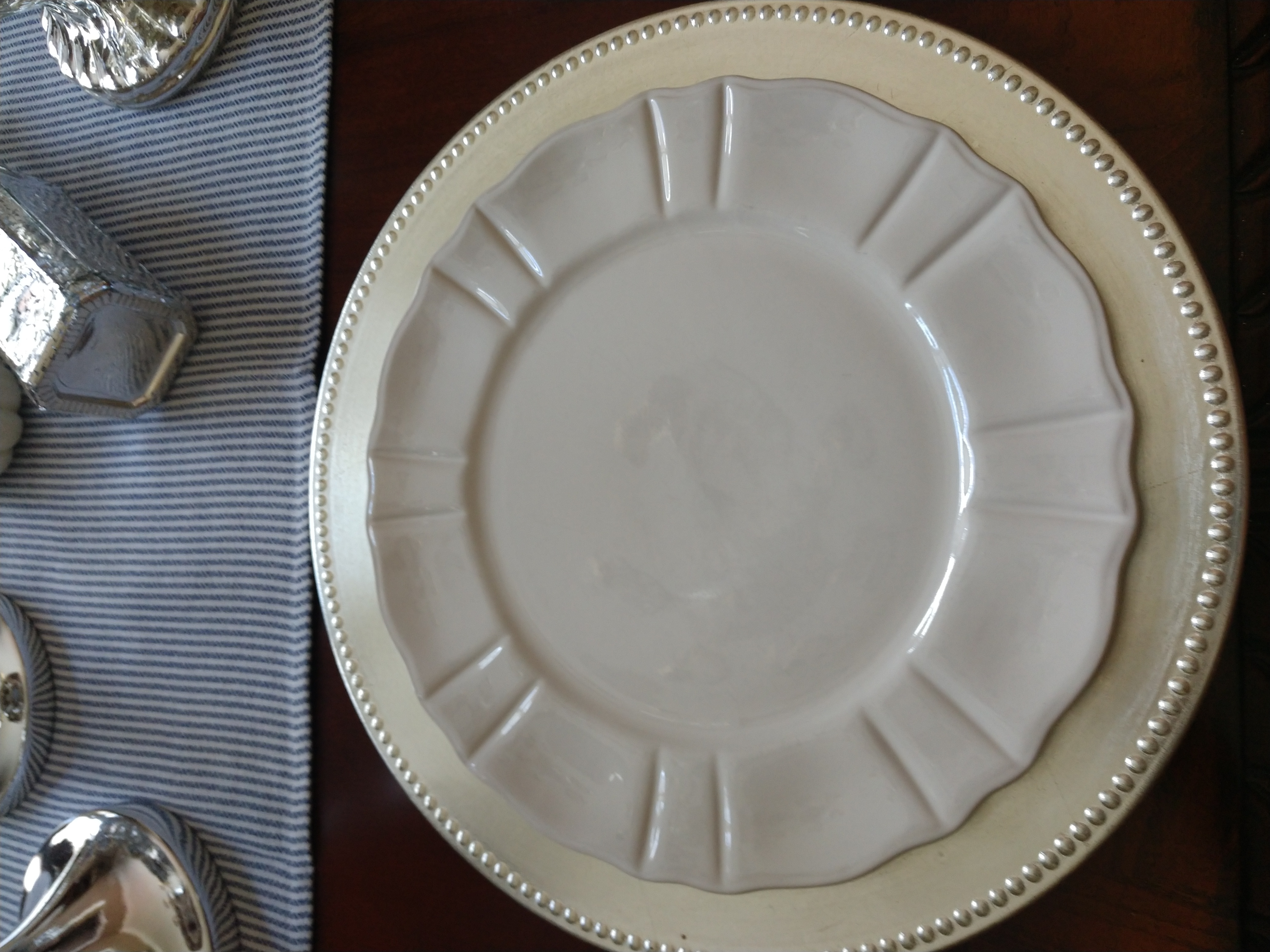 For the base of each place setting I am using my Dollar Tree silver plate chargers.