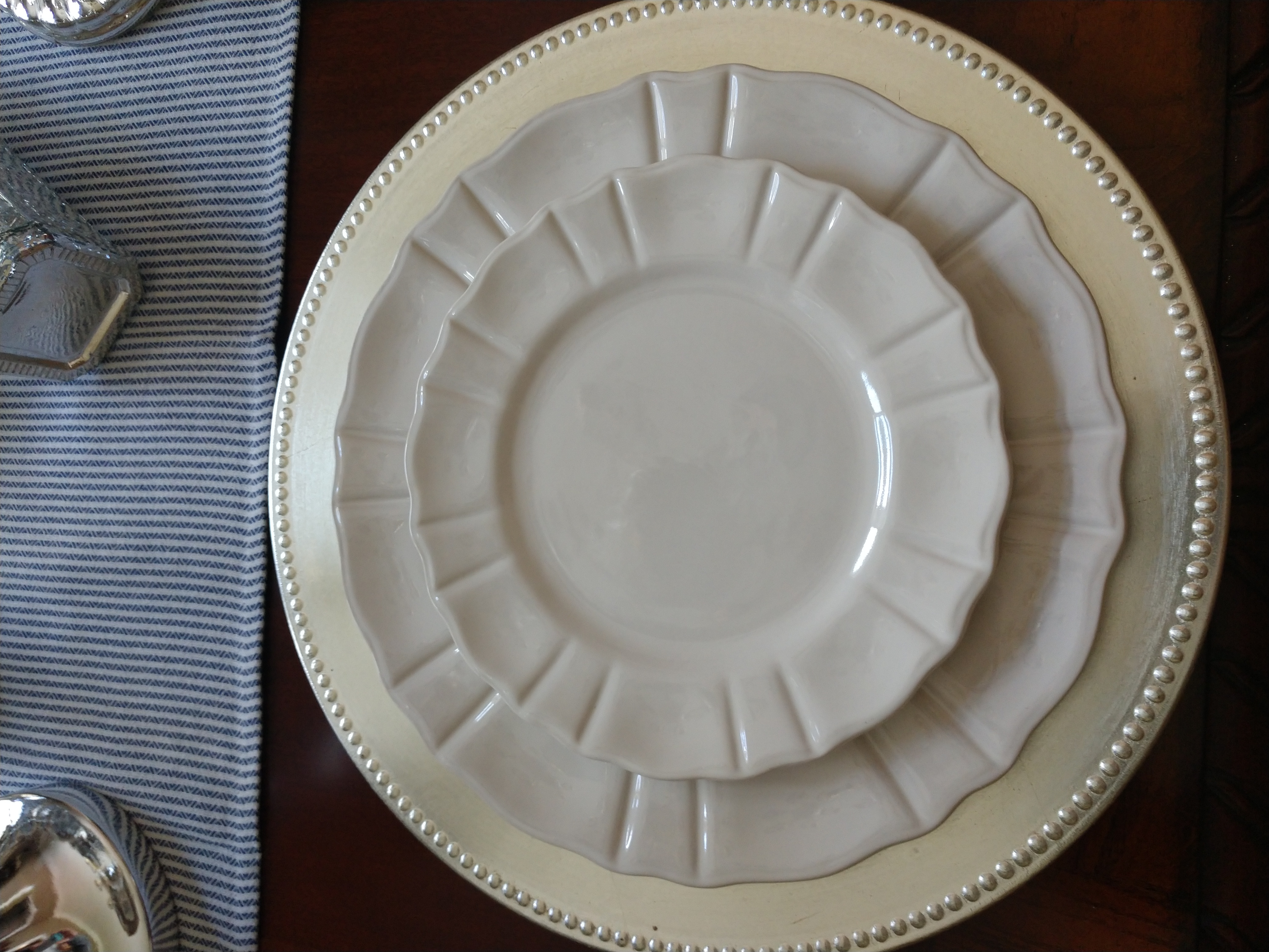 I am using my every day white dishes. This will make it easy to clean up, I can easily place them into the dishwasher after dinner.