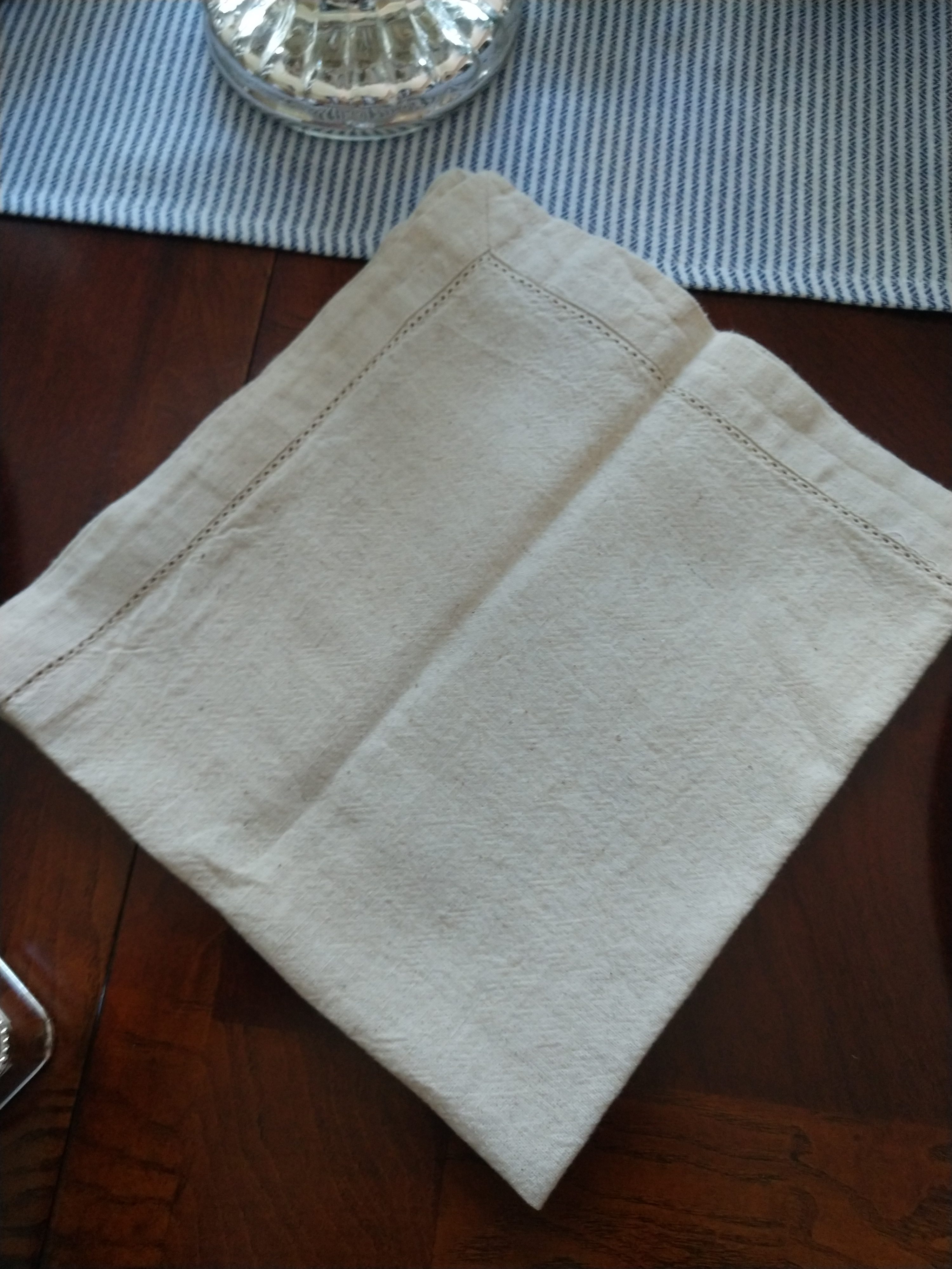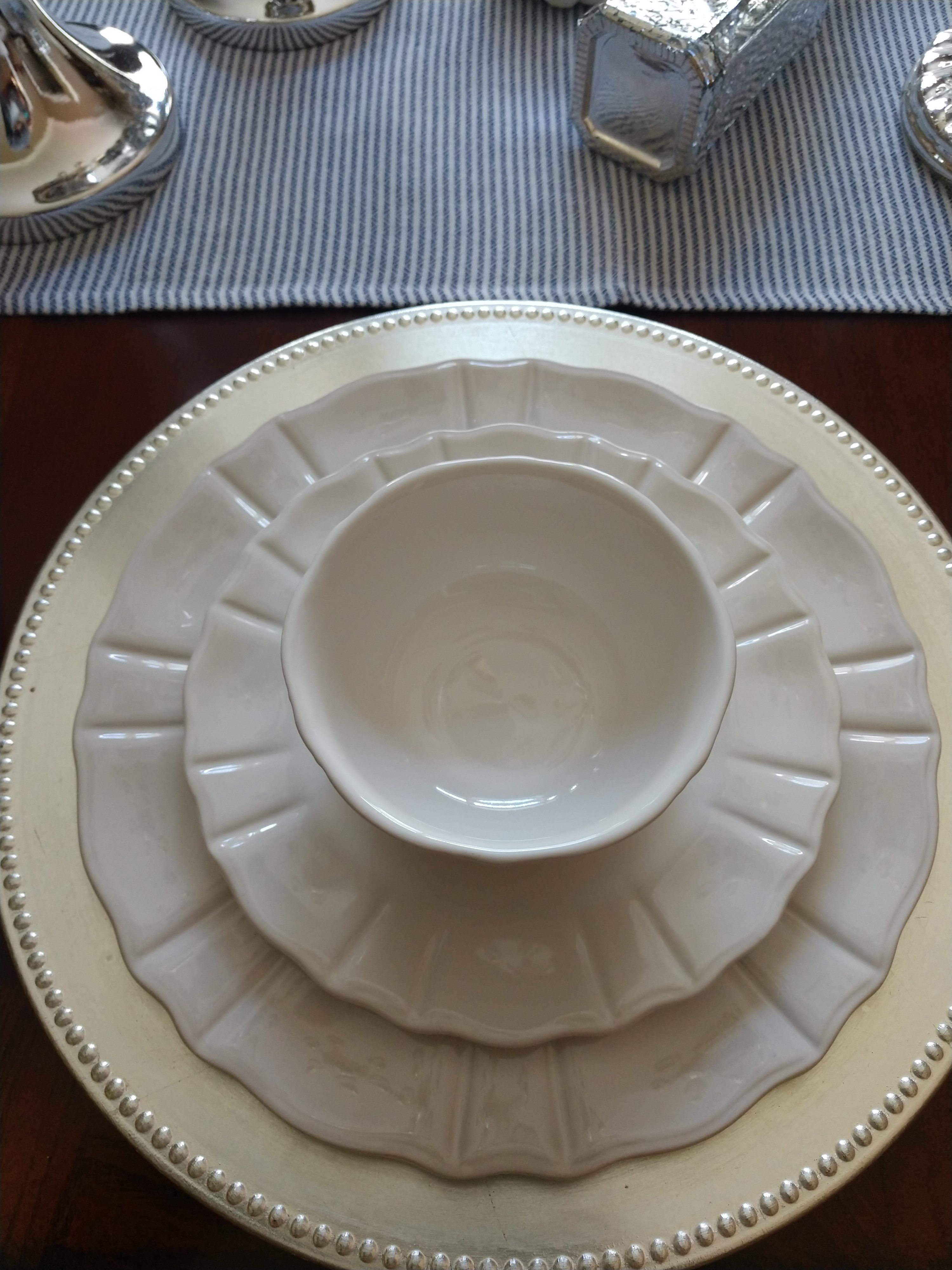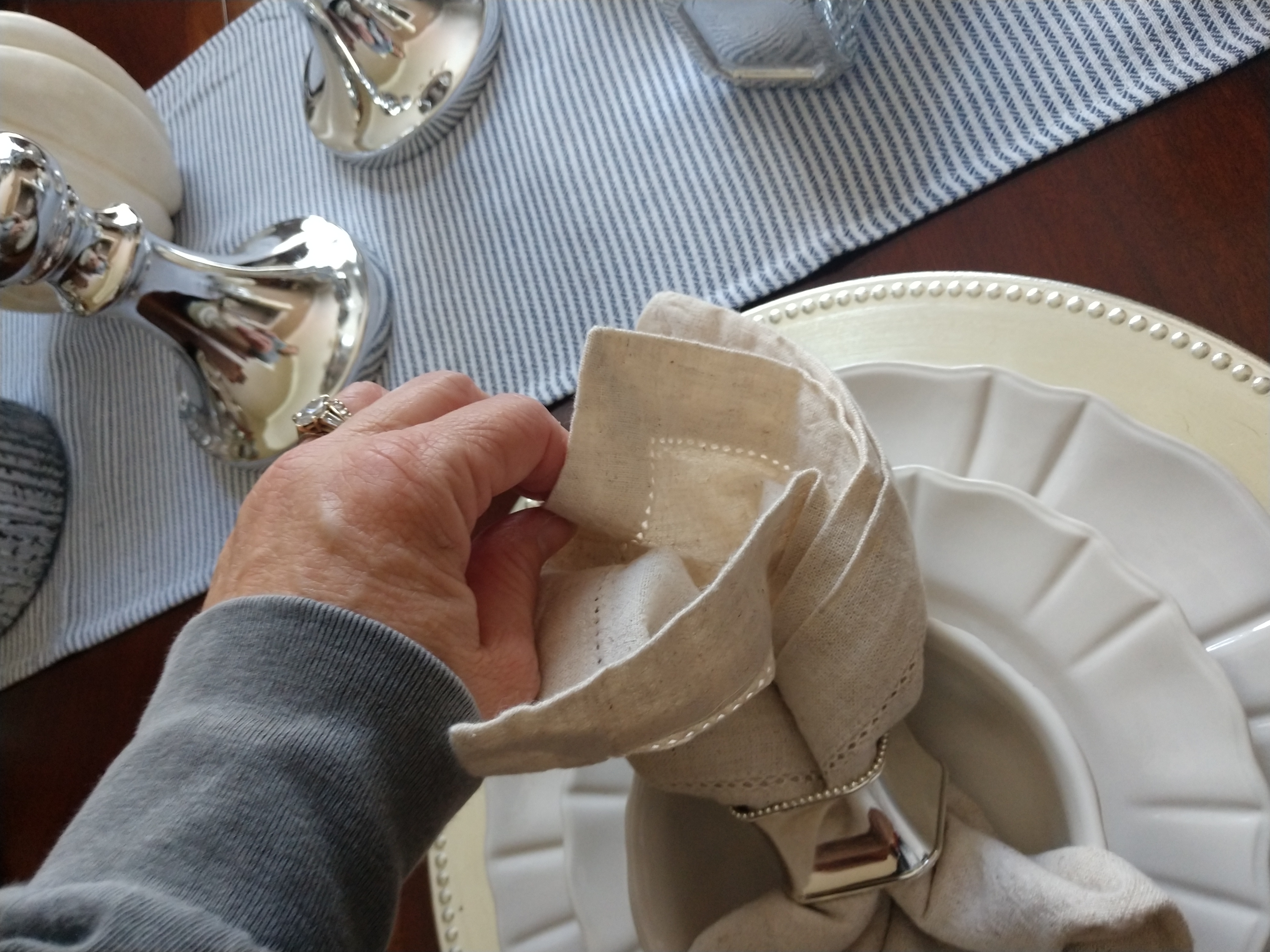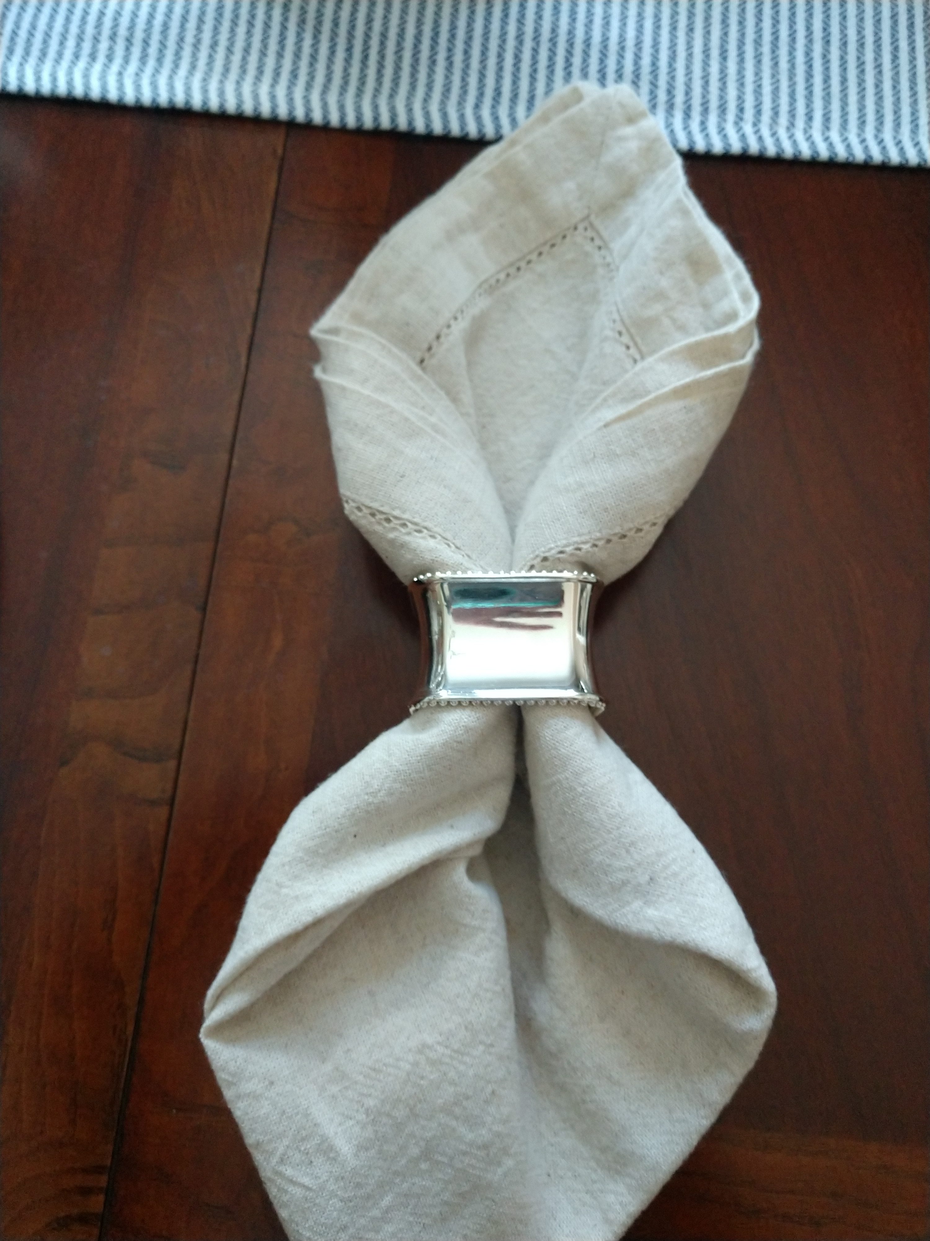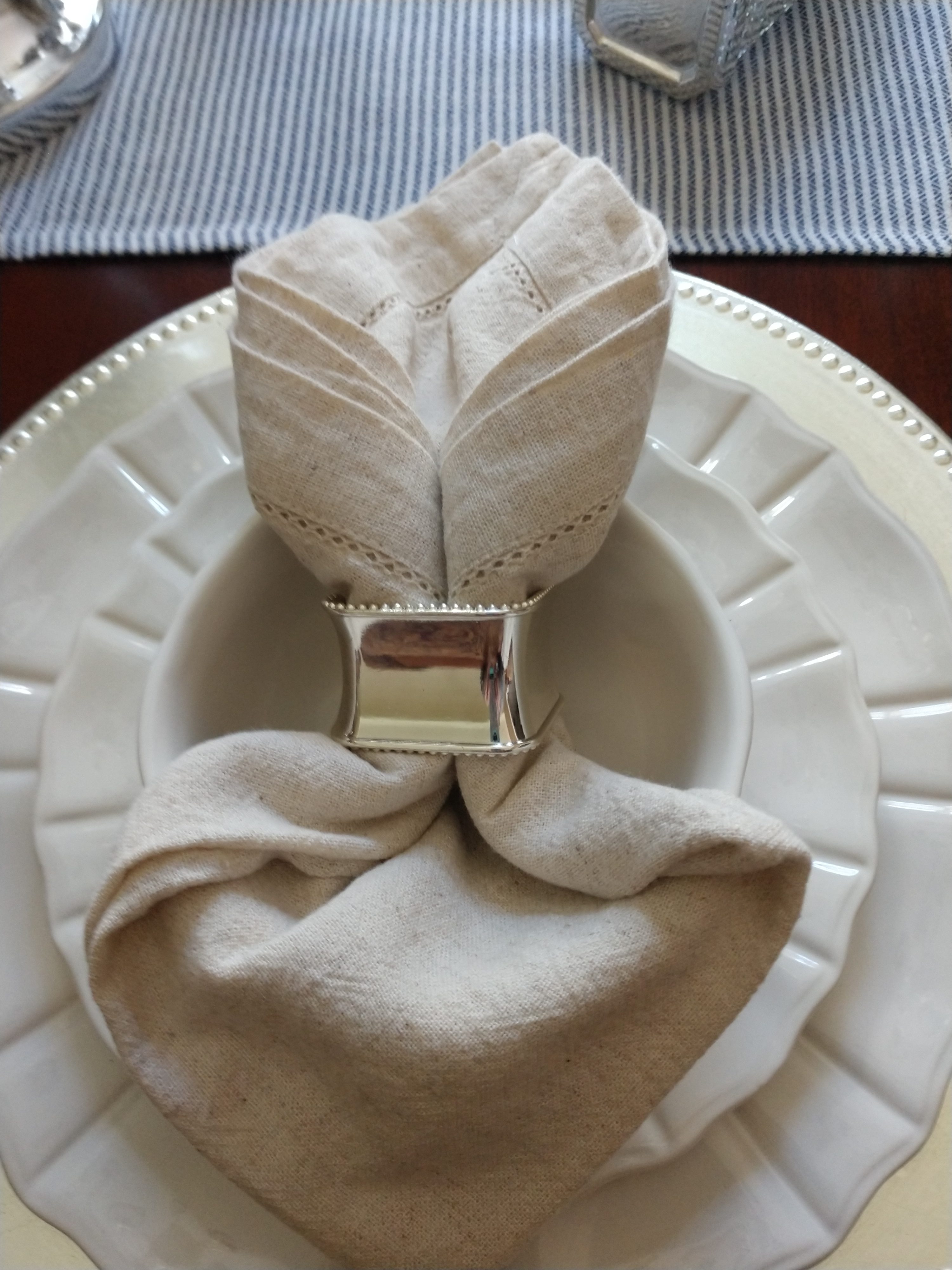 Keeping with the color scheme I am using my linen napkins and silver napkin rings.