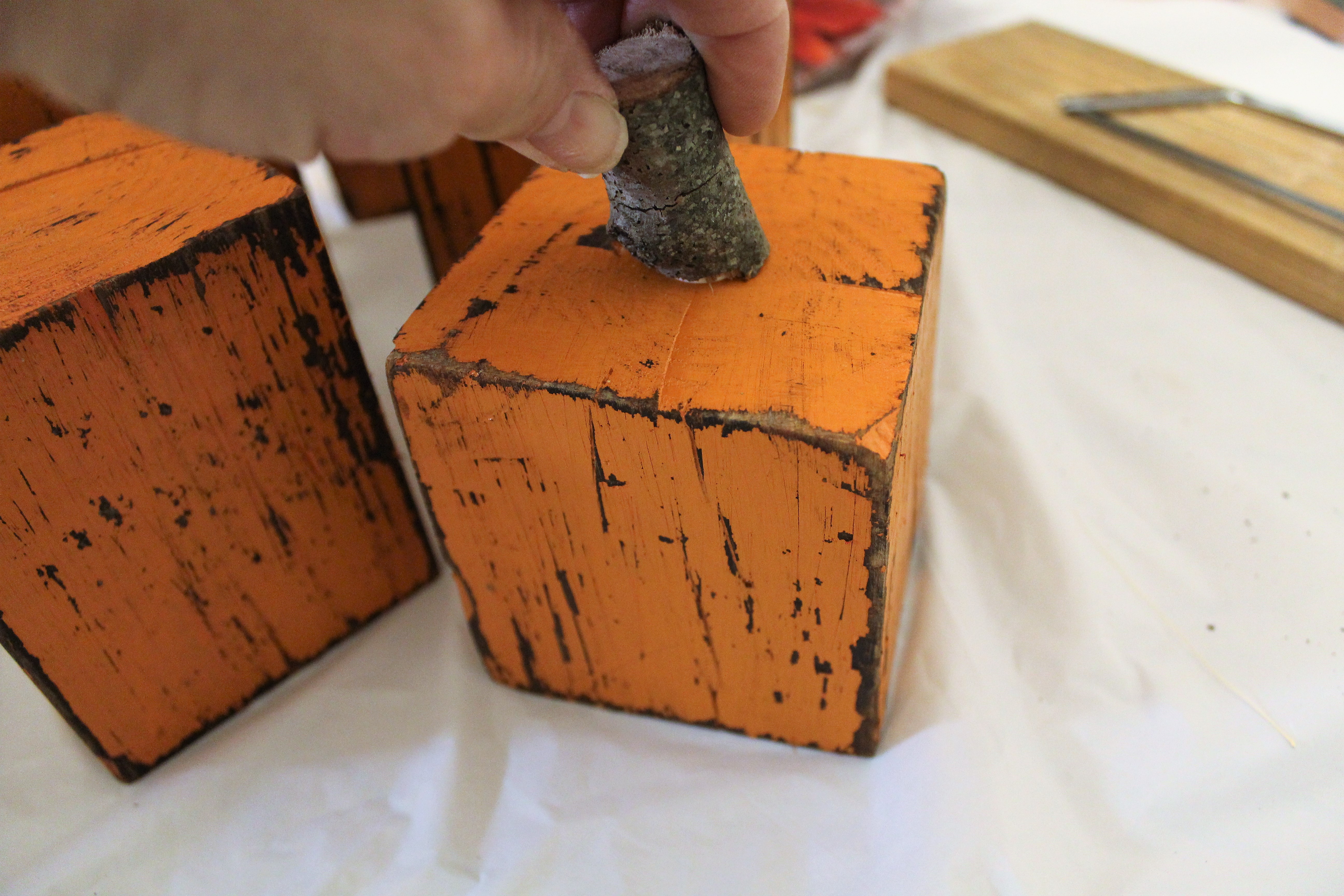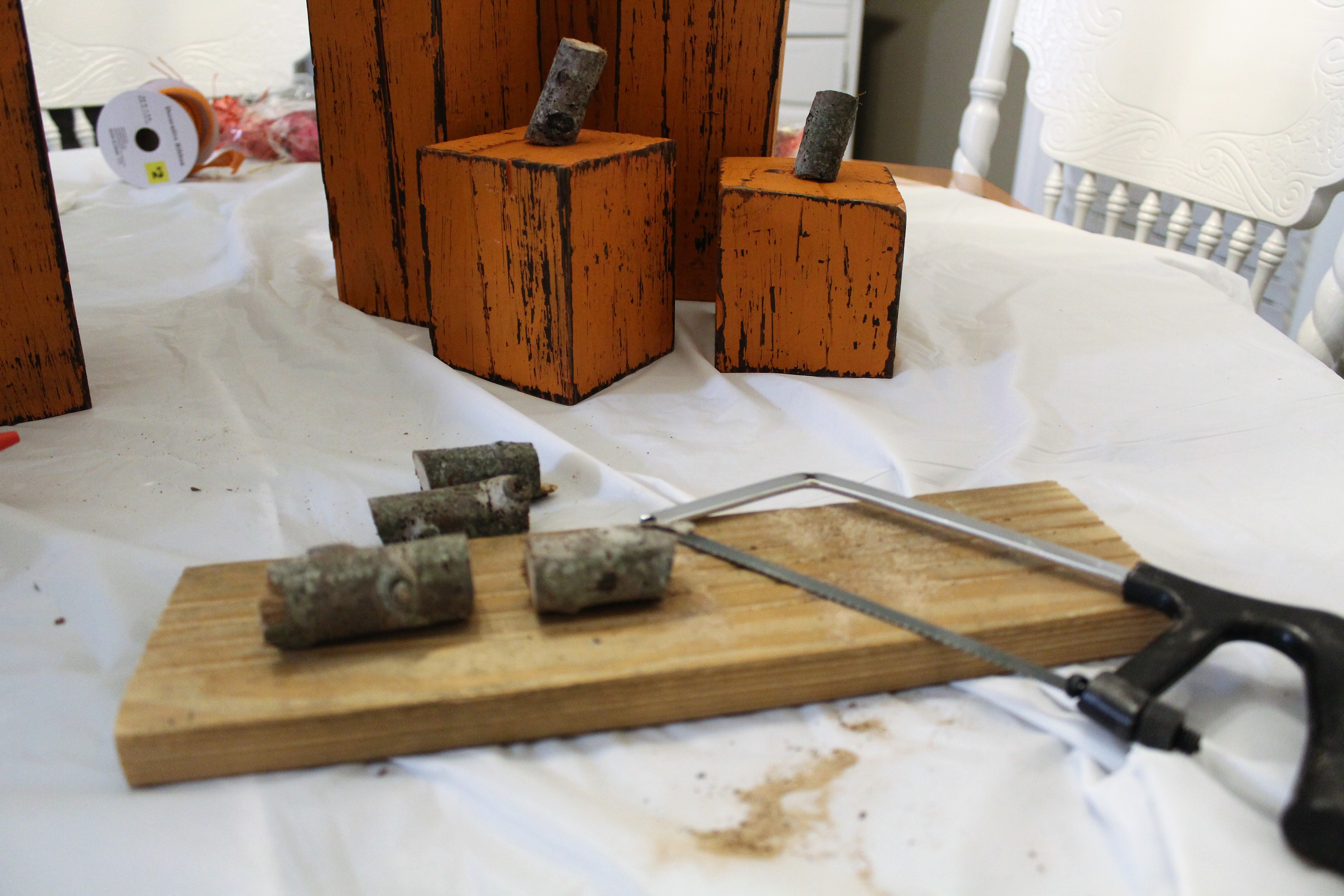 Cut your branch into little pieces for the pumpkin stems.  I didn’t measured I just cut the size I wanted to use.