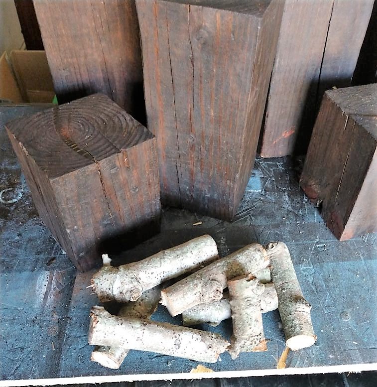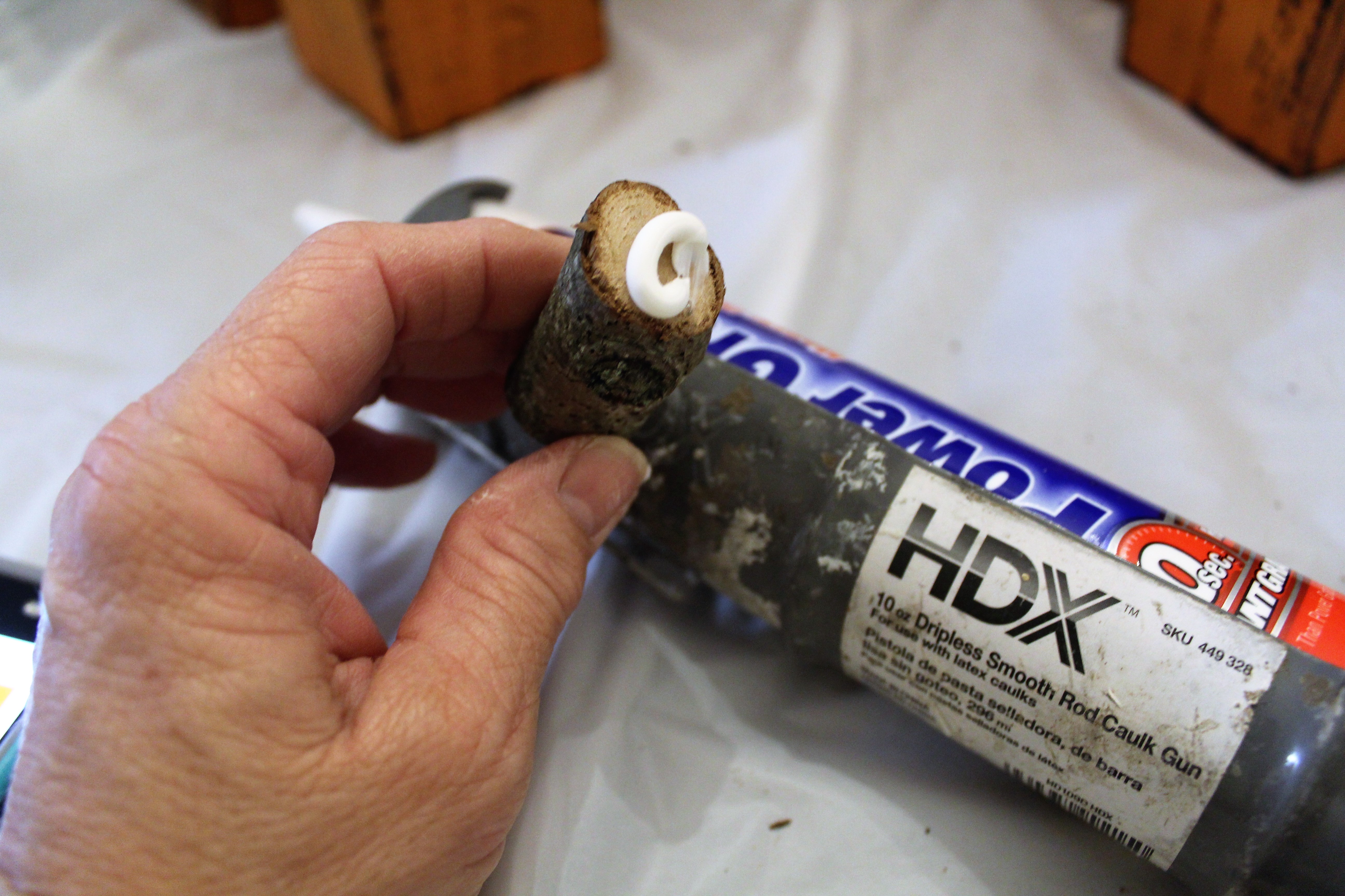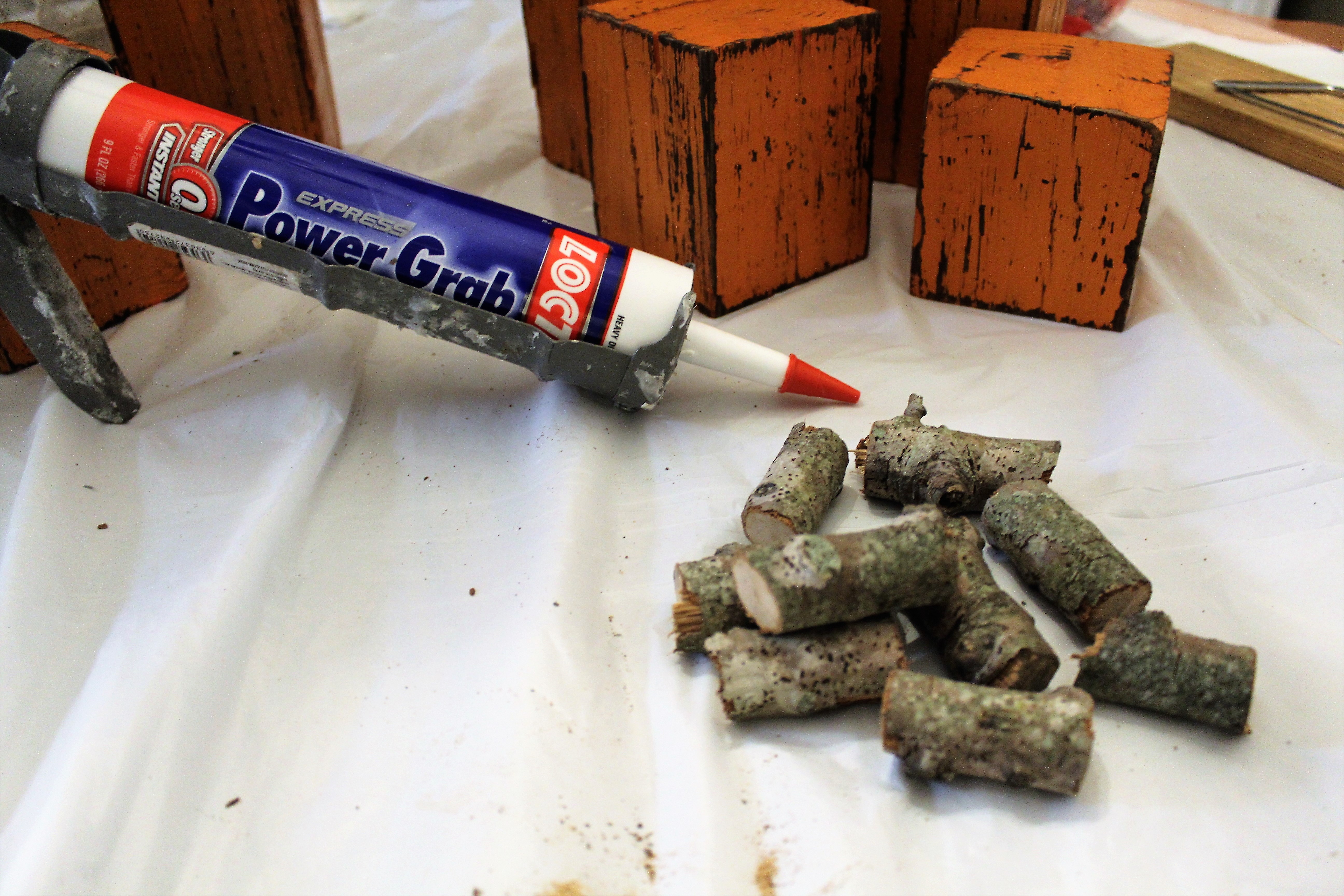 I am using power grab to glue the cut pieces of branch on the top of each board.