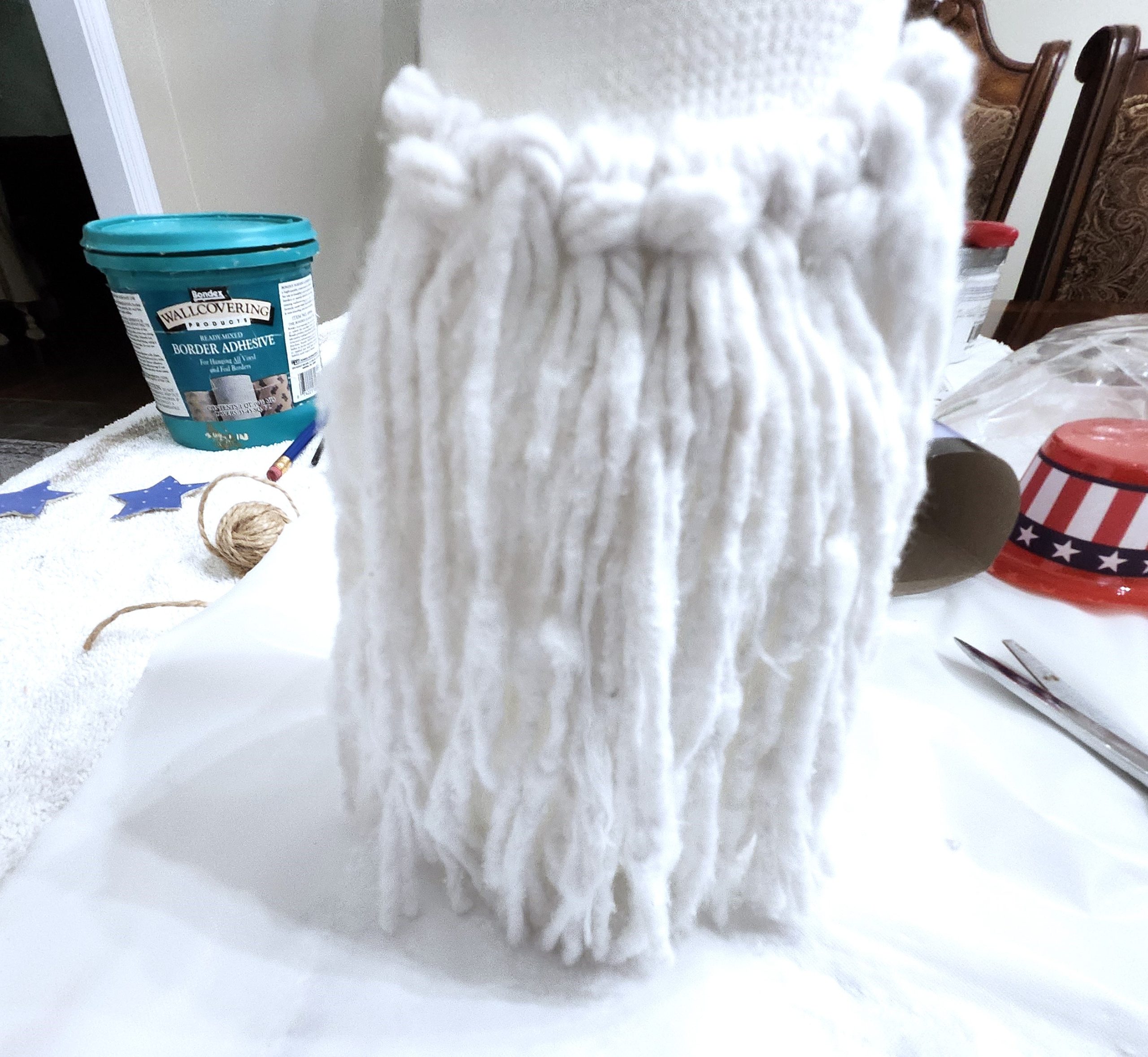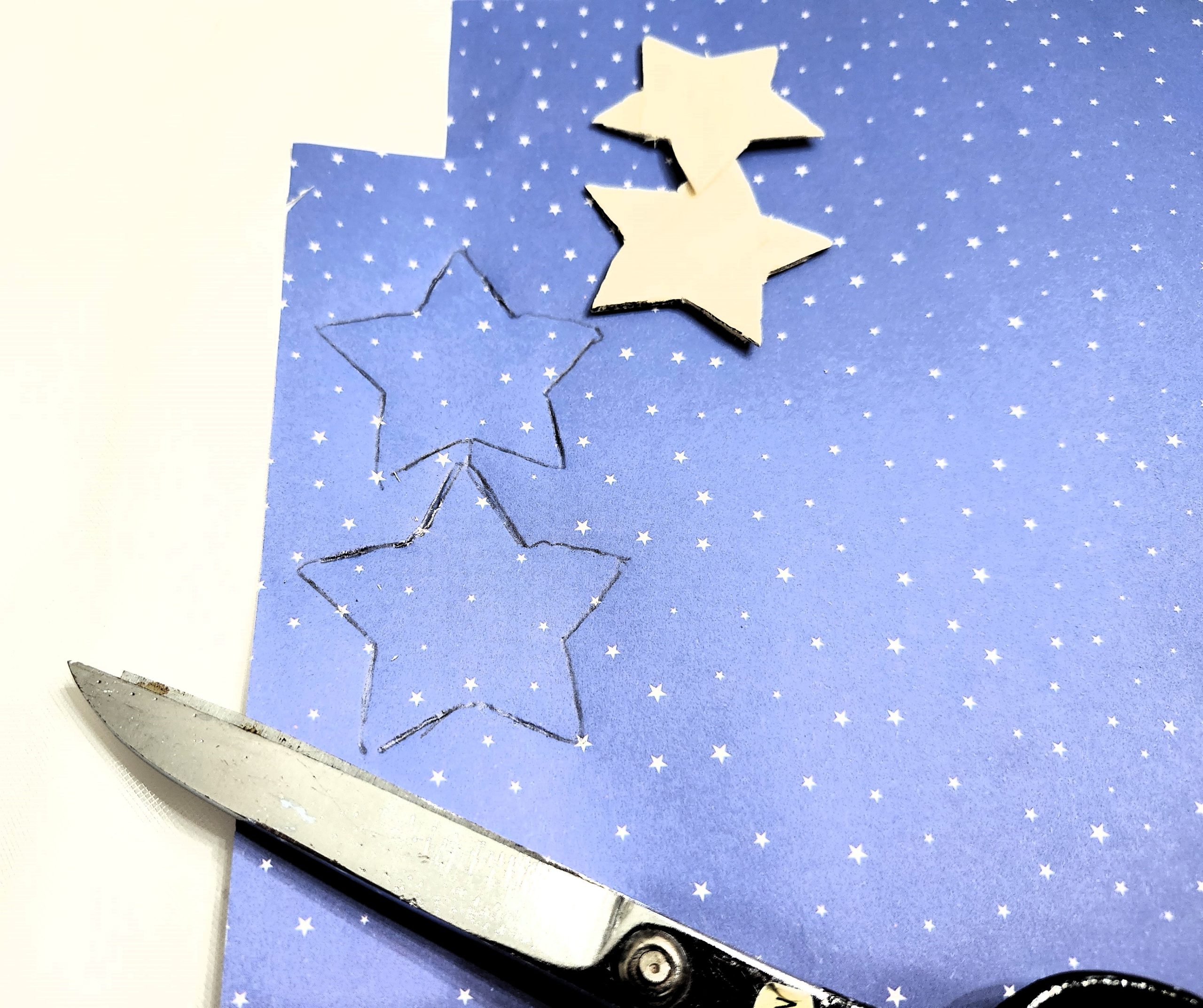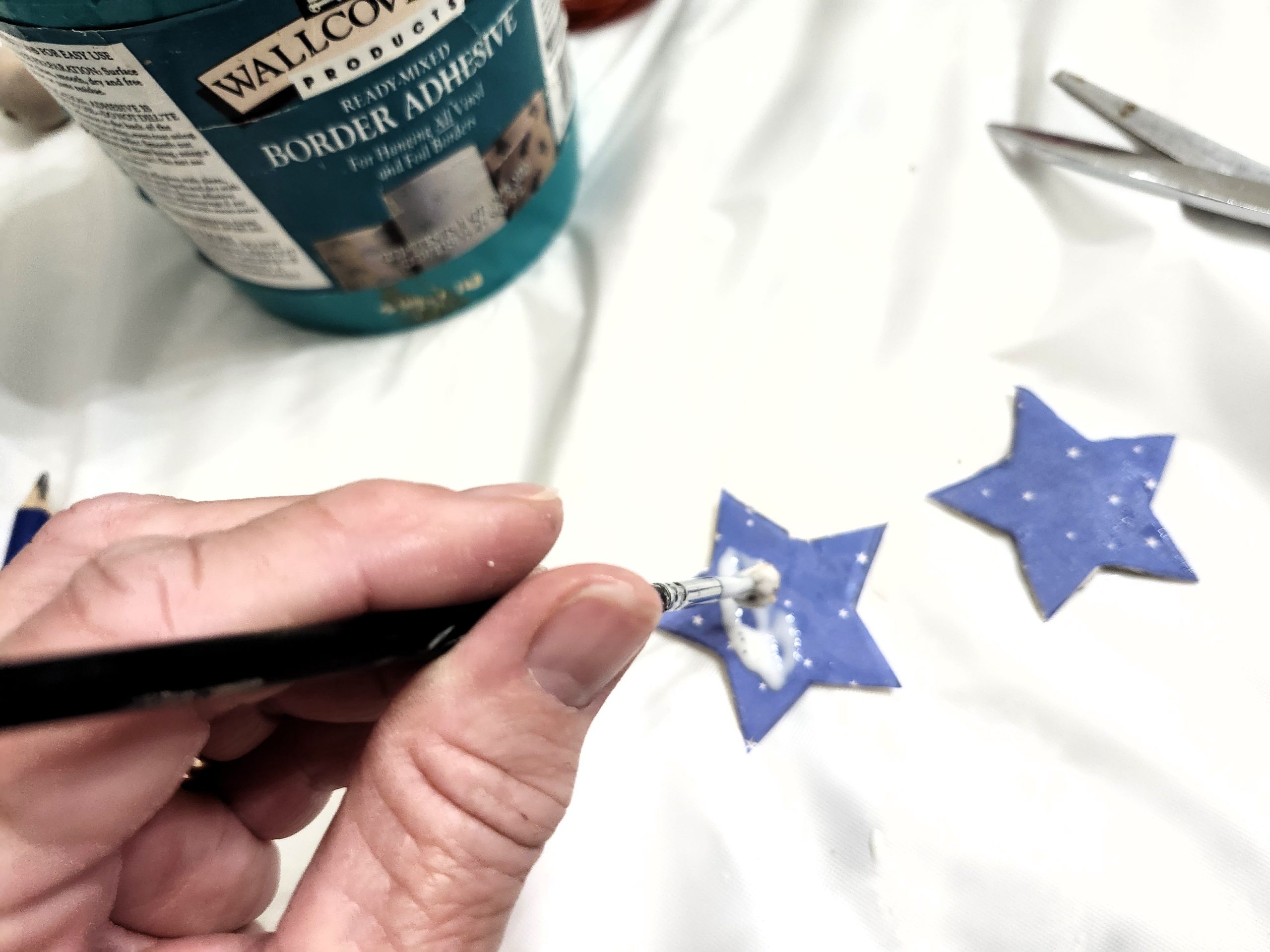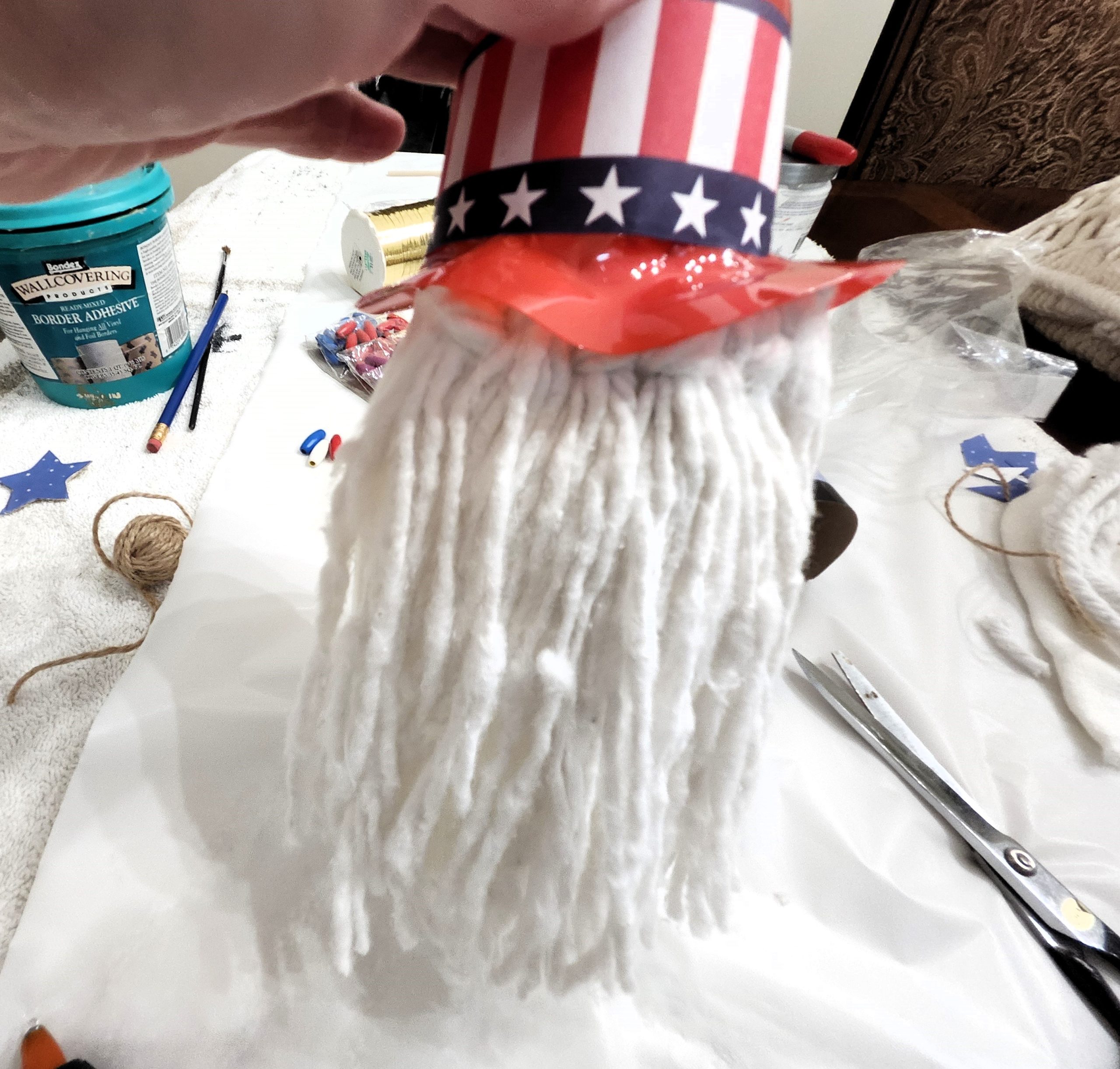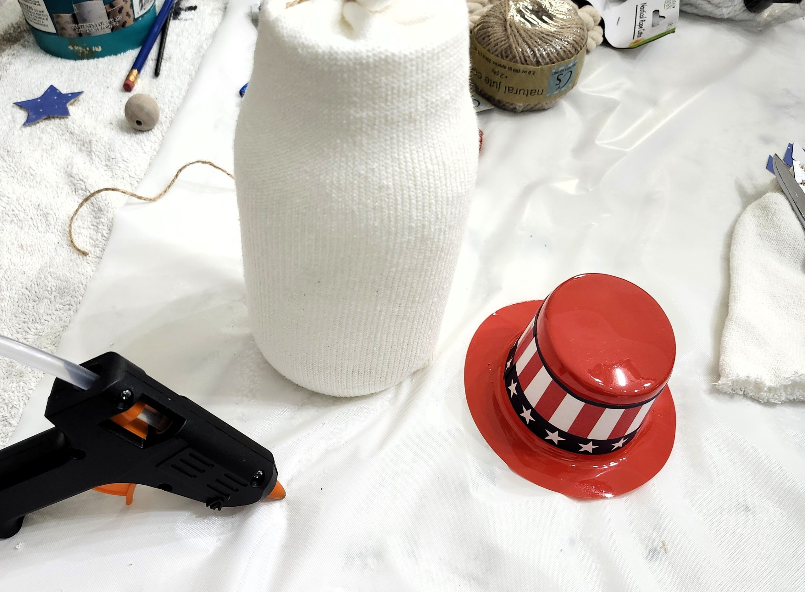 Using 2 small wooden star cutouts for the eyes. Putting your spin on this part with paint or a pretty patriotic paper.
