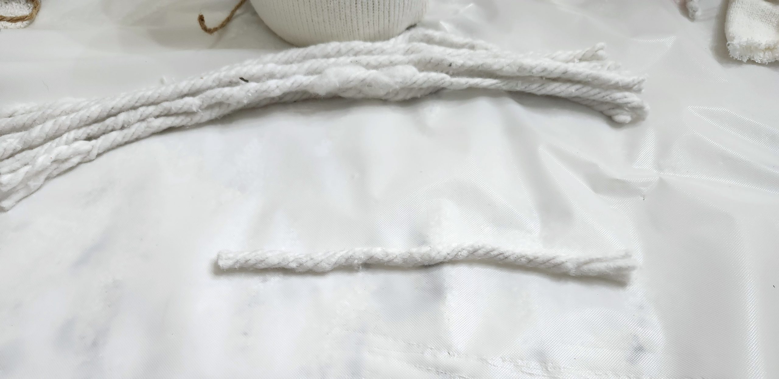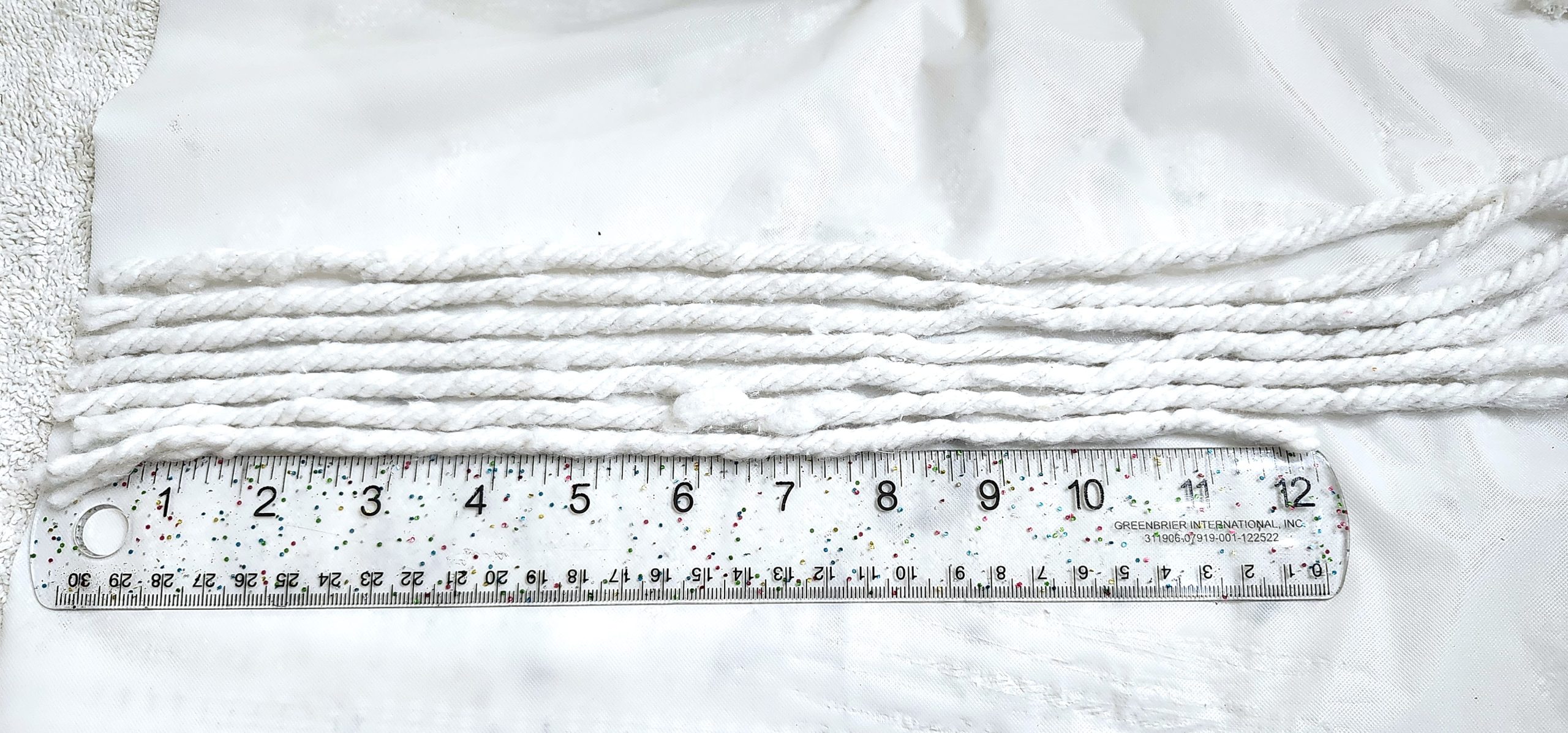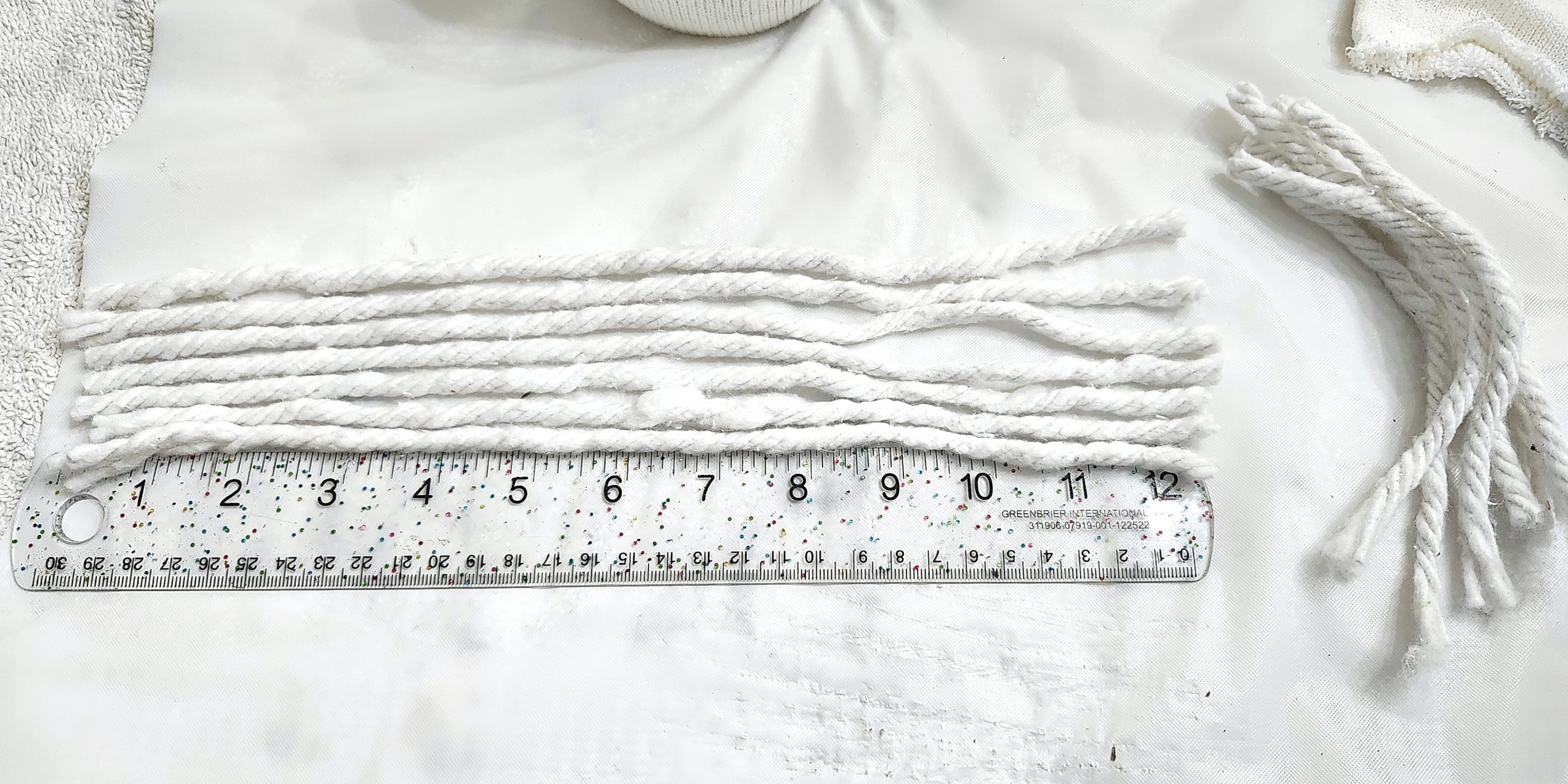 Pull 7 strips of the mop head out of the holder. Cut them 12 inches each.
