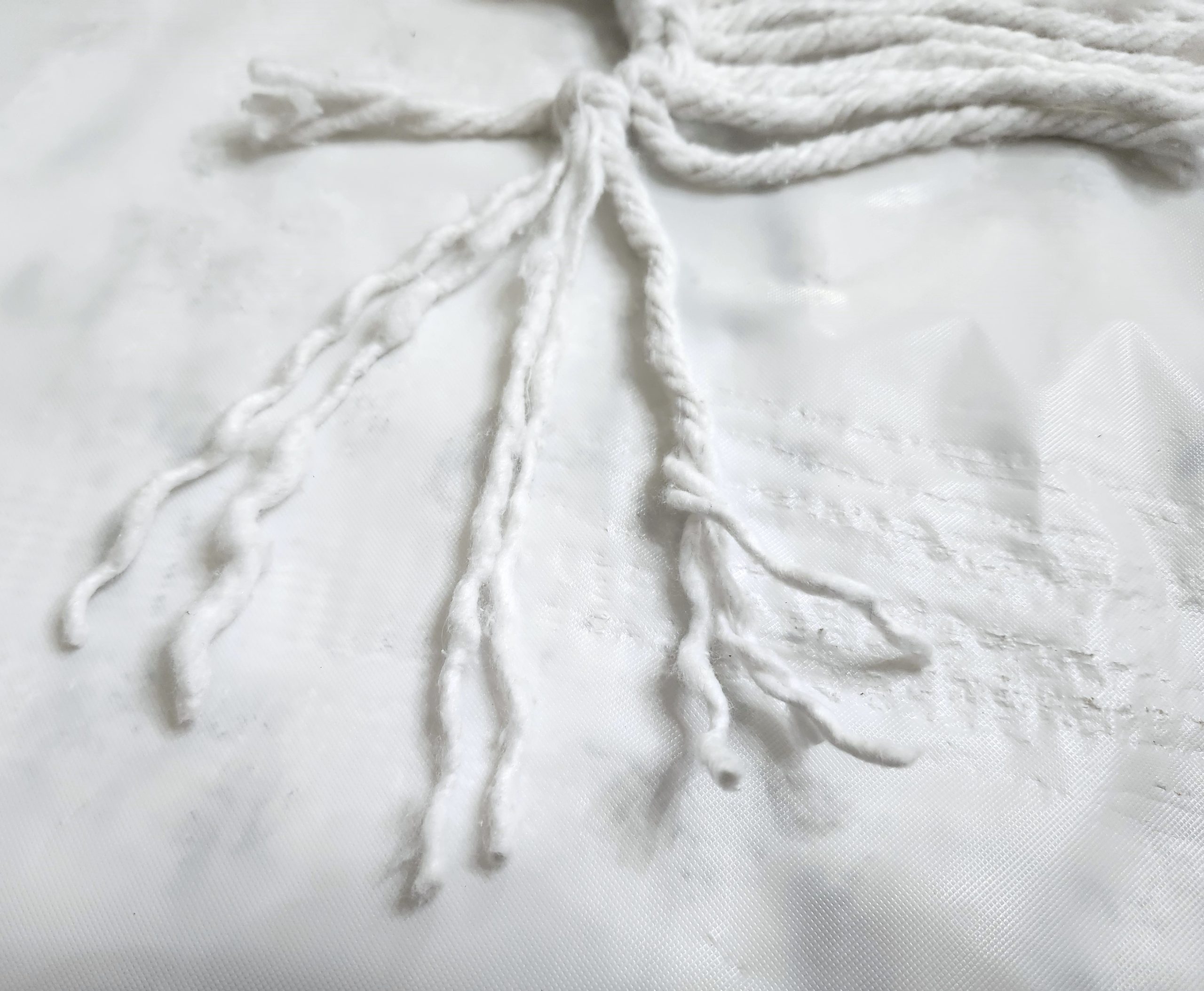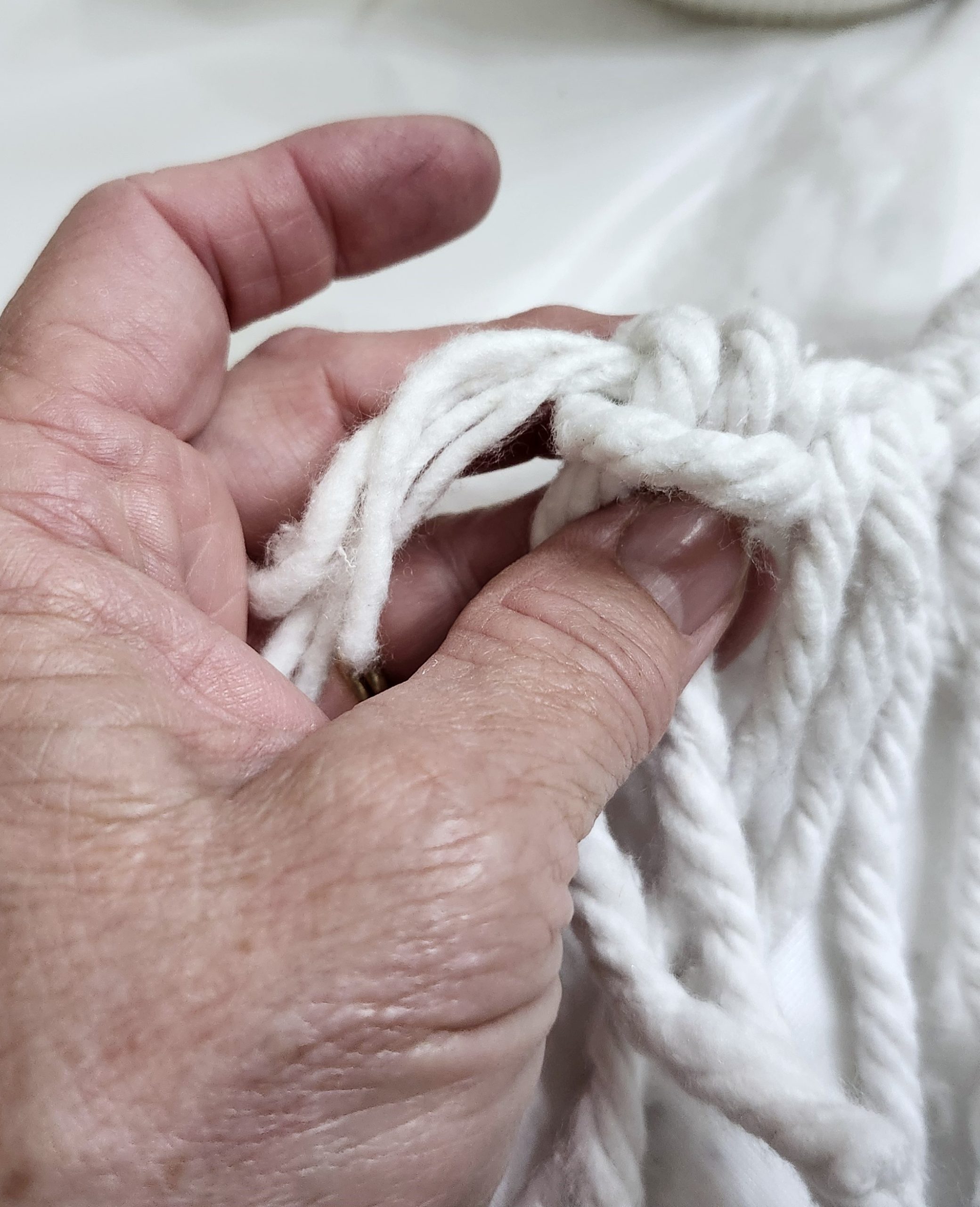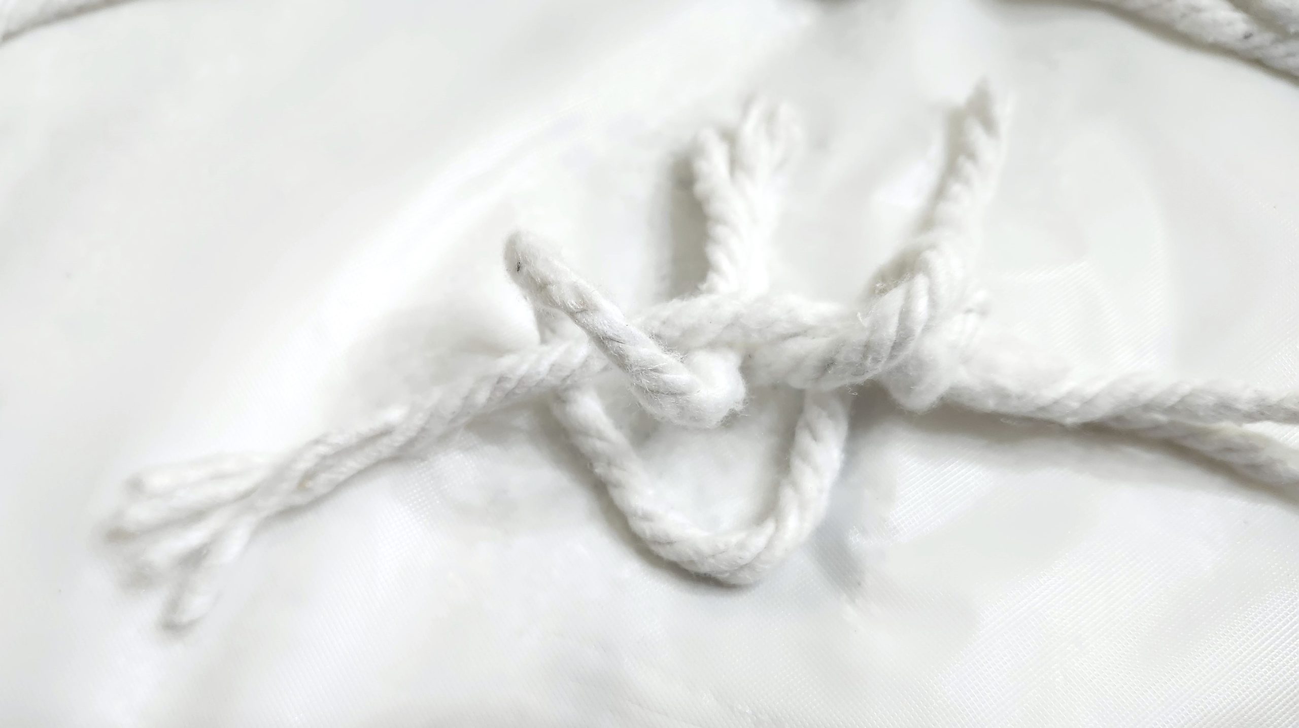 - Thread the end pieces through the loop and pull tight. Creating a knot.