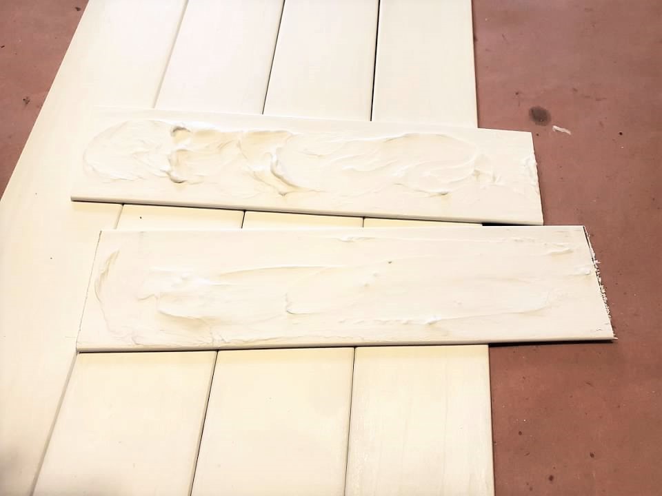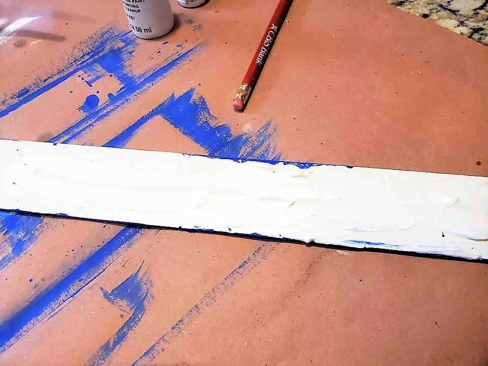 Put that aside and let dry.  Grab the two 15 inch slats painting them with blue.  I am using Cobalt Blue craft paint.