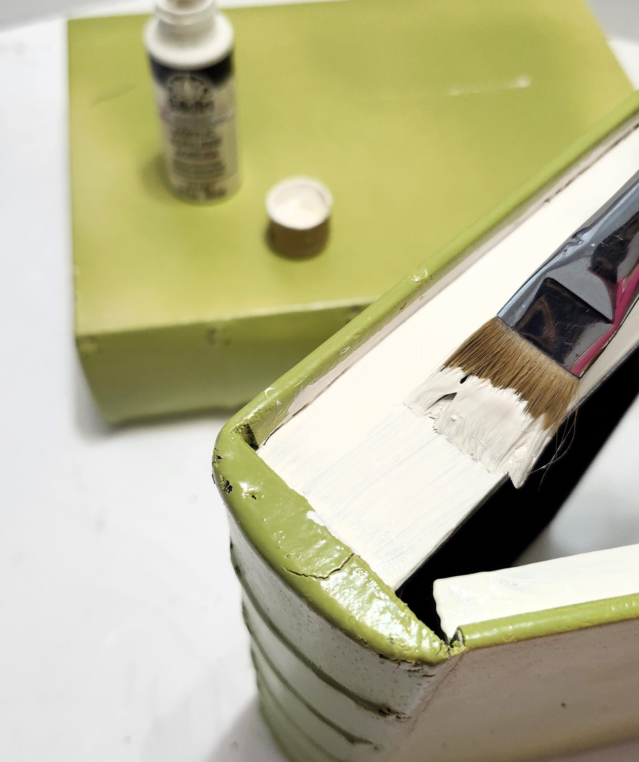 First, I painted the inner part with off-white craft paint to create the look of pages.